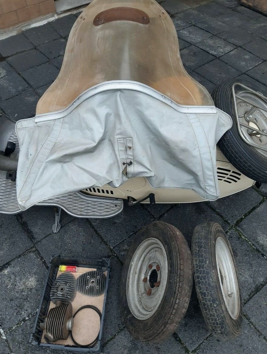 - Dazu gibt es noch zwei gebrauchte Felgen, eine gebrauchte Windschutzscheibe ( blind ), zwei Zylinderköpfe, ein geschliffener Zylinder mit neuem Kolben und zwei Riemen für den Lüfter.