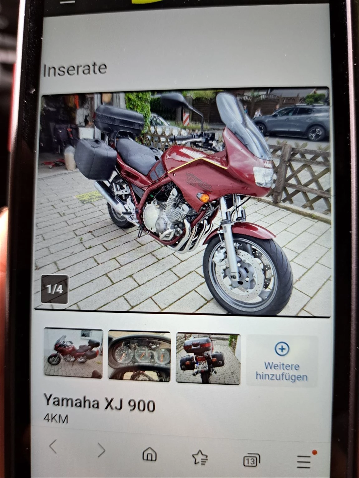 Umgestiegen auf 600 ccm Mängel keine Unfallfrei.Abgemeldet ,Erstbesitzer, Reifen Ok! Neue Bremsleitungen Vorne und hinten Stahlflex ,Simmerringe und Gabelöl neu.Dazu,Ein original Werkstattbuch zweite Tourenscheibe Ersatz,viervergasereinheit,KofferTopcas Tankrucksack.