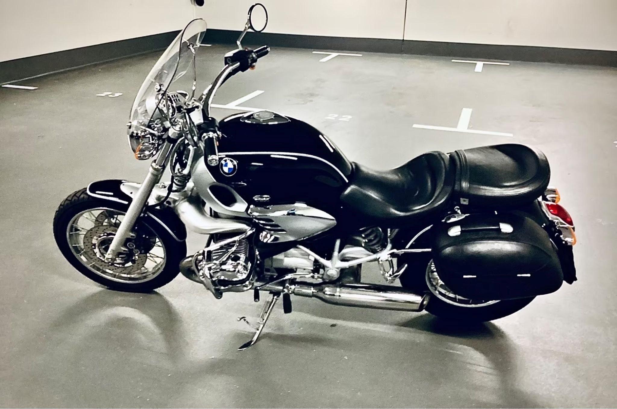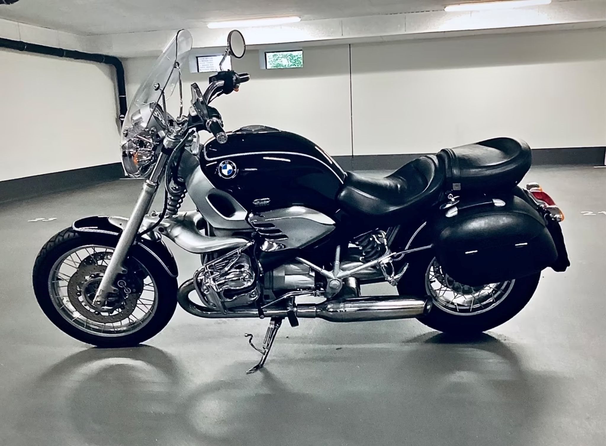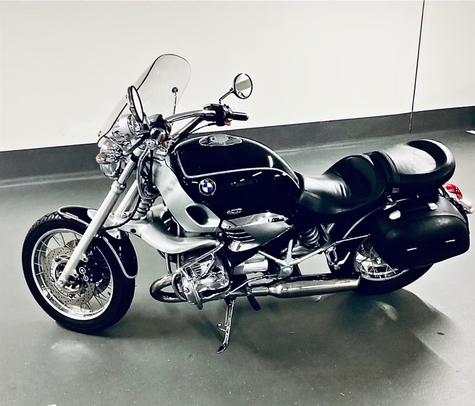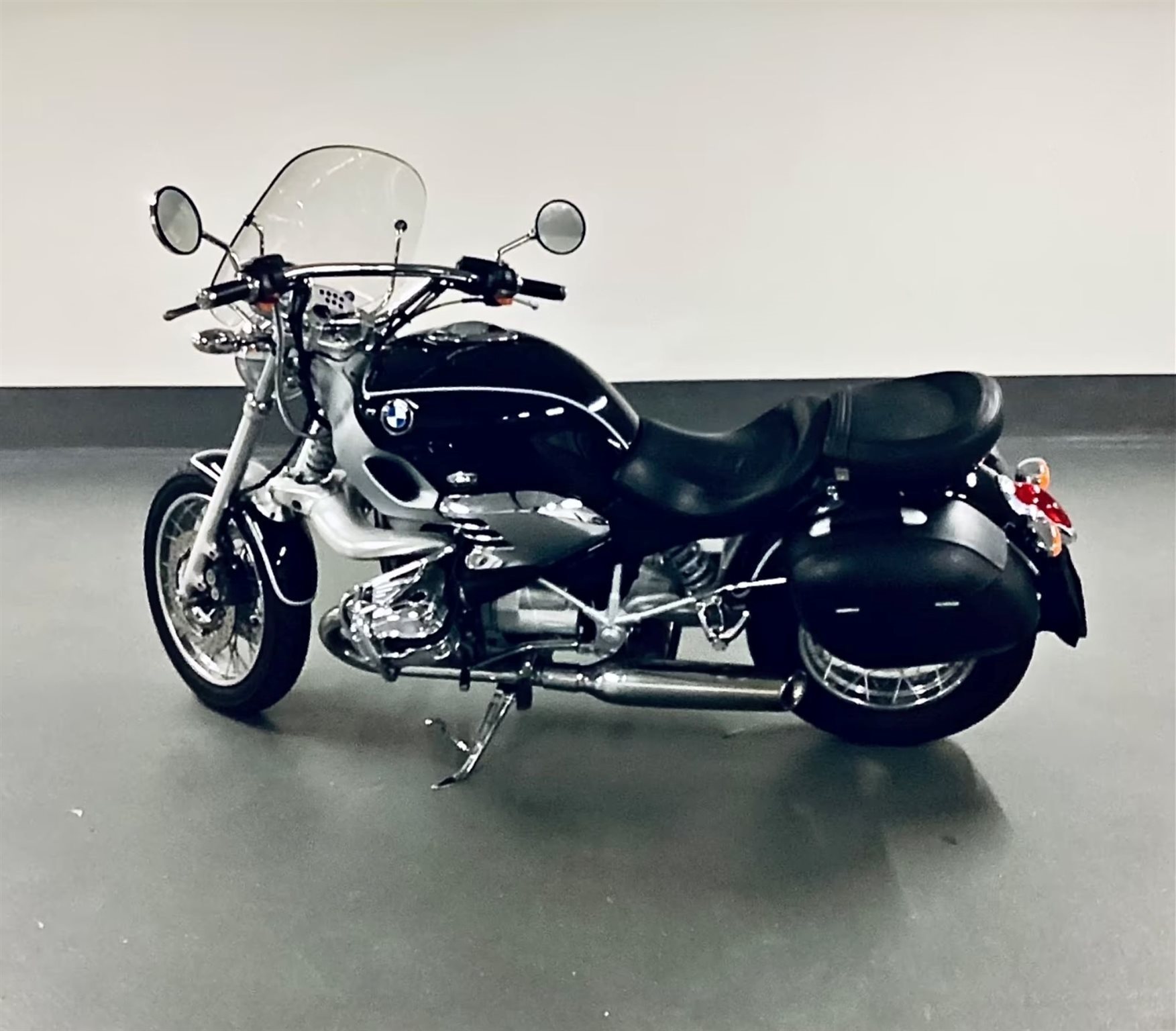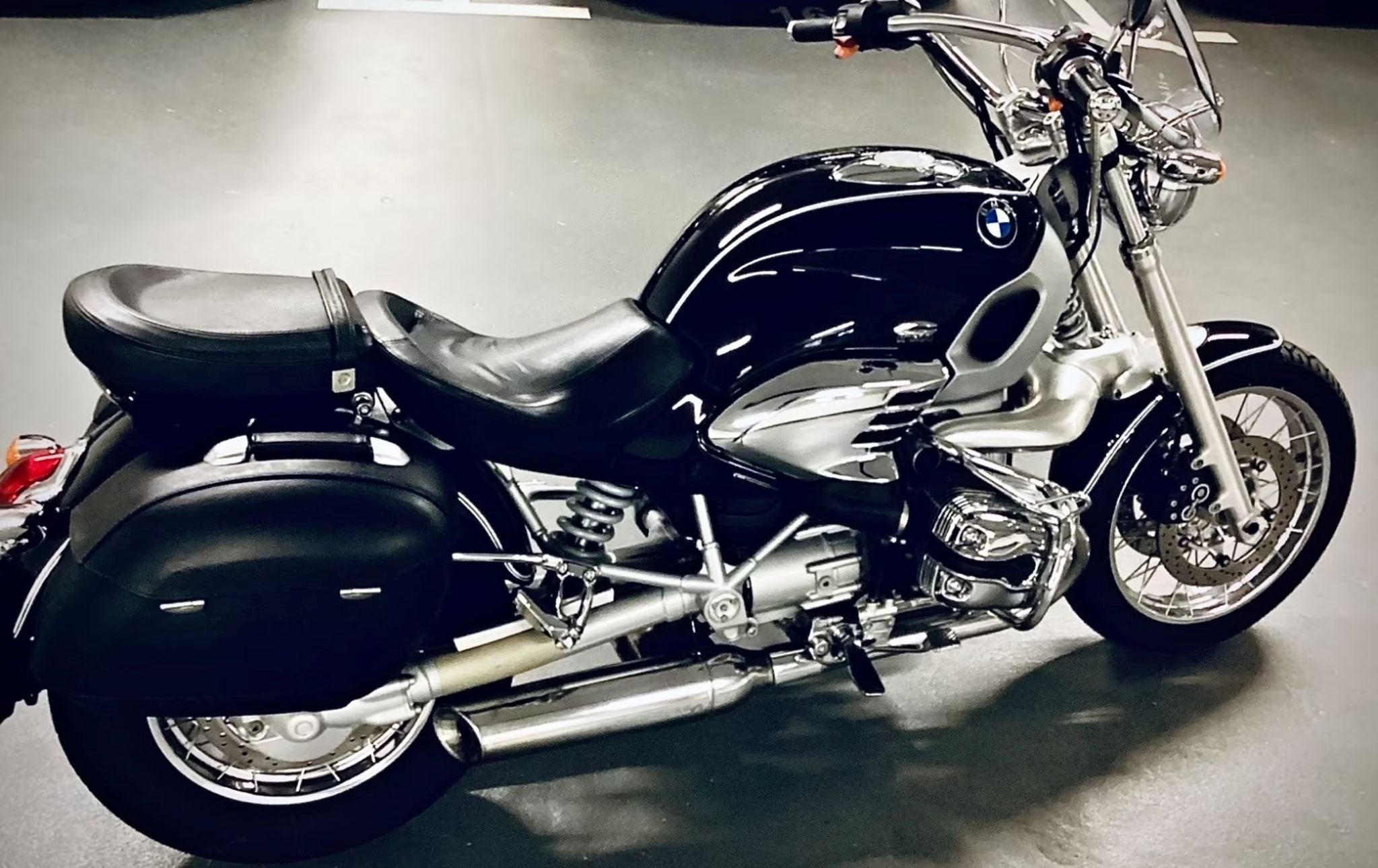 Motorrad BMW R 1200 C - James-Bond-Cruiser, TÜV vom 09.05.2025 ,alles original, unverbastelt, un- und unfallfrei, 45 kW (61 PS) in Nachtschwarz, geregelter KAT, ABS, Griff-Heizung, Sturzbügel, vergrößerter Soziussitz, Sozius-Fußrasten, Speichenräder, Kofferhalter, BMW-Gepäcksystem, 2 original Ledersatteltaschen (Lederkoffer). Gleichschliessung Zündung, Tank und Koffer, Garagen-Fahrzeug.