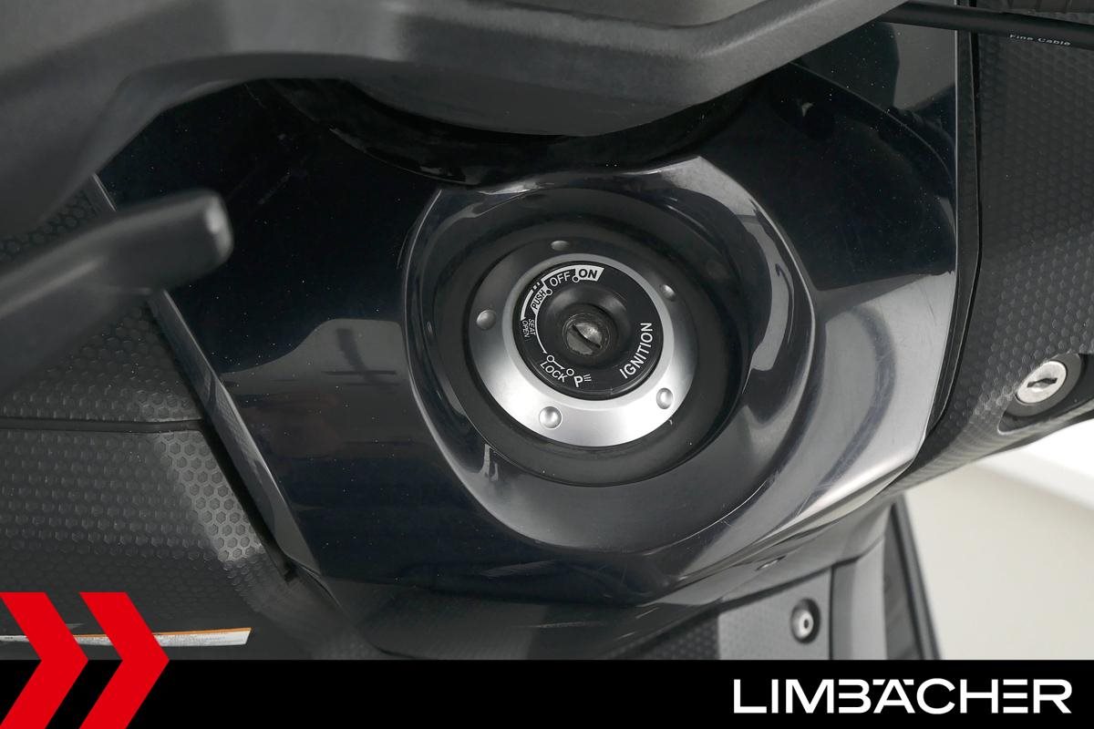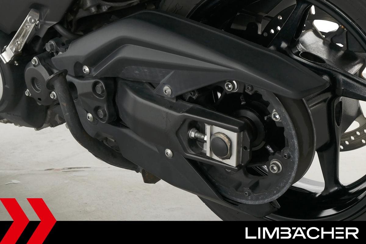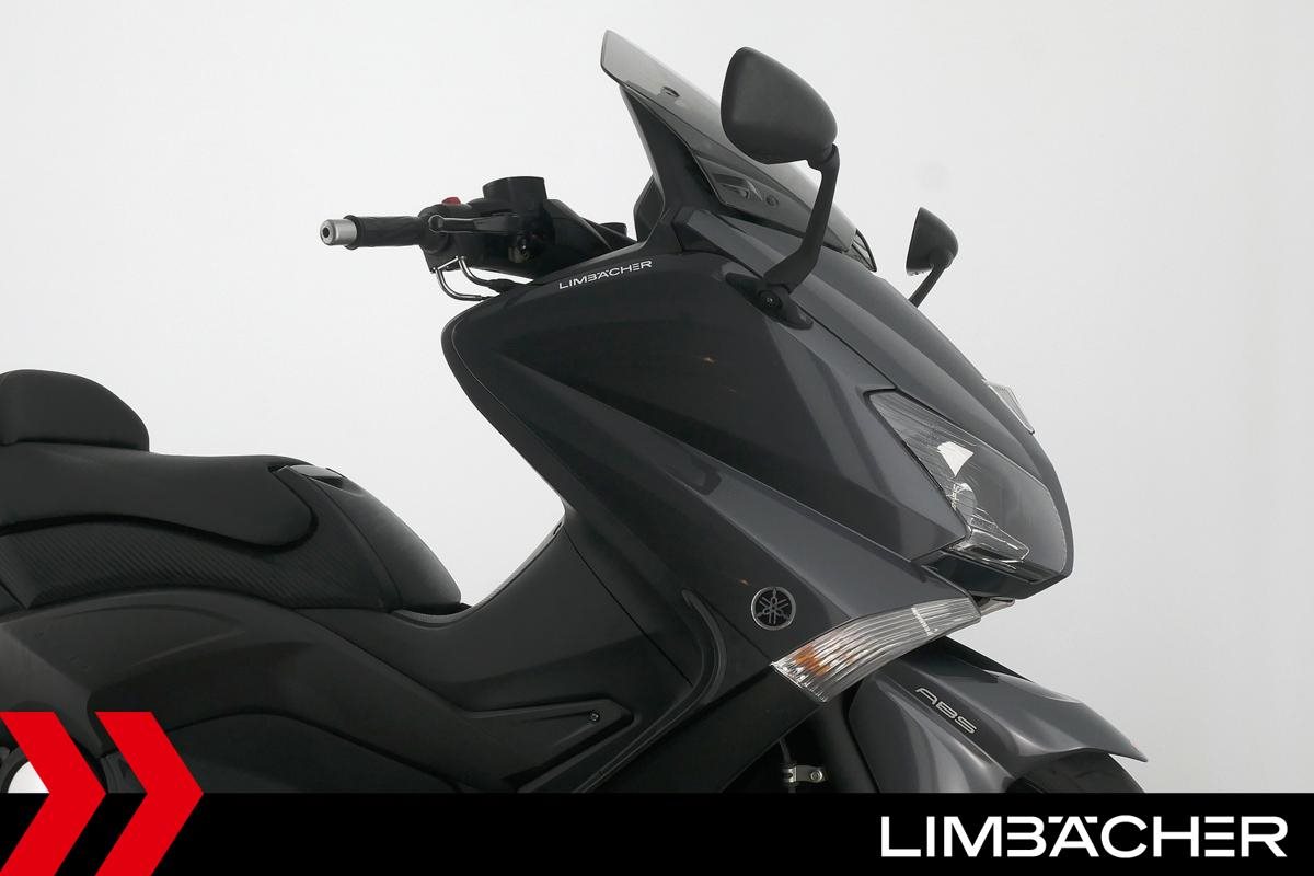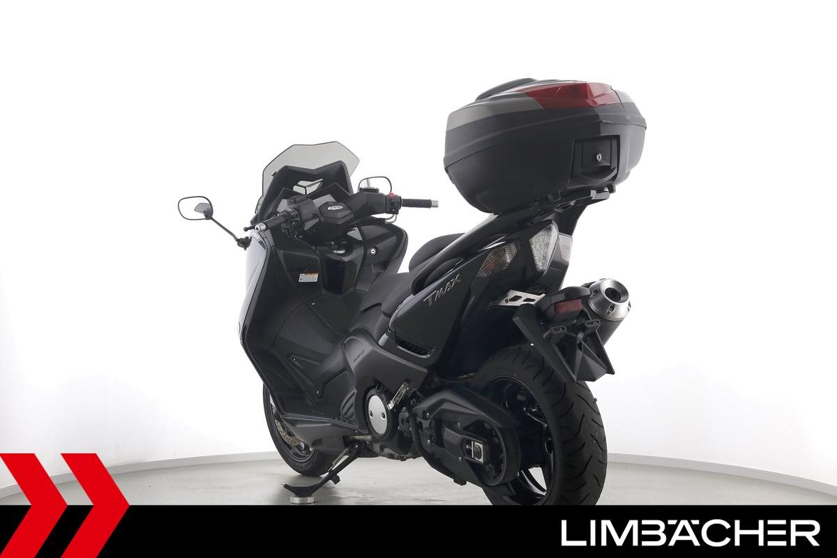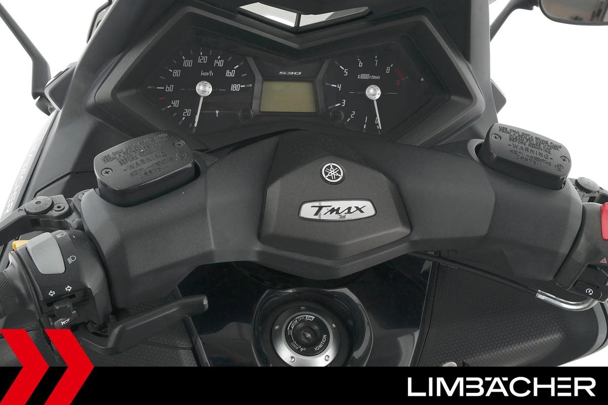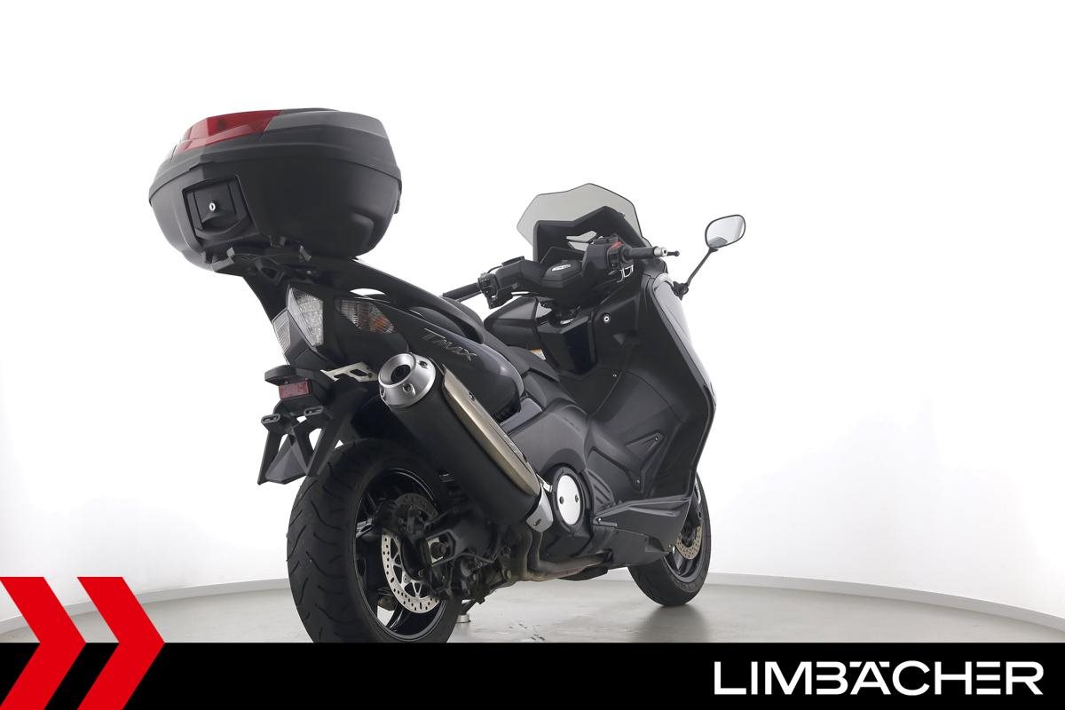 Ein Yamaha TMAX 530 aus zweiter Hand in gepflegtem Zustand u.a. mit Yamaha-Topcase gleichschliessend sowie Feststellbremse.