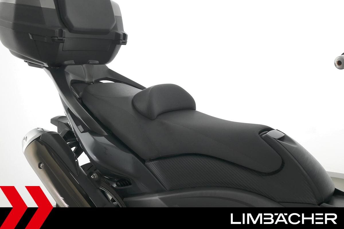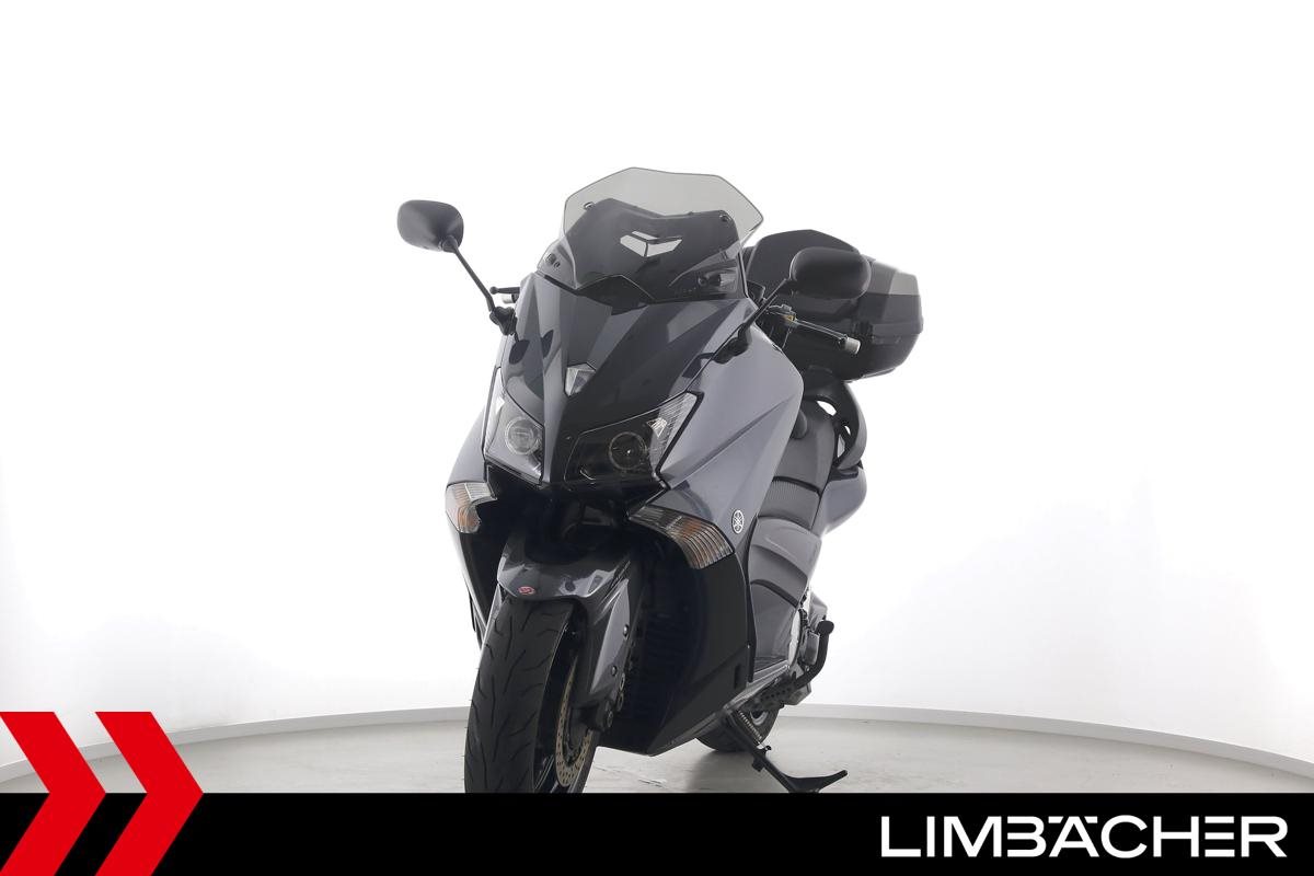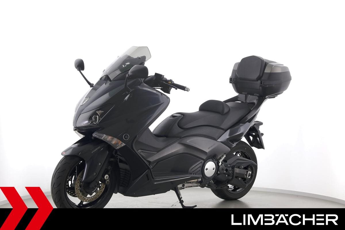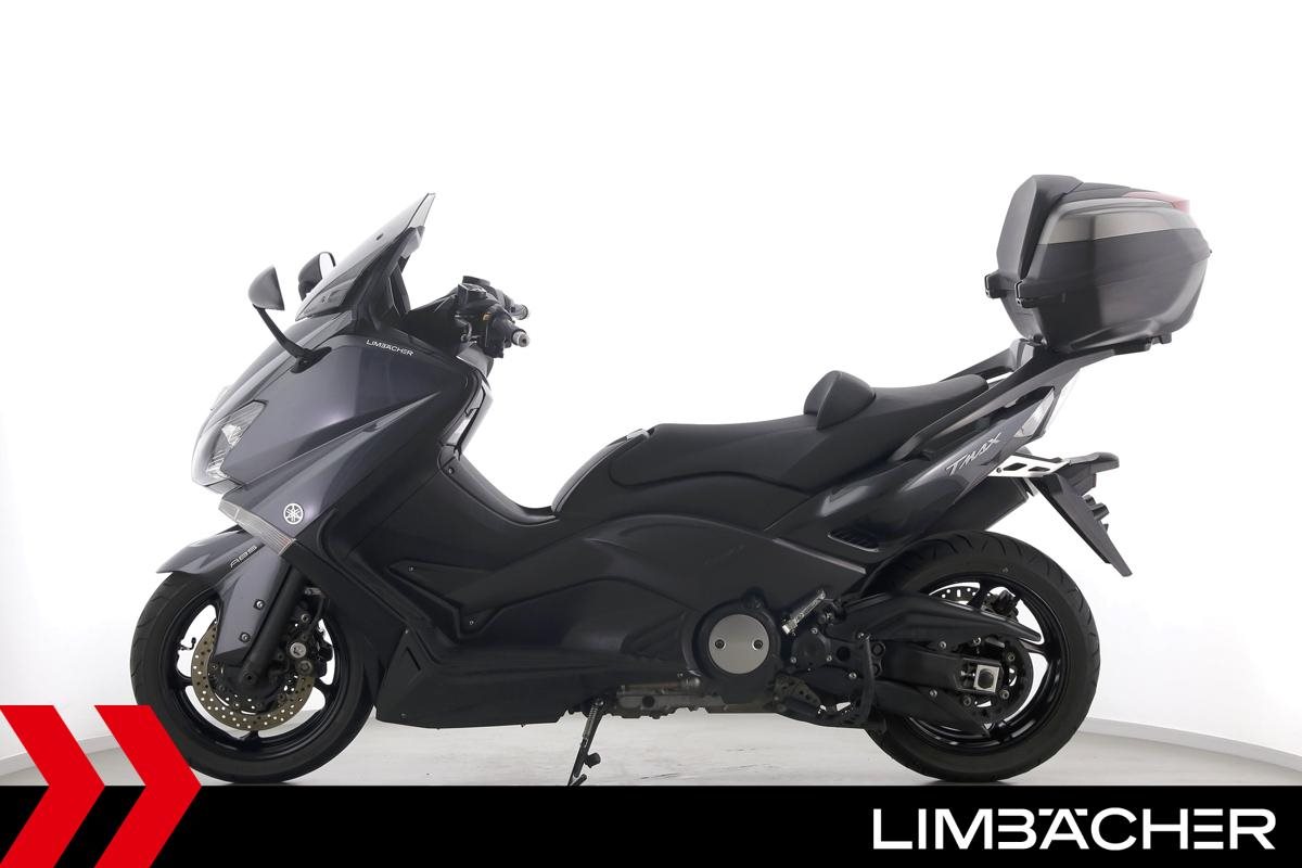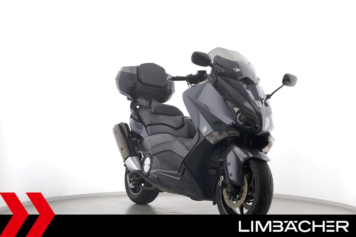 Ein Yamaha TMAX 530 aus zweiter Hand in gepflegtem Zustand u.a. mit Yamaha-Topcase gleichschliessend sowie Feststellbremse.
