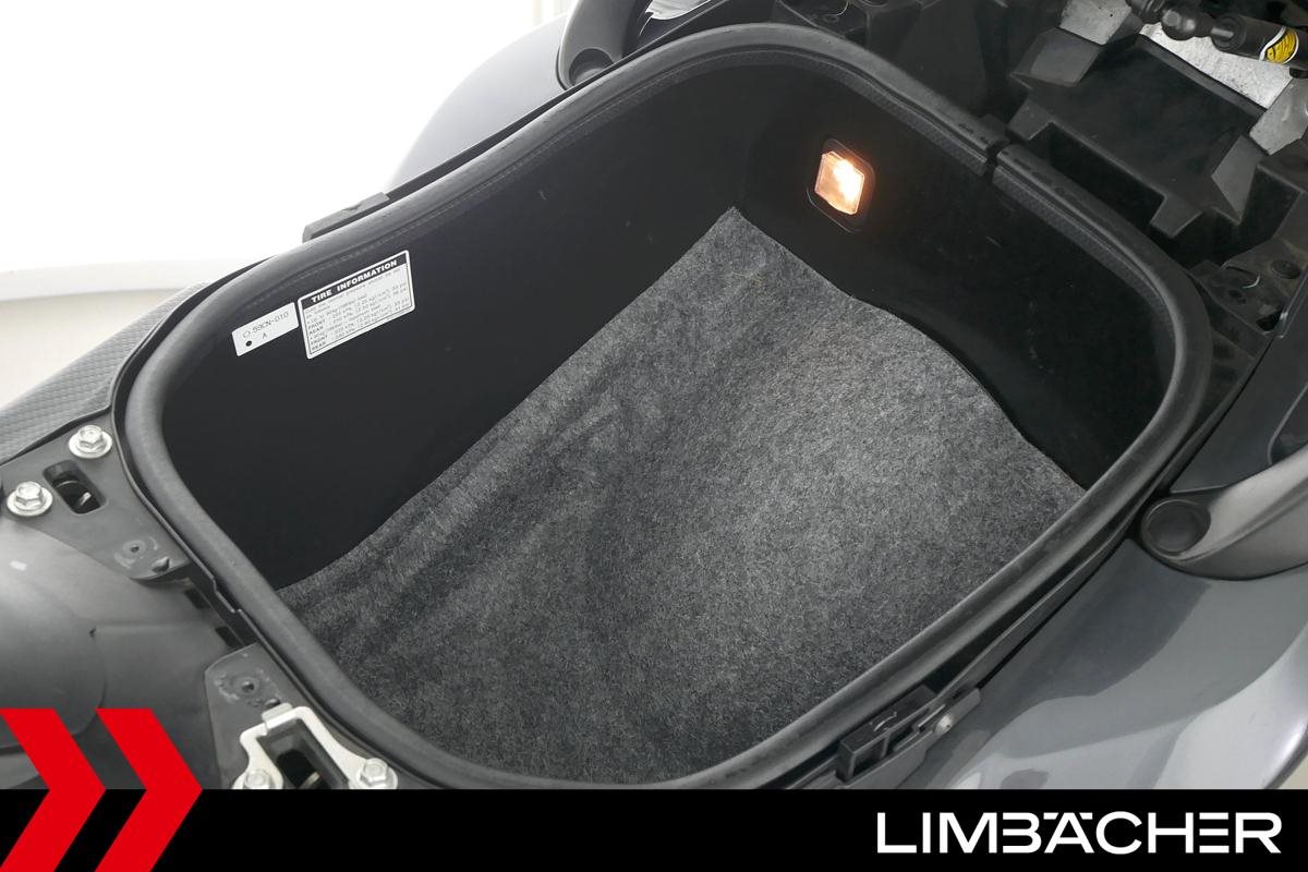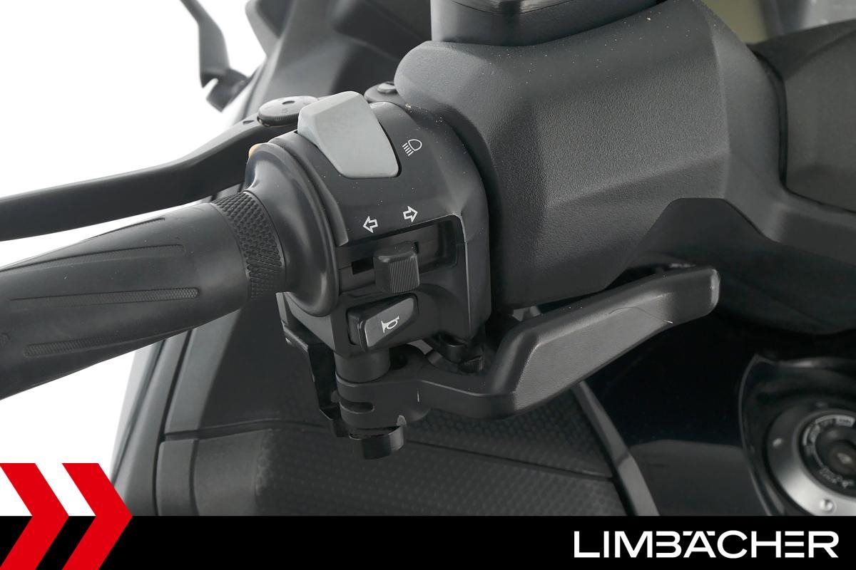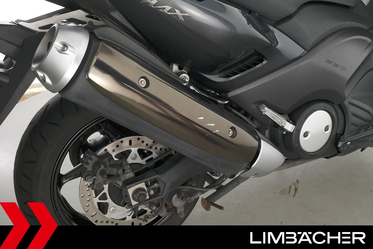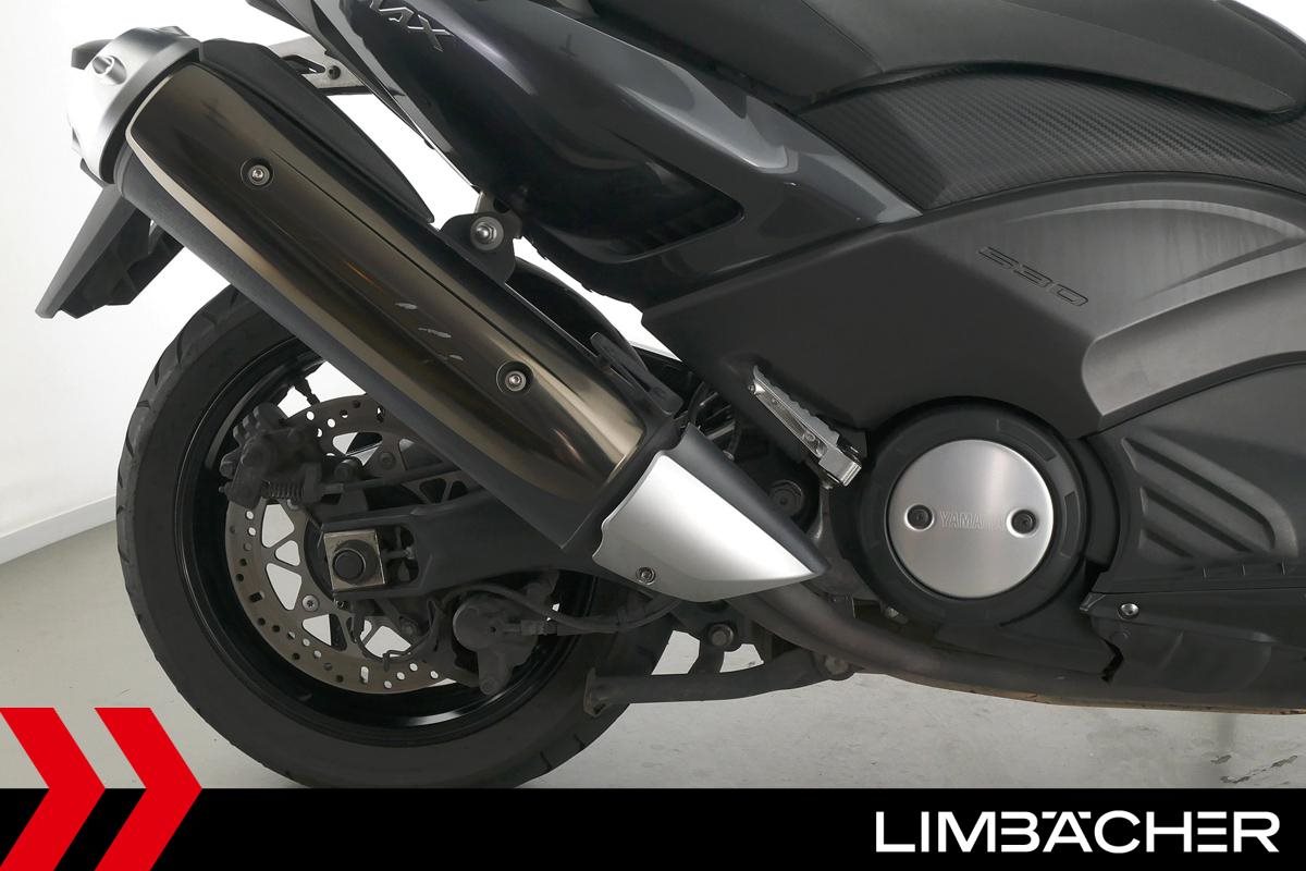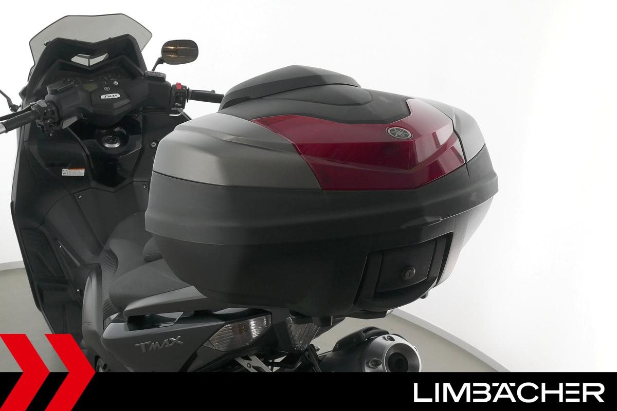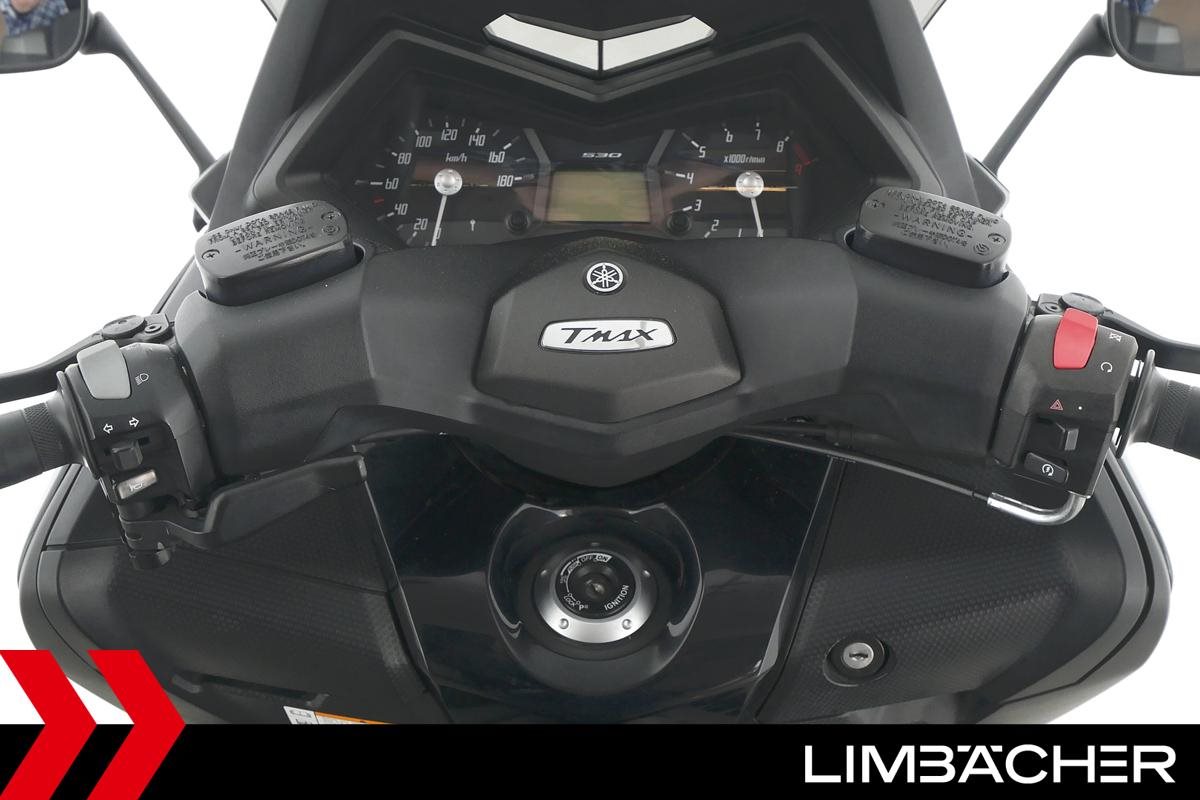Ein Yamaha TMAX 530 aus zweiter Hand in gepflegtem Zustand u.a. mit Yamaha-Topcase gleichschliessend sowie Feststellbremse.