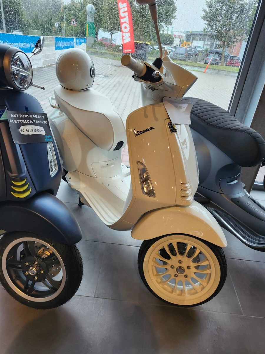 Die JUSTIN BIEBER X VESPA ist als 150er-Modell mit einem umweltfreundlichen i-get-Motor ausgerüstet. Die moderne, jugendliche Formgebung der Karosserie wirkt leicht, bietet zugleich Schutz. Der Lenker mit dem klassischen Rechteckscheinwerfer trägt ein hochmodernes TFT-Multifunktions-Farbdisplay, das mit zahlreichen Smartphone-Funktionen gekoppelt werden kann. LED-Lichttechnik und markante 12-Zoll-Felgen bringen die gelungene Verschmelzung von Stil und Technologie auf den Punkt.
