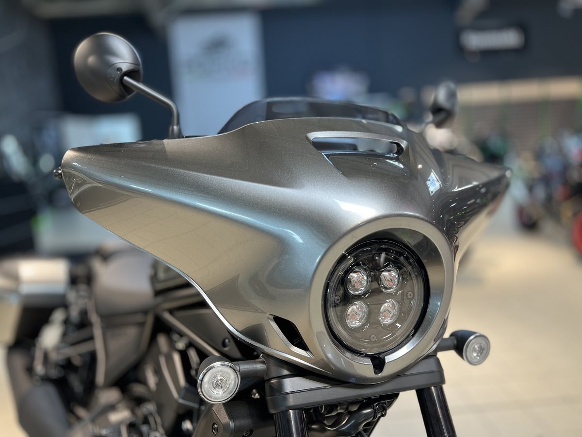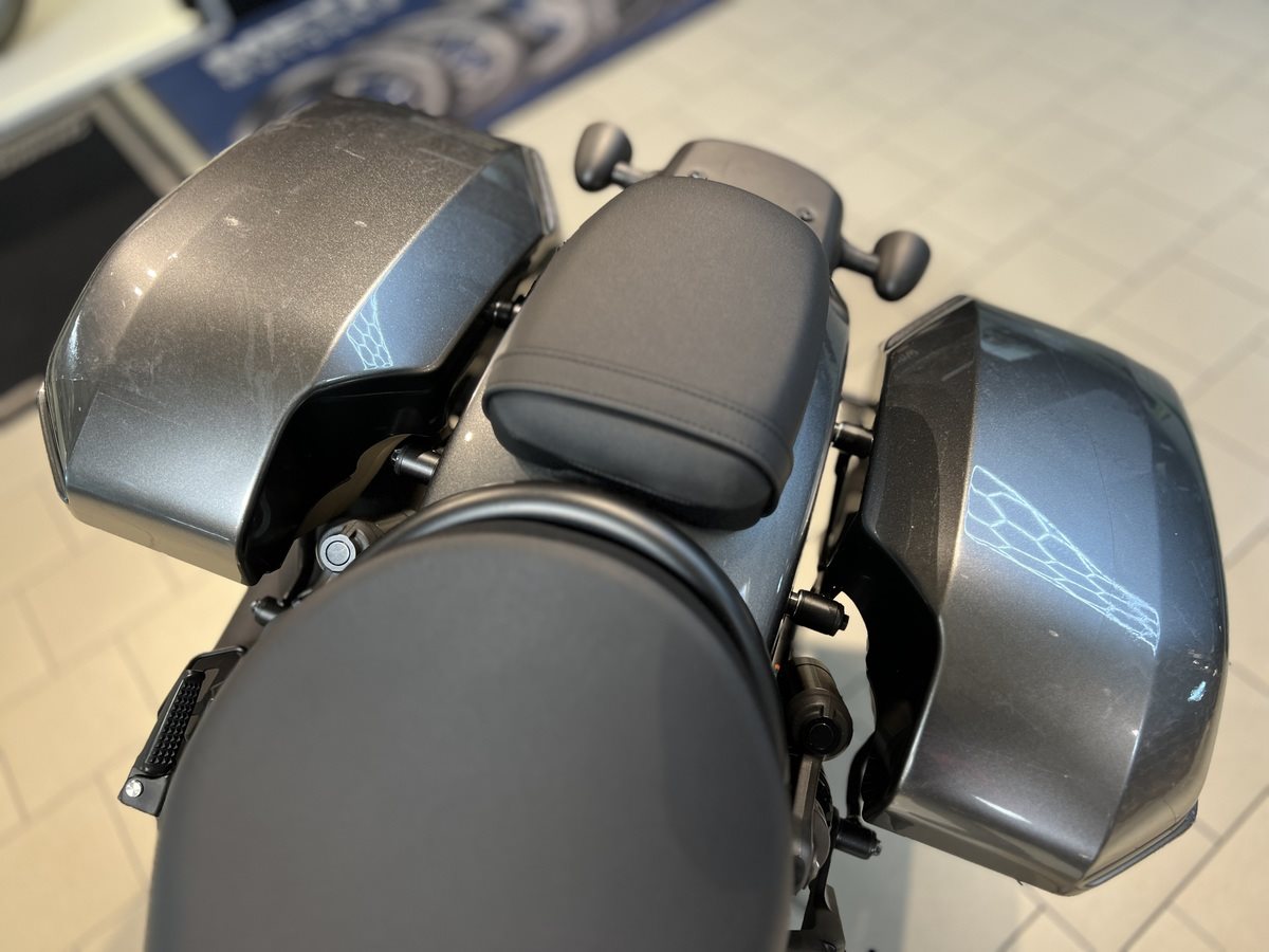 HONDA CMX 1100 T DCT Es geht nicht nur darum, wo du gewesen bist. Es geht darum, wohin du gehst. Mit der neuen CMX1100 Rebel bist du auf der Straße unterwegs wie nie zuvor. Der charakterstarke Zweizylindermotor bringt mehr Leistung im niedrigen bis mittleren Drehzahlbereich mit. Die entspanntere Sitzposition mit erhöhtem und in Richtung des Fahrers nach hinten versetztem Lenker, nach vorn versetzten Fußrasten und 10 mm höherem Sitz bietet mehr Komfort und Sicherheit. Hinzu kommt das neue 5-Zoll-TFT-Display mit Smartphone-Konnektivität per Honda RoadSync, mit dem du unterwegs auf dem Laufenden bleibst.