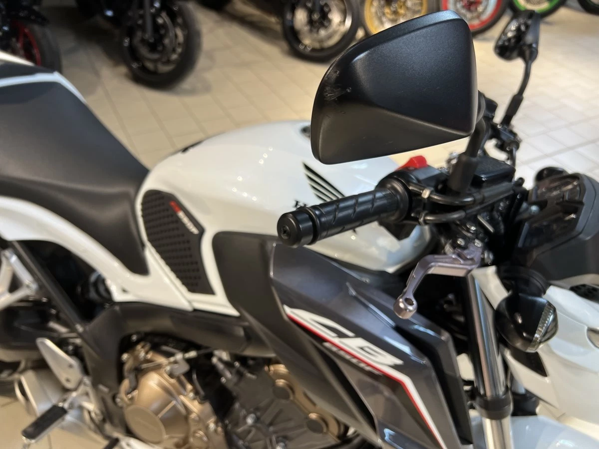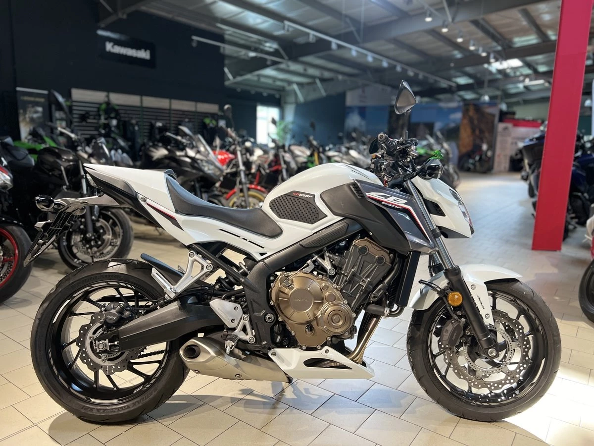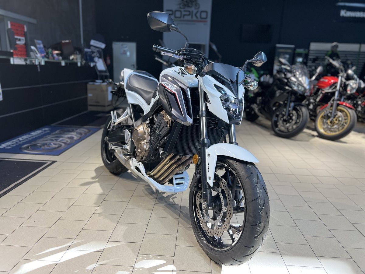 HONDA CB650F Verkauft wird hier eine schöne CB650F aus dem Hause Honda in der beliebten Farbe weiß. Das Fahrzeug wurde bei uns als Neufahrzeug erworben und auch in unserer Meisterwerkstatt gewartet. Technisch ist das Fahrzeug in einem guten Zustand - ohne Wartungsstau. Wir haben eine frische Inspektion inkl. Motoröl - und Bremsflüssigkeitswechsel durchgeführt. Zudem hat das Fahrzeug zwei neue Reifen und neuen TÜV erhalten. Wartungshistorie: 1. Wartung am 11.09.2018 bei 1392 km 2. Wartung am 20.09.2019 bei 5329 km 3. Wartung am 28.09.2020 bei 7778 km 4. Wartung am 07.08.2023 bei 11796 km 5. Wartung frisch bei 13640 km Verbautes Zubehör: Soziussitzabdeckung in Fahrzeugfarbe Tankpads für den Kniebereich Tankpad mittig Verstellbare Brems - und Kupplungshebel Das Fahrzeug ist unfallfrei, hatte aber einen Umkipper auf der linken, sowie auf der rechten Seite, wodurch an beiden Seiten optische Mängel an diversen Anbauteilen zu sehen sind.