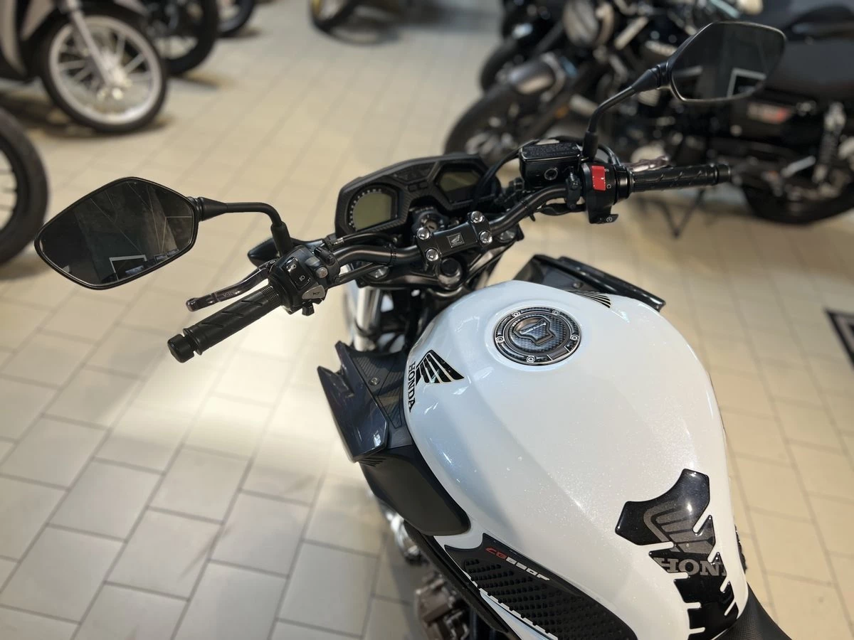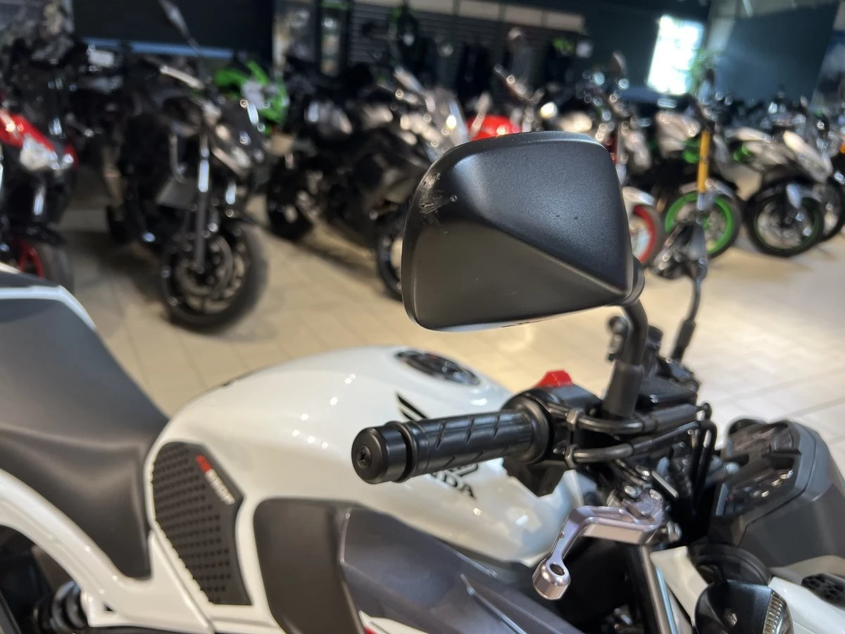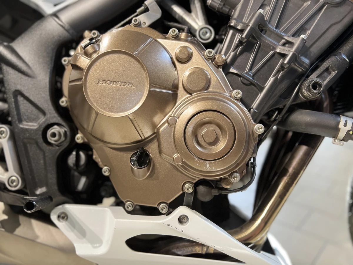 HONDA CB650F Verkauft wird hier eine schöne CB650F aus dem Hause Honda in der beliebten Farbe weiß. Das Fahrzeug wurde bei uns als Neufahrzeug erworben und auch in unserer Meisterwerkstatt gewartet. Technisch ist das Fahrzeug in einem guten Zustand - ohne Wartungsstau. Wir haben eine frische Inspektion inkl. Motoröl - und Bremsflüssigkeitswechsel durchgeführt. Zudem hat das Fahrzeug zwei neue Reifen und neuen TÜV erhalten. Wartungshistorie: 1. Wartung am 11.09.2018 bei 1392 km 2. Wartung am 20.09.2019 bei 5329 km 3. Wartung am 28.09.2020 bei 7778 km 4. Wartung am 07.08.2023 bei 11796 km 5. Wartung frisch bei 13640 km Verbautes Zubehör: Soziussitzabdeckung in Fahrzeugfarbe Tankpads für den Kniebereich Tankpad mittig Verstellbare Brems - und Kupplungshebel Das Fahrzeug ist unfallfrei, hatte aber einen Umkipper auf der linken, sowie auf der rechten Seite, wodurch an beiden Seiten optische Mängel an diversen Anbauteilen zu sehen sind.