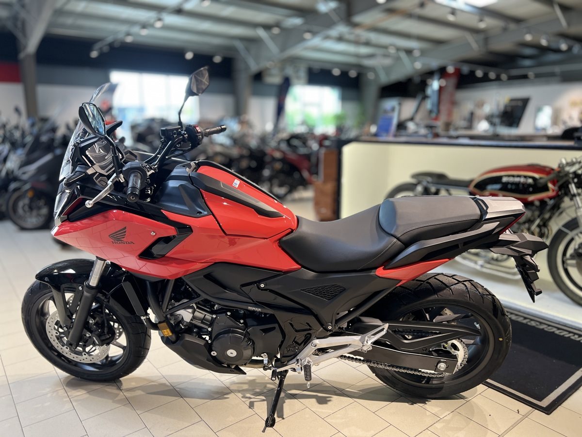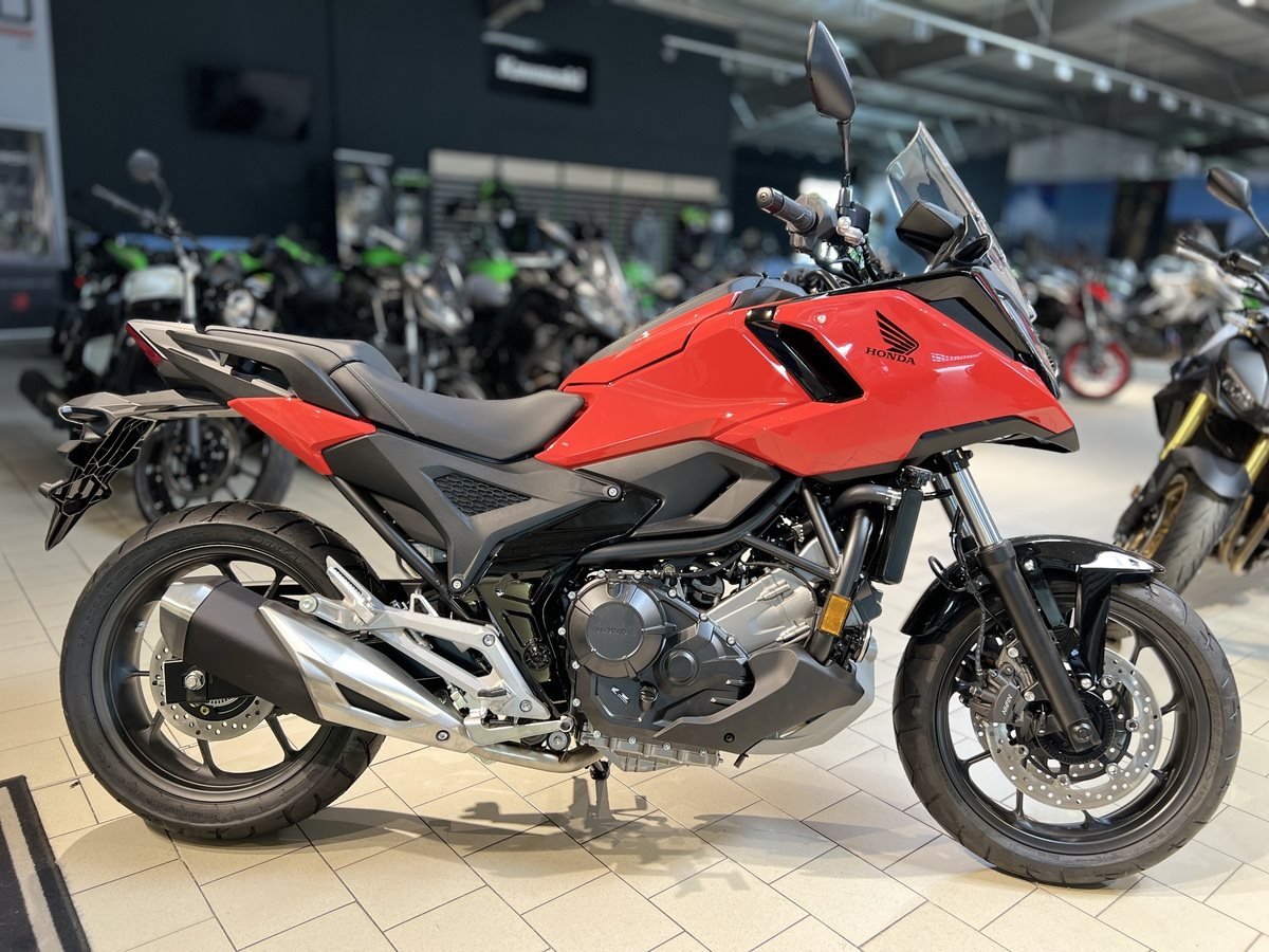 HONDA NC750X 2025 Dein neues Motorrad soll ein vielseitiger Allrounder werden? Dann hast du das richtige gefunden: Die NC750X mit langen Federwegen und Zweizylindermotor eignet sich perfekt für den Weg zur Arbeit, Touren und alles, was dazwischen liegt. Dazu gibt es jetzt ein neues Modell. Das robuste Design ist mit dem neu gestalteten LED-Scheinwerfer und dem neuen 5-Zoll TFT-Display mit Smartphone-Konnektivität per Honda RoadSync noch markanter. Das Vorderrad ist jetzt mit einer Doppelscheibenbremse mit verbesserter Bremsleistung ausgestattet. Bei der Verkleidung kommt nachhaltiges, farbiges DurabioT zum Einsatz. Außerdem überrascht die NC750X mit einem versteckten Extra: 23 Liter Stauraum, genug für einen Integralhelm. Technische Daten: Motor: Flüssigkeitsgekühlter Reihenzweizylinder Viertakt Motor Max. Leistung: 59 PS und 69 NM Drehmoment Tankinhalt: 14,1 Liter Verbrauch: 3,5 l / 100 km (Honda WMTC Messwerte) Gewicht vollgetankt: 216 kg Sitzhöhe: 802 mm