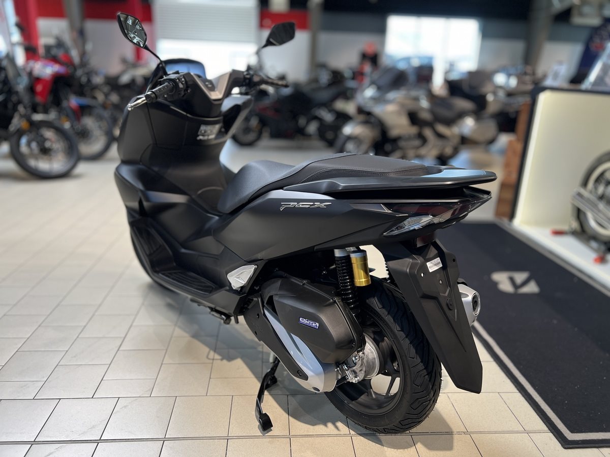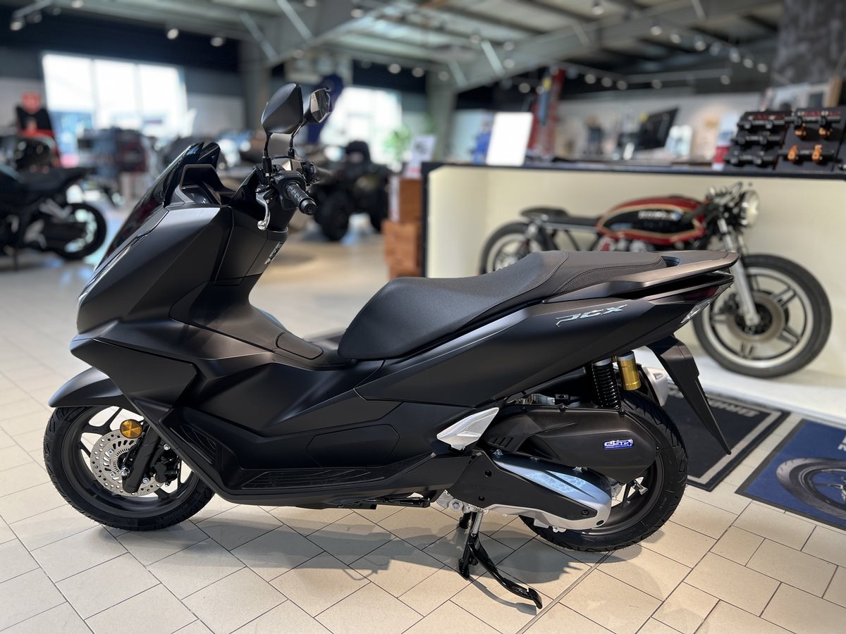 HONDA PCX 125 DX Das ist der PCX125. Aber besser. Angetrieben von einem flüssigkeitsgekühlten 4V-Motor, der eine ruhige Beschleunigung liefert und dabei einen erstaunlich niedrigen Kraftstoffverbrauch aufweist. Das intelligent aktualisierte Styling besticht durch futuristische Linien und einen noch umfassenderen Windschutz, aber auch durch eine aktualisierte Scheibenbremse am Hinterrad für verbesserte Bremsleistung. Der neue PCX125 DX verfügt über einen 5-Zoll TFT-Bildschirm mit Honda RoadSync-Smartphone-Konnektivität und intuitiver Lenker-Bedienung sowie über eine aktualisierte hintere Untertankaufhängung für eine noch ruhigere Fahrt in der Stadt.