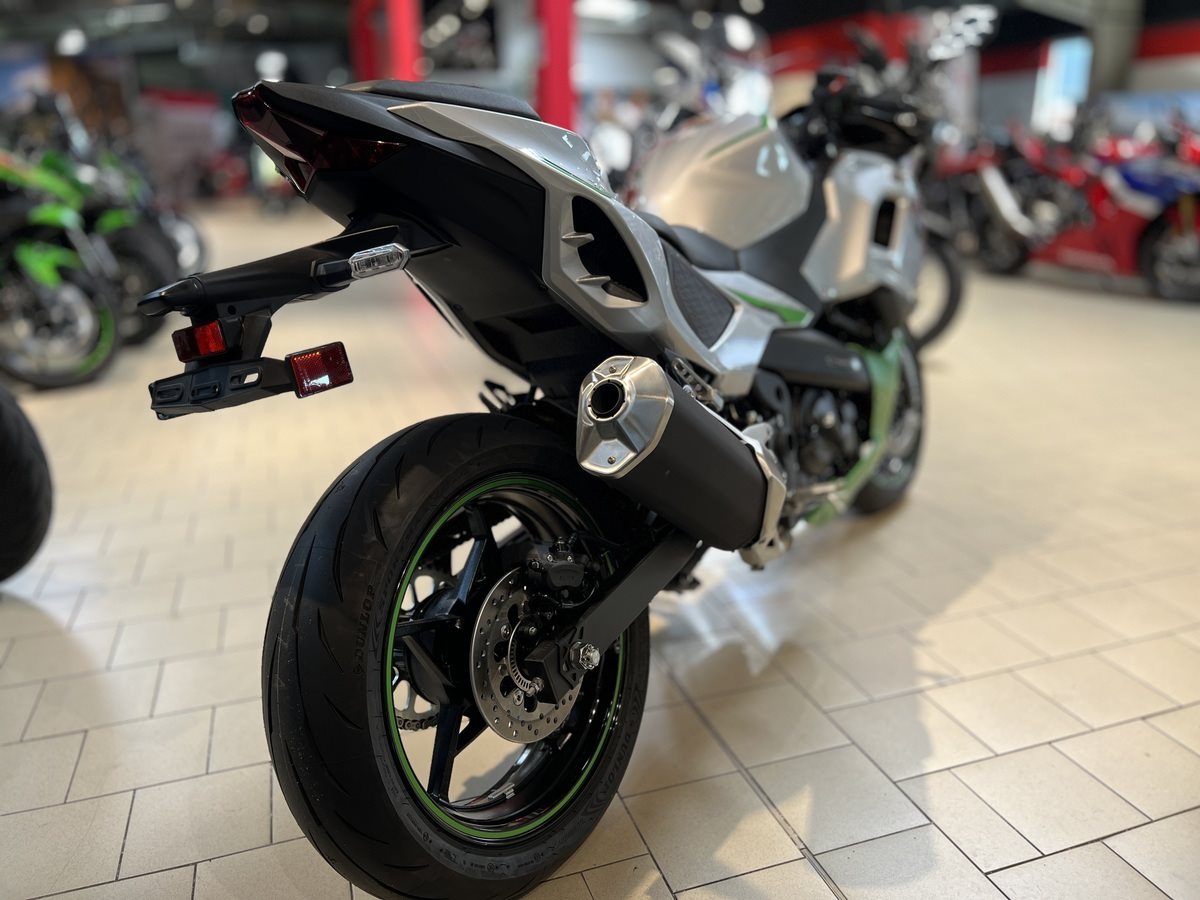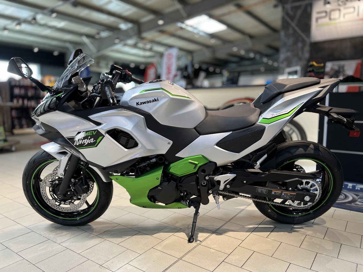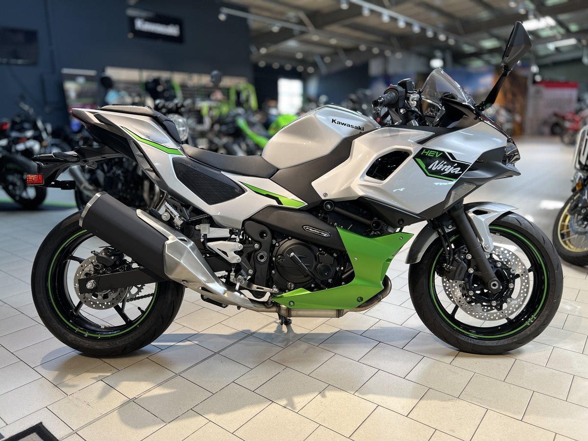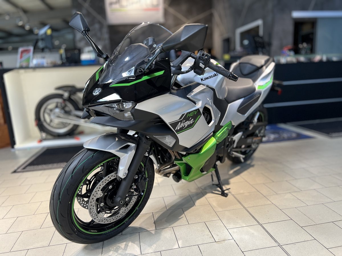 Das weltweit erste starke Hybrid-Motorrad bietet dem Fahrer eine Reihe neuer Fahrerlebnisse: ein Mittelklasse-Paket mit der sofortigen Beschleunigung eines Supersportlers der 1'000-ccm-Klasse aus dem Stand (mit E-Boost), einen Kraftstoffverbrauch auf dem Niveau der 250-ccm-Klasse und sportliches Fahren per Knopfdruck. Mit drei verschiedenen Fahrmodi, von denen jeder einen eigenen Fahrcharakter bietet, und zahlreichen innovativen Funktionen, die der Fahrer erkunden kann, verändert die Ninja 7 Hybrid wirklich das Spiel und läutet eine neue Ära des Fahrerlebnisses ein.