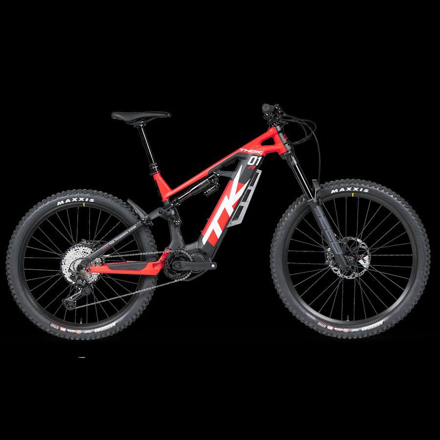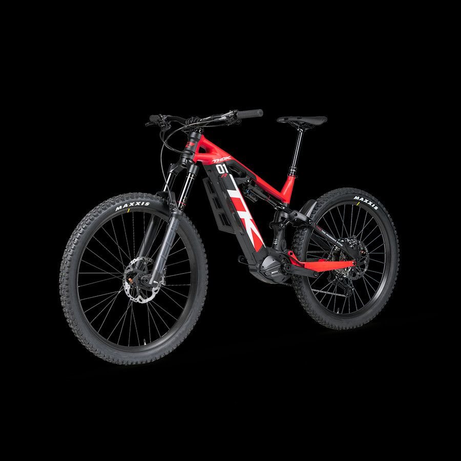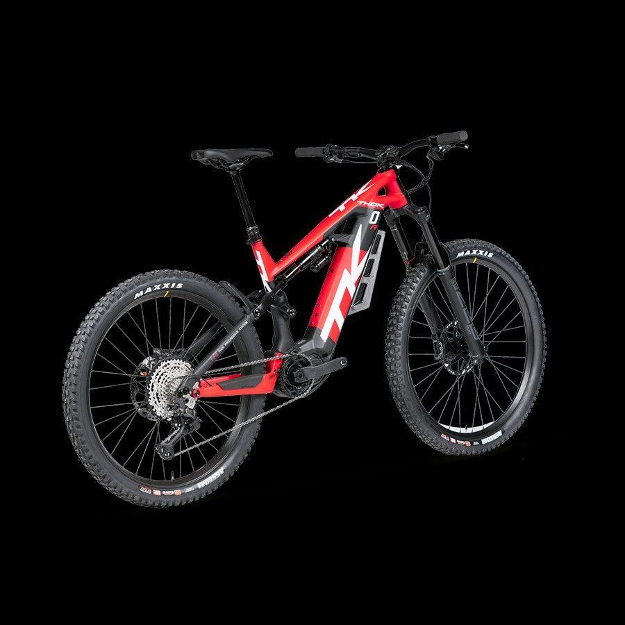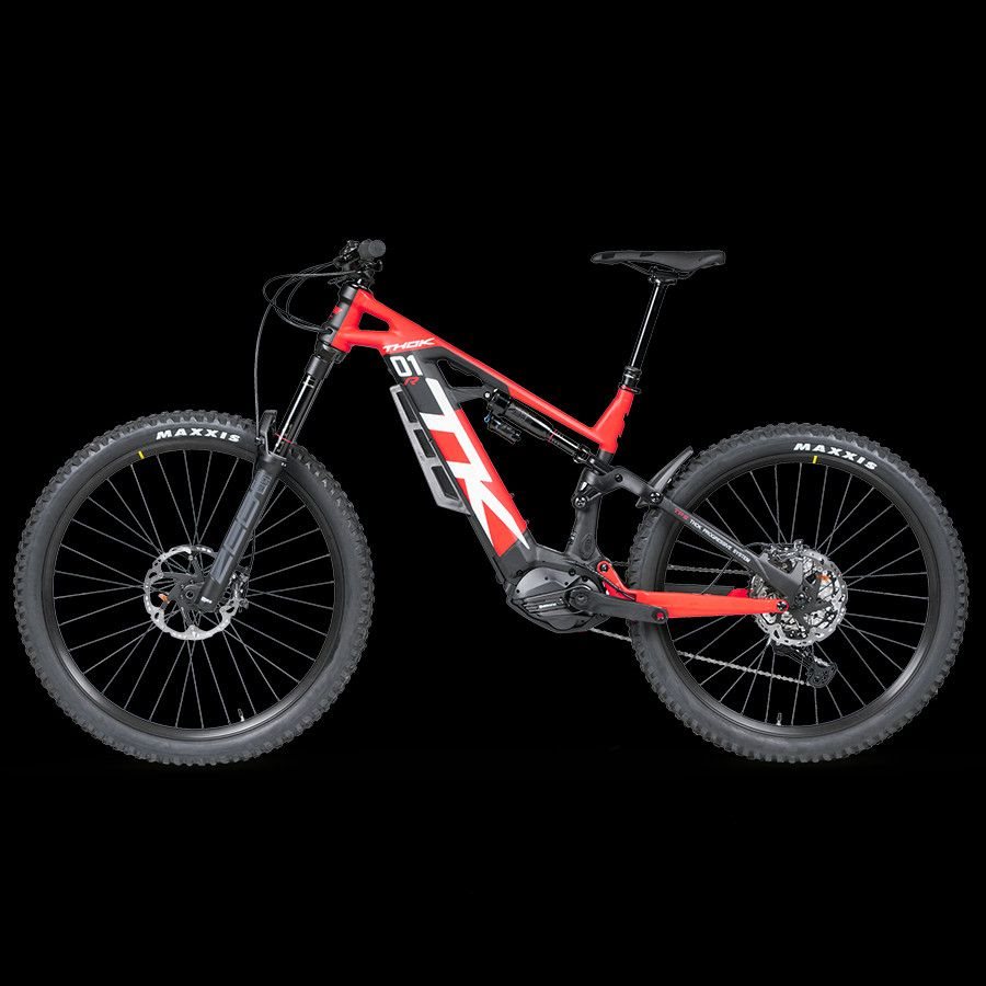 Das mit den derzeit innovativsten Komponenten ausgerüstete TK01 R ist ein E-MTB für E-Biker mit höchsten Ansprüchen: RockShox ZEB Federgabel mit extra dicken 38 mm-Standrohren, RockShox Super Deluxe-Dämpfer mit Debonair Technology, SHIMANO EP8-Motor mit 630 Wh-Akku, Schaltung und Bremsen SHIMANO XT. Alles, was ein E-MTB braucht, um mit Spaß und in größter Sicherheit auch die schwierigsten Endurostrecken zu bewältigen, und das sich zudem durch sein Red Fire Black-Outfit von Aldo Drudi eindeutig von den Konkurrenten dieser Kategorie abhebt. Das gelieferte TK01 R umfasst einen mit dem Namen des Besitzers personalisierten Rahmen, die Angaben der spezifischen Settings und das THOKCare (2 Jahre zusätzliche Garantie).