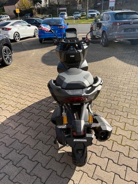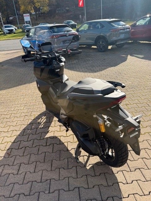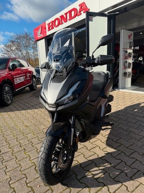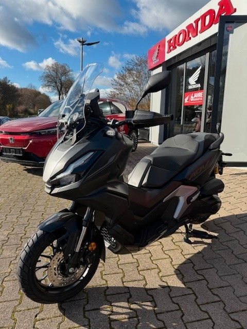 Die Basis: unsere beste Rollertechnologie. Dazu eine Prise Abenteuer-DNA vom bahn- brechenden X-ADV und es entsteht etwas völlig Neues - der ADV350. Mit einem Gewicht von nur 186 kg, einer Sitzhöhe von 795 mm für gute Bodenerreichbarkeit und frischem Styling hat der ADV350 alles für einen mühelosen Citytrip. Unebene Untergründe meistert der ADV mit seiner hochwertigen Upside-Down-Gabel (USD) mit langem Federweg und zwei Stoßdämp- fern mit Remote-Ausgleichsbehälter und dreifach abgestuften Federn. Außerdem verfügt er über zusätzliche Bodenfreiheit und Reifen mit Blockprofil, die leichte Geländefahrten und unbefestigte Wege problemlos bewältigen.Komfort und Alltagstauglichkeit kommen nicht zu kurz: Unter der Sitzbank ist genügend Stauraum für zwei Integralhelme sowie ein Handschuhfach mit USB-Type-C-Ladeanschluss. Bereit zum Losfahren? Für Vielseitigkeit und Komfort ist der Flyscreen in vier Stufen (in Höhe und Winkel) um 133 mm verstellbar. Damit Sie während der Fahrt mit der Außenwelt in Kon- takt bleiben, ist das LCD-Display mit dem Honda Smartphone Voice Control system (HSVCs) ausgestattet. Sobald es mit Ihrem Mobilgerät verbunden ist, können Sie Anrufe tätigen oder Musik hören.Der 330 cm3 große Motor mit enhanced Smart Power Plus (eSP+) beeindruckt mit souveräner Beschleunigung und reichlich Leistung für längere Fahrten auf der Autobahn. Sichere Trak- tion des Hinterrades bei allen Fahrbedingungen garantiert die zweistufige Honda Selectable Torque Control (HSTC). Die potenzielle Reichweite beträgt 340 km, ausgehend von einem Kraftstoffverbrauch von 3,4 l/100 km (WMTC-Modus) und einem 11,7 Liter großen Tank.