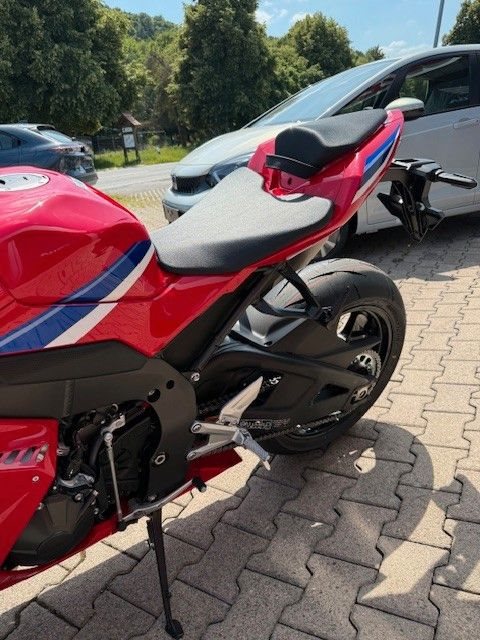 Sicherer Fahrspaß mit Lustgewinn ist ein kostbares Gut. Das gilt auf der Straße wie bei Track- days. Deshalb hat Honda die CBR1000RR-R Fireblade immer mit Engagement weiterent- wickelt. Ziel war, die Beschleunigung mit dem 217 PS starken Vierzylinder-Viertakt-Reihen- motor über optimierten Durchzug bei mittleren Drehzahlen zu verbessern. Dafür wurden Luftzuführung, Airbox und Einlasskanäle sowie die Abgasanlage überarbeitet. Für mehr Punch ist zudem ein Kettenrad mit drei Zähnen mehr (jetzt 43 Zähne) montiert, um bessere Beschleu- nigung unter Beibehaltung der enormen Spitzenleistung bei hohen Drehzahlen zu generieren.Ein Weltklassemotor erfordert ein ebensolches Chassis. Der Aluminiumrahmen mit präzise definierten Steifigkeiten und die vom RC213V-MotoGP-Bike abgeleitete Schwinge, Balance und Lenkgeometrie sind für traumhafte Fahrbarkeit ausgelegt. HRC-Werksfahrer trugen ihren Teil dazu bei, damit die neunstufige HSTC-Traktionskontrolle im Grenzbereich feiner anspricht. Reduziert wurde dazu die Rückholfederkraft des "Throttle By Wire"-Gasgriffs, um mehr Linearität beim Gasaufziehen am Kurvenausgang zuzulassen. Über das 5-Zoll TFT-Display lassen sich Motorleistung, Motorbremse und Wheelie-Steuerung anpassen. Es stehen drei vorkonfigurierte Fahrmodi sowie zwei individuell einstellbare User-Modi zur Verfügung.Sportliche Fahrer schätzen Flexibilität beim Set-up: Deswegen sind sowohl 43-mm-Upside- Down-Gabel von SHOWA in BPF-Ausführung als auch der SHOWA BFRC-lite-Stoßdämpfer (Balance Free Rear Cushion) vollständig bei Federvorspannung, Dämpferzug- und -druckstufe einstellbar. Weiter bringen die Nissin Vierkolben-Radialbremssättel mit neuartiger Brems- kolbenbeschichtung optimierte Standfestigkeit. Aerodynamische Winglets an der Verkleidung reduzieren den Auftrieb beim Beschleunigen und erhöhen die Stabilität beim Bremsen und Einlenken in Kurven. Begeisternd dynamische Performance und jede Menge Fahrspaß lässt sich durch gezielte Weiterentwicklung weiter steigern. Die CBR1000RR-R Fireblade ist dafür der beste Beweis!
