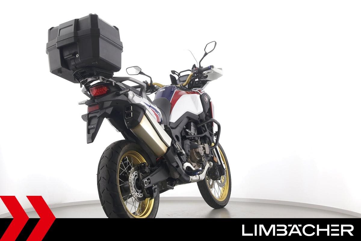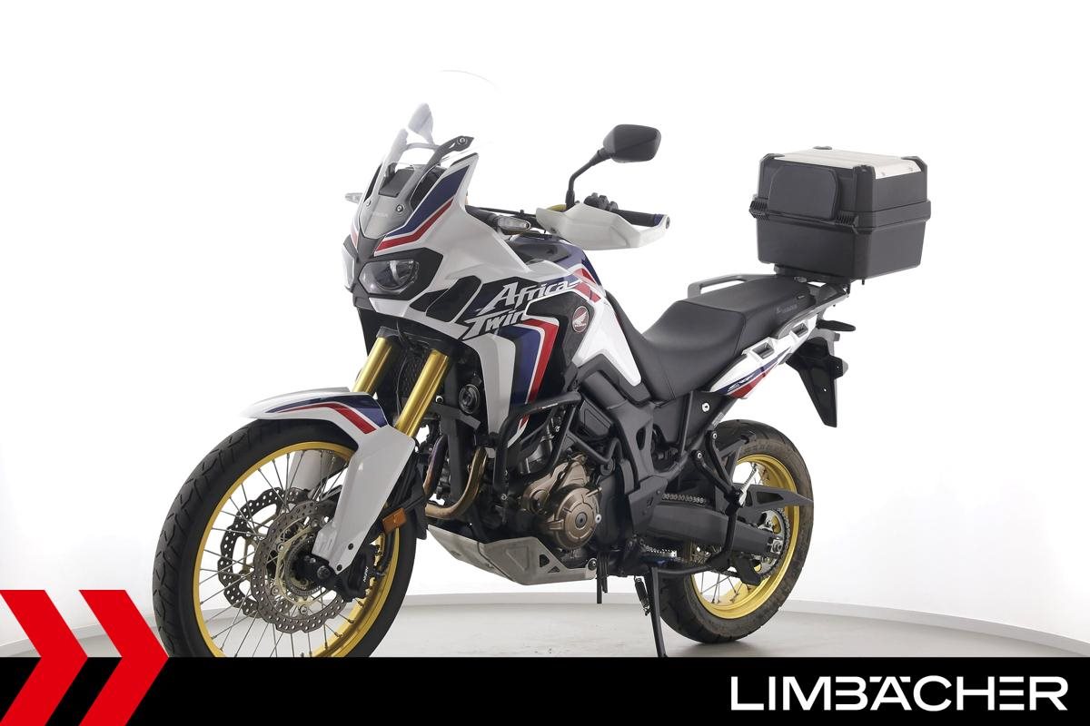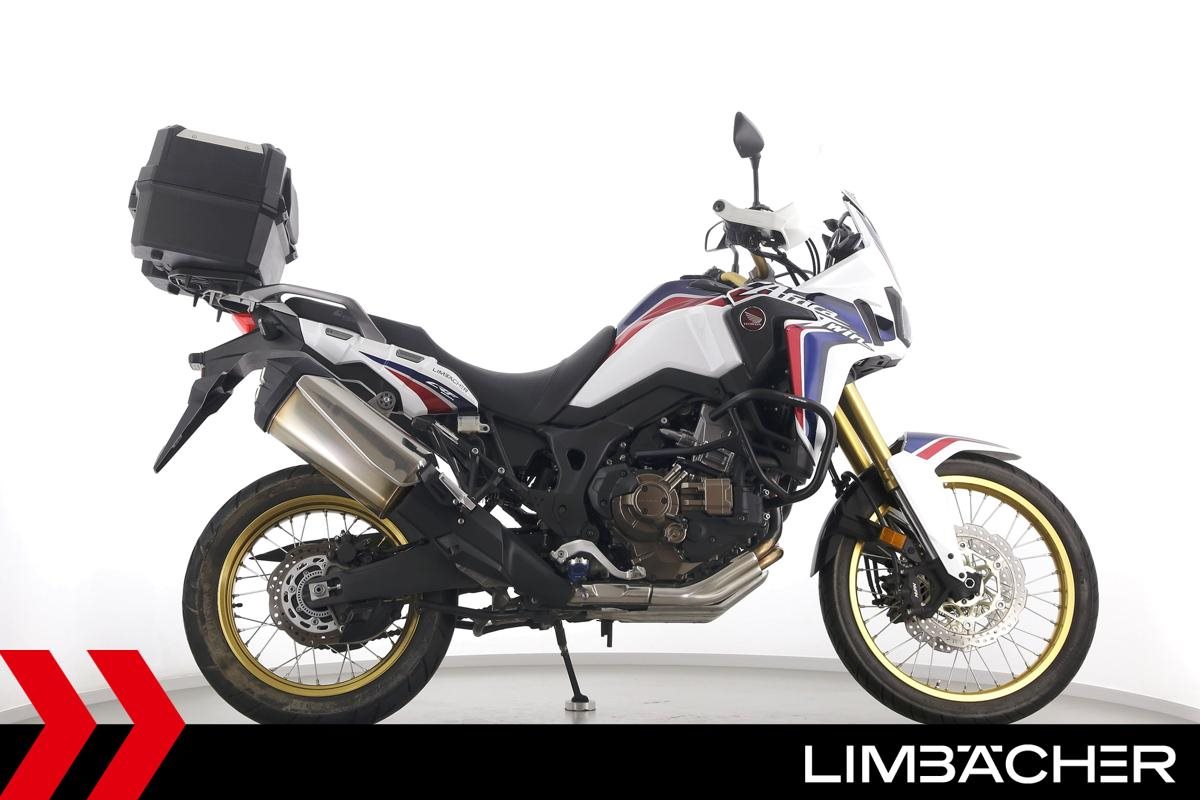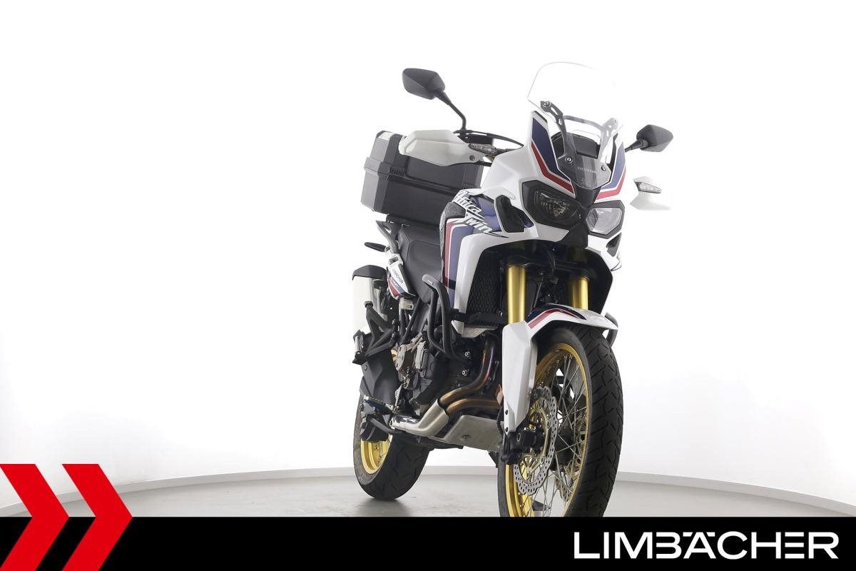 Eine scheckheftgepflegte Honda CRF 1000 L Africa Twin DCT in gepflegtem Zustand u.a. mit Touratech Komfort-Sitzbank sowie Honda-Topcase gleichschliessend.