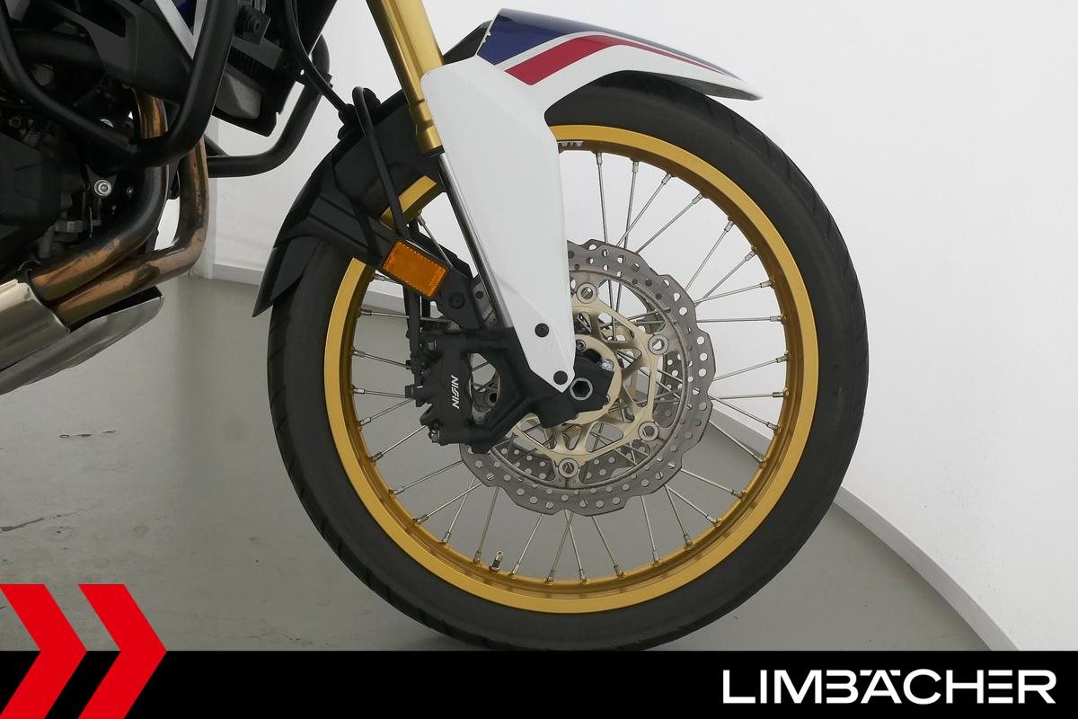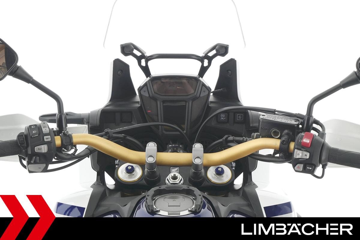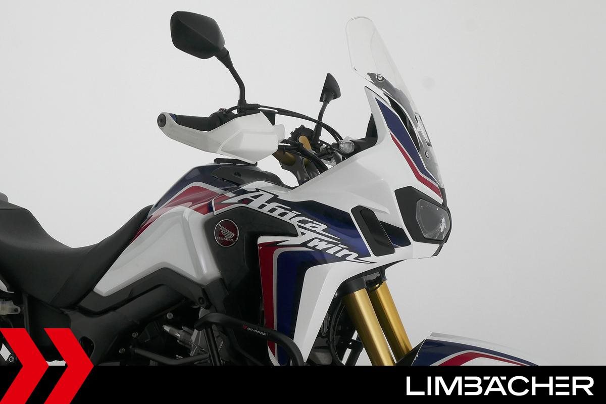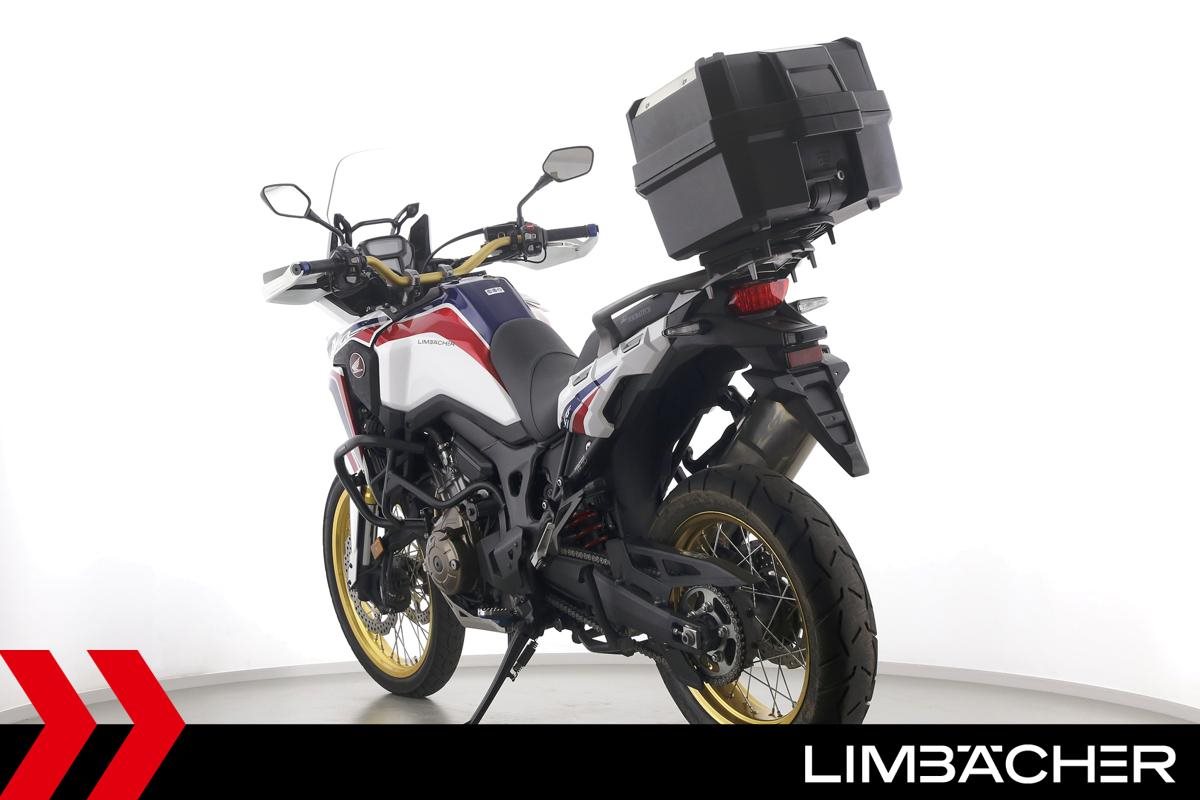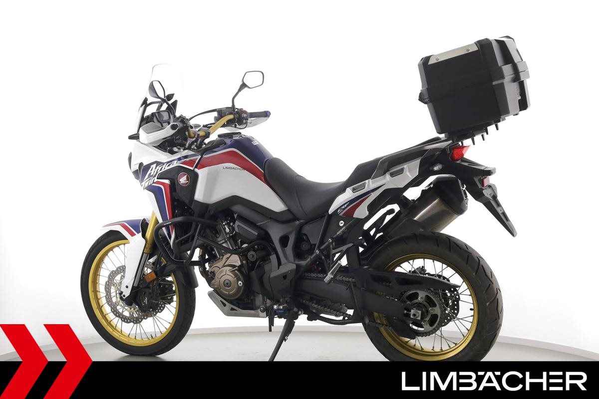 Eine scheckheftgepflegte Honda CRF 1000 L Africa Twin DCT in gepflegtem Zustand u.a. mit Touratech Komfort-Sitzbank sowie Honda-Topcase gleichschliessend.