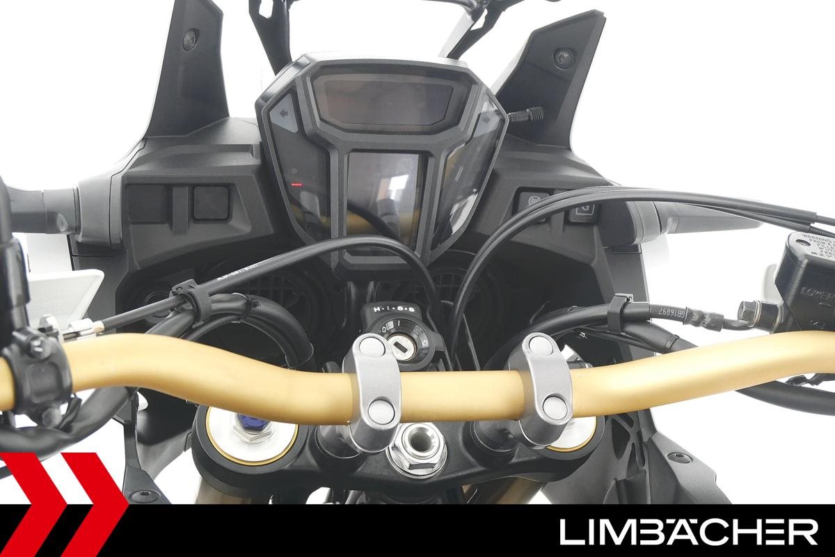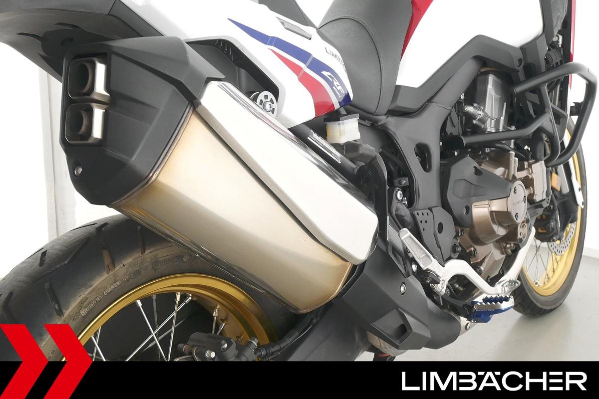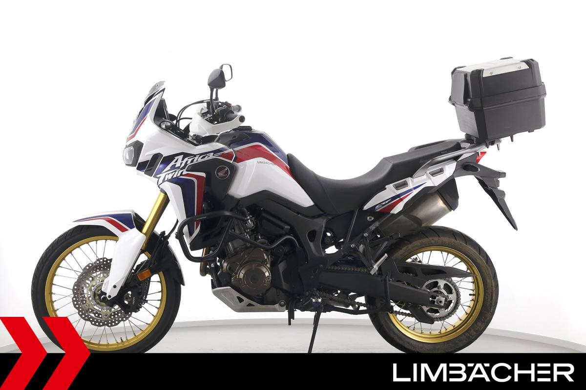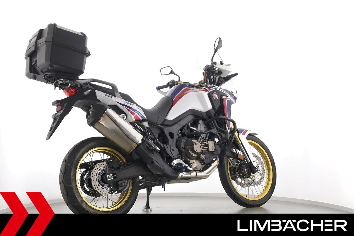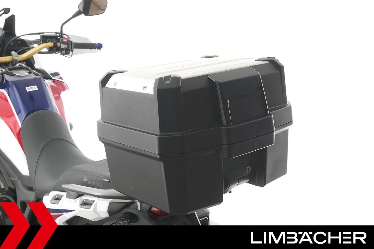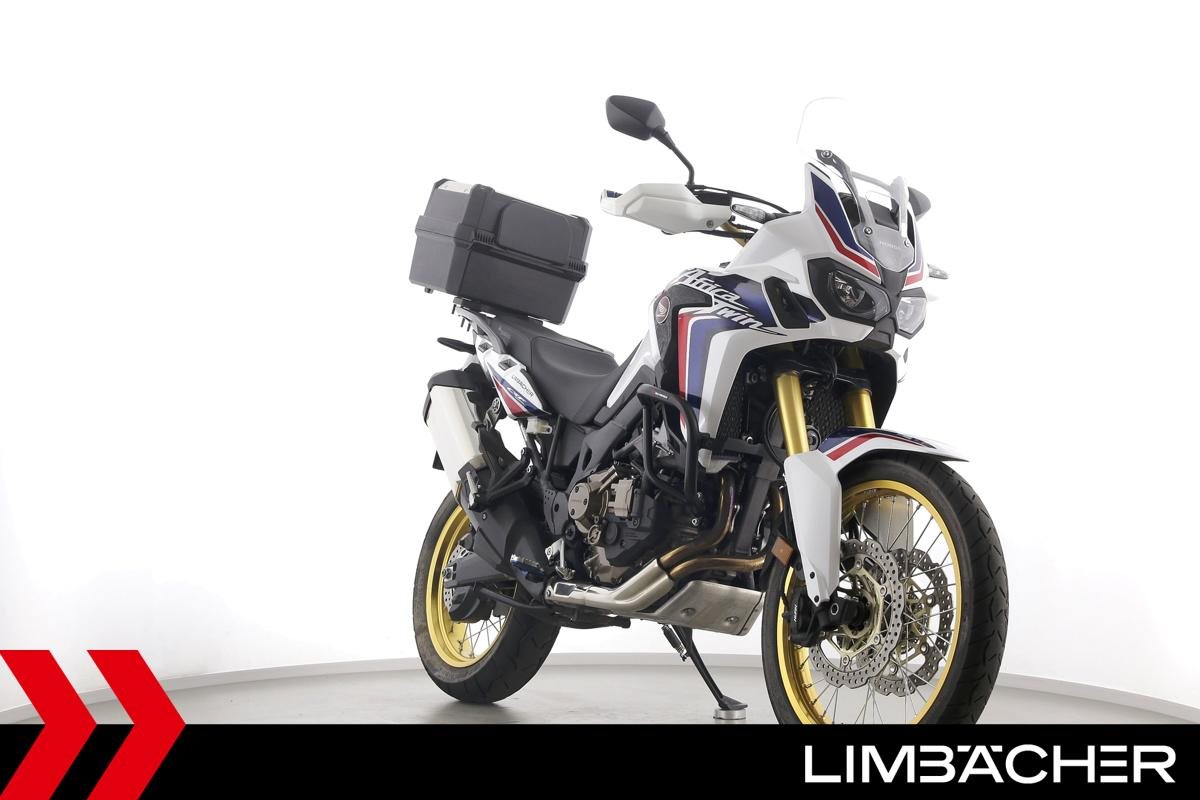 Eine scheckheftgepflegte Honda CRF 1000 L Africa Twin DCT in gepflegtem Zustand u.a. mit Touratech Komfort-Sitzbank sowie Honda-Topcase gleichschliessend.