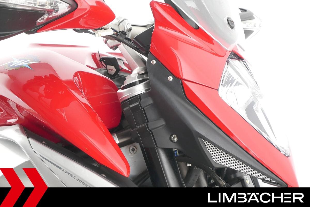 Eine MV Agusta Stradale 800 aus zweiter Hand in gepflegtem Zustand u.a. mit Softkoffer-System und Quickshifter.