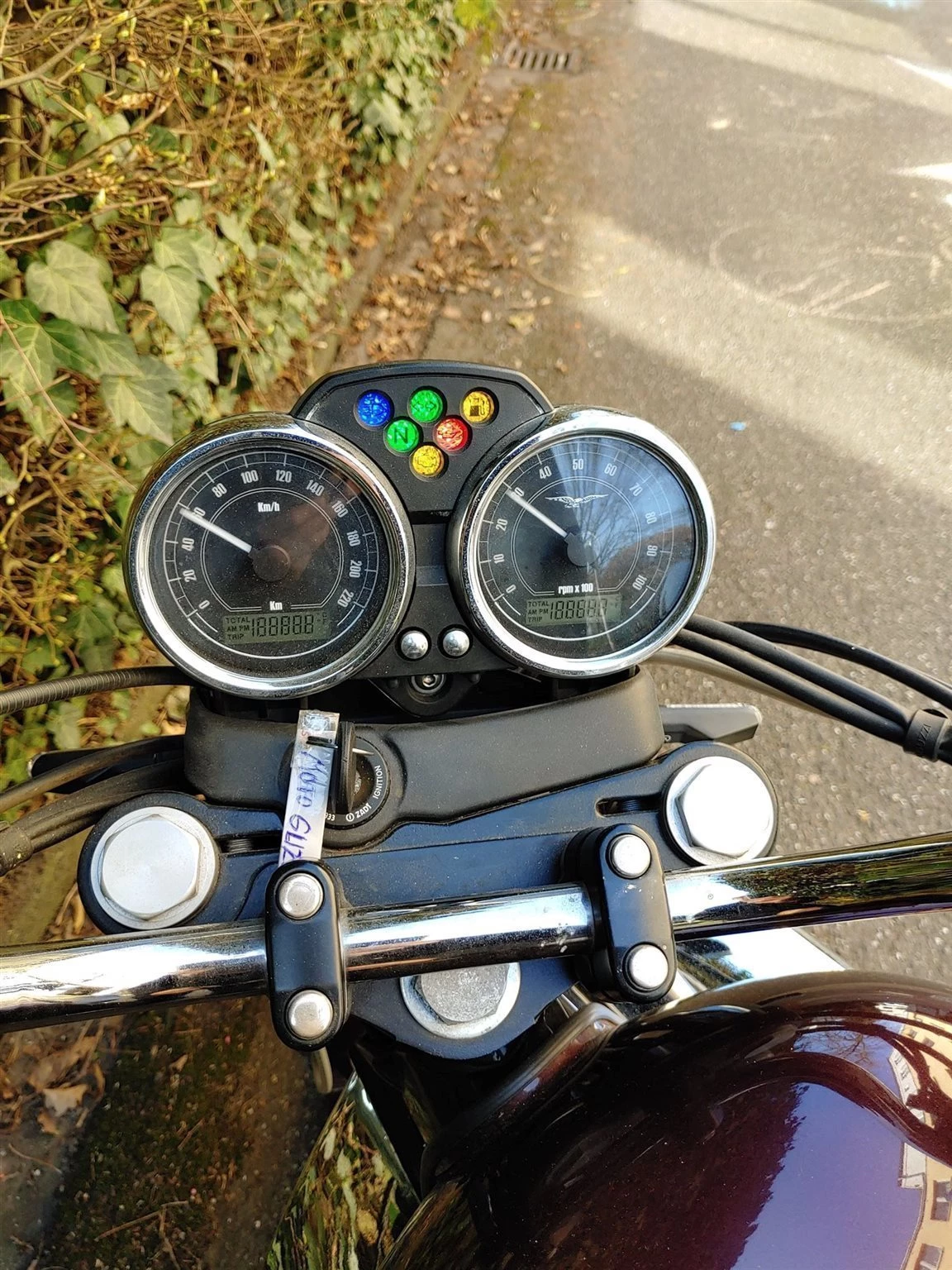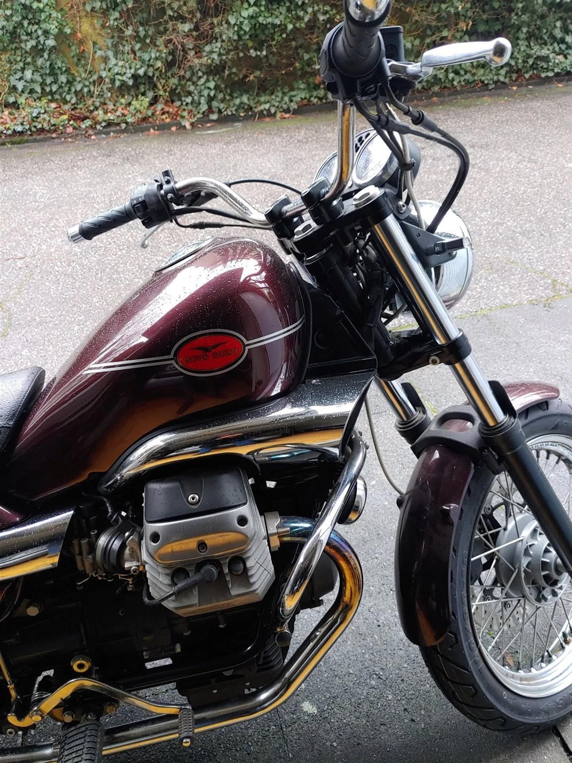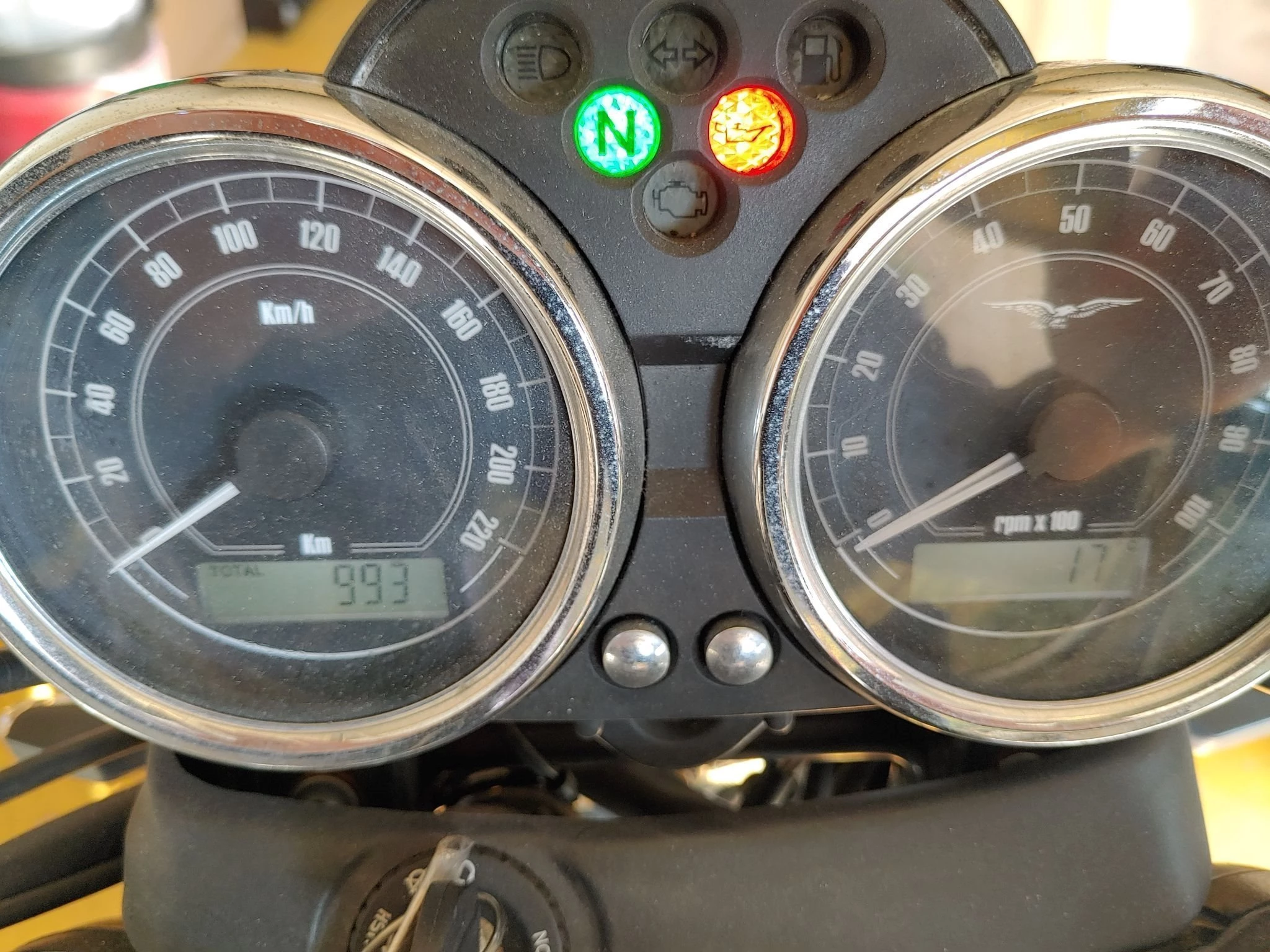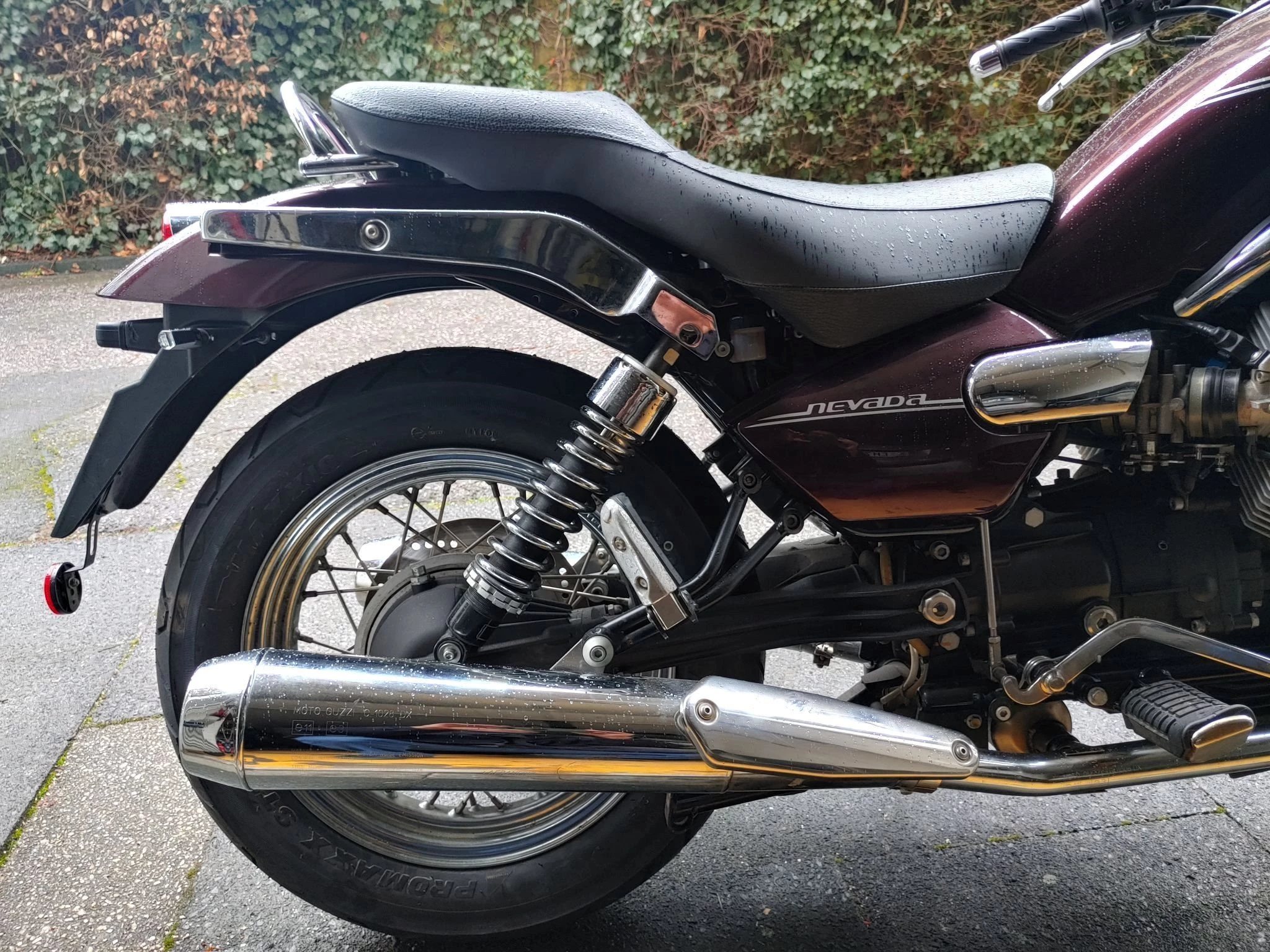 Moto Guzzi Nevada 750 Baujahr 2010 mit nur 993 km! Die Wartungsarbeiten wurden von mir, (20 Jahre als Kfz Mechaniker/Meister bei VW/Audi), durchgefuhrt: Neue Batterie, Motoröl, Ölfilter, Getriebeöl, Kardanöl ,Bremsflüssigkeit usw. Am Profil der originalen Reifen, Foto Nr. 7 ( siehe DOT Woche 47 Jahr 2008 ), erkennt man sofort, dass das Reifenprofil wie neu ist (nur 993 km gefahren )! Kenner erkennen das sofort! Der Motor springt sofort an und läuft wie ein Uhrwerk!!