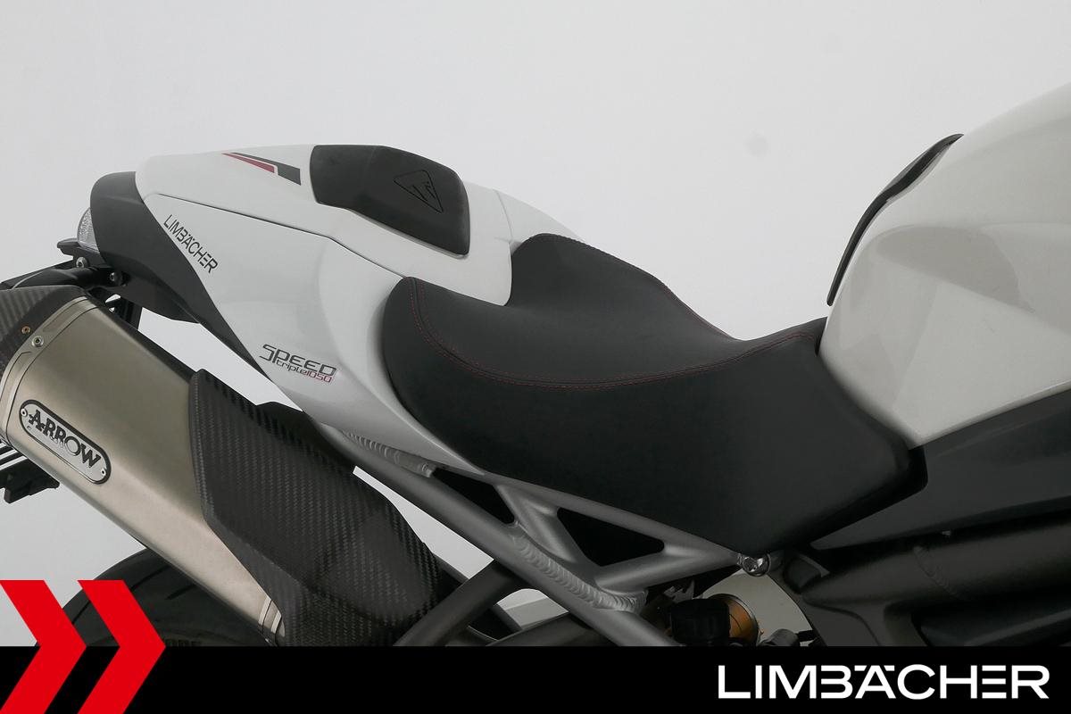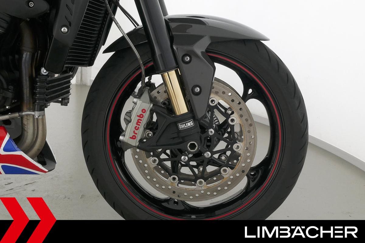 Eine scheckheftgepflegte Triumph Speed Triple 1050 RS in gepflegtem Zustand u.a. mit Öhlins-Fahrwerk und Arrow-Endschalldämpger.
