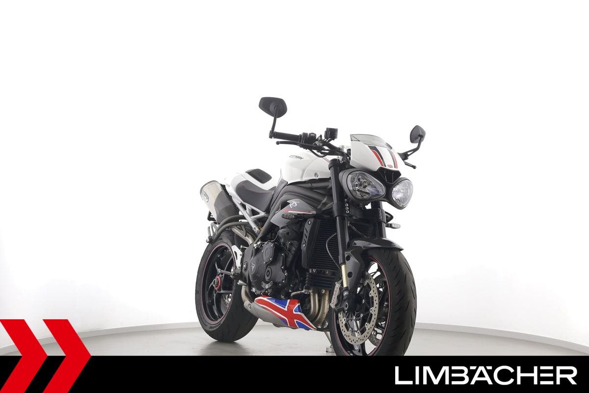 Eine scheckheftgepflegte Triumph Speed Triple 1050 RS in gepflegtem Zustand u.a. mit Öhlins-Fahrwerk und Arrow-Endschalldämpger.