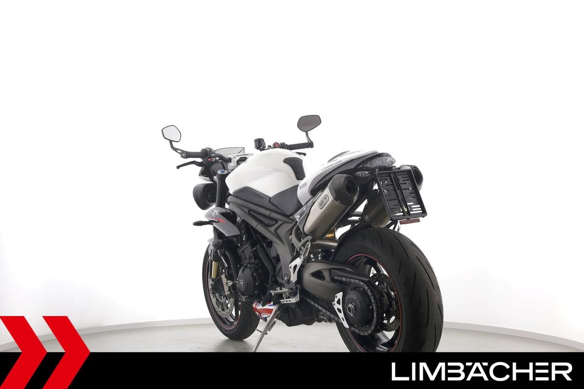 Eine scheckheftgepflegte Triumph Speed Triple 1050 RS in gepflegtem Zustand u.a. mit Öhlins-Fahrwerk und Arrow-Endschalldämpger.
