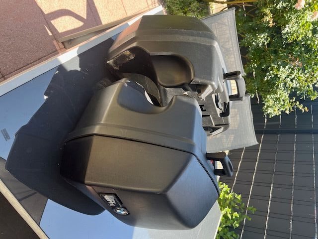2 original BMW-Tourenkoffer, Halterung für Navi/Smartphone, Steckdose.