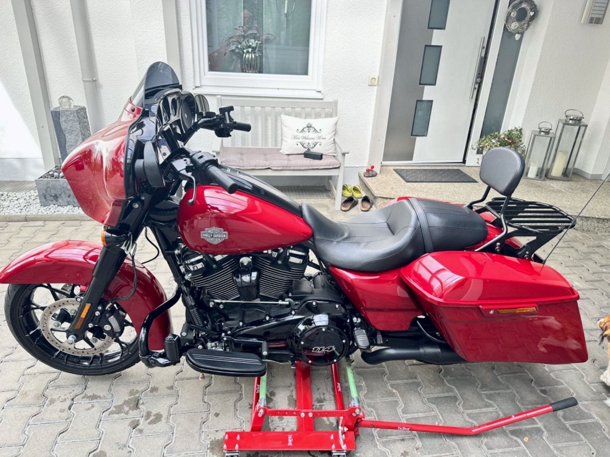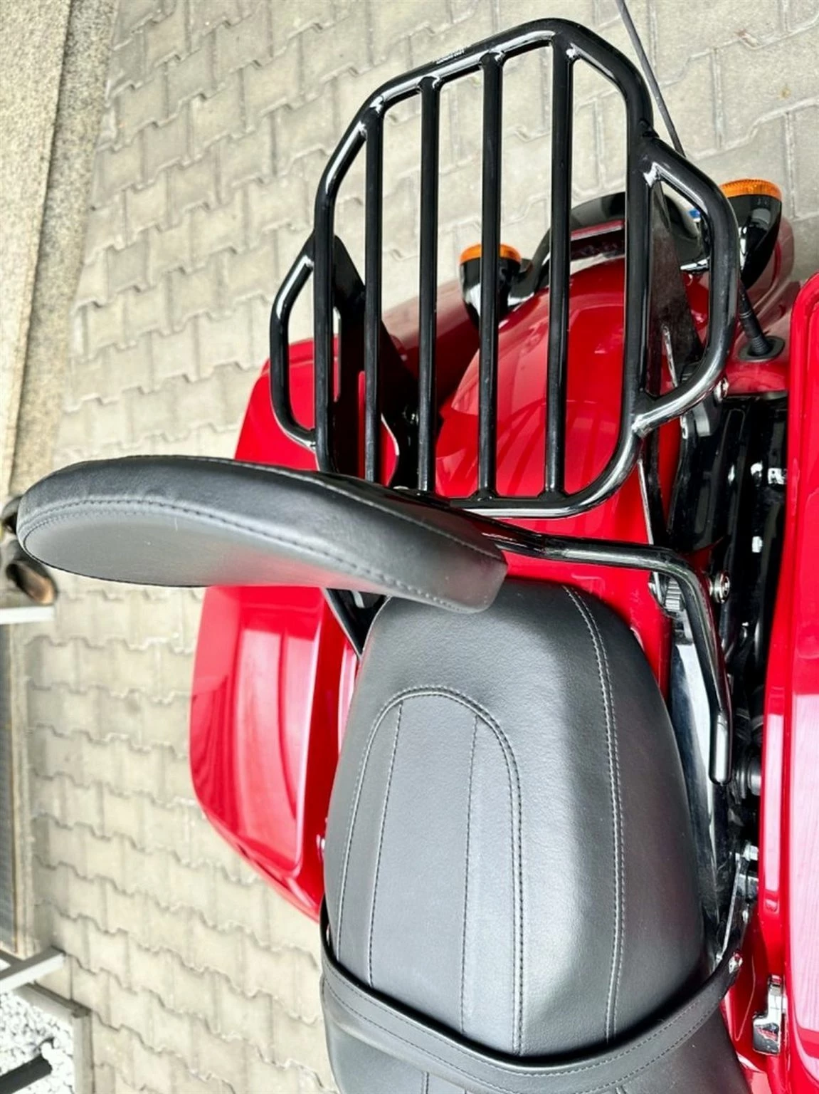 Folgendes Zubehör wurde montiert: Sissybar, Gepäckträger, Highwaypegs, Handyhalter, Fersenschaltwippe, Ösen für Verladegurte.