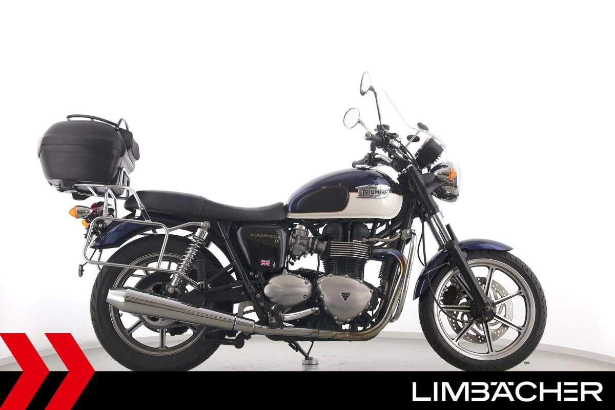 Eine Triumph Bonneville T100 SE aus zweiter Hand in gepflegtem Zustand u.a. mit Hepco & Becker-Sturzbügel und Hepco & Becker-Topcase.