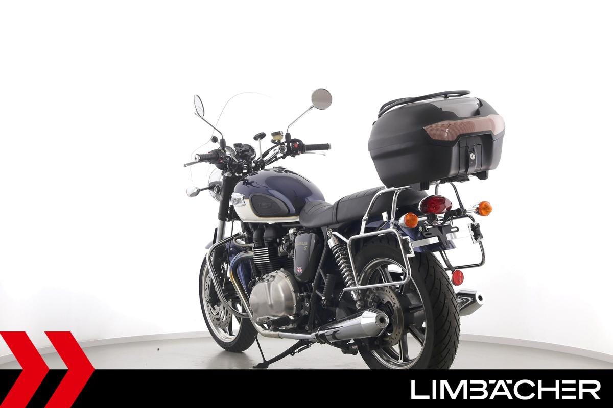 Eine Triumph Bonneville T100 SE aus zweiter Hand in gepflegtem Zustand u.a. mit Hepco & Becker-Sturzbügel und Hepco & Becker-Topcase.