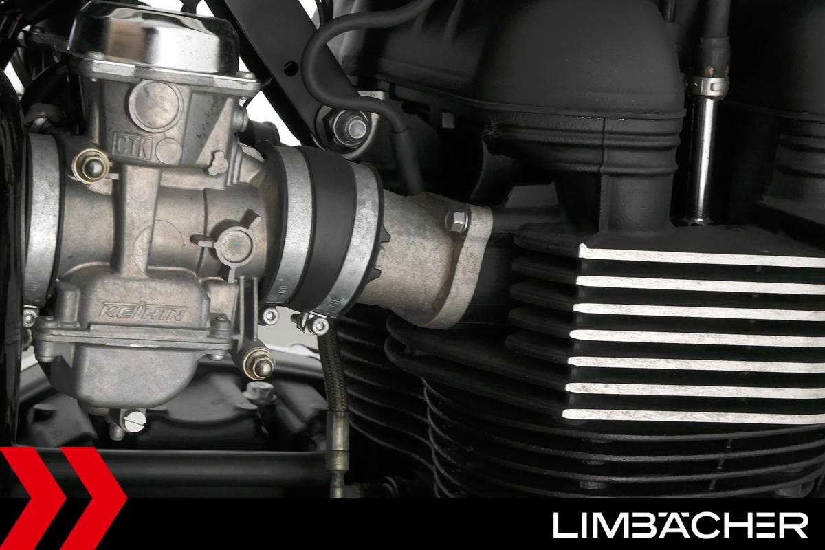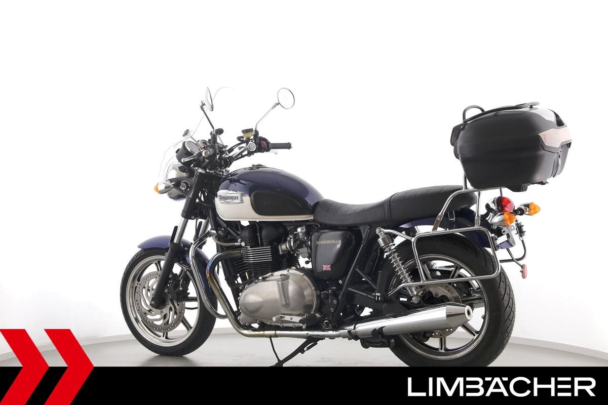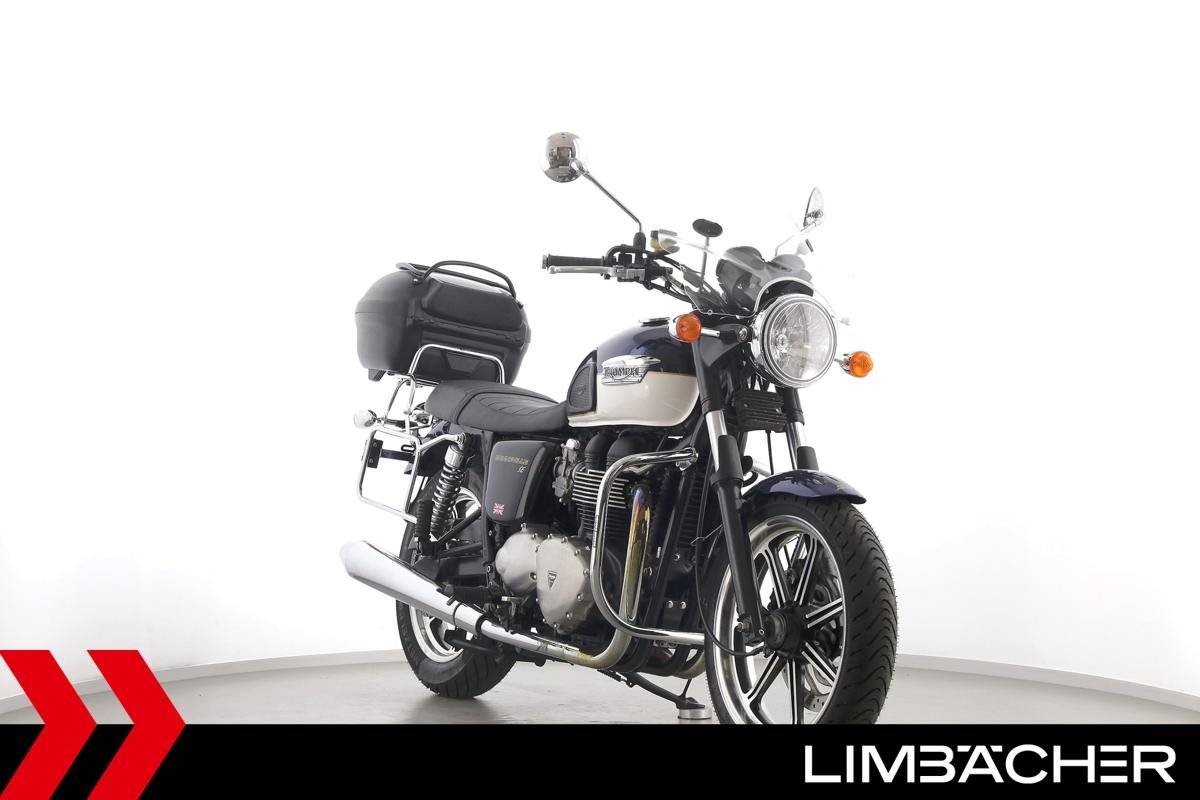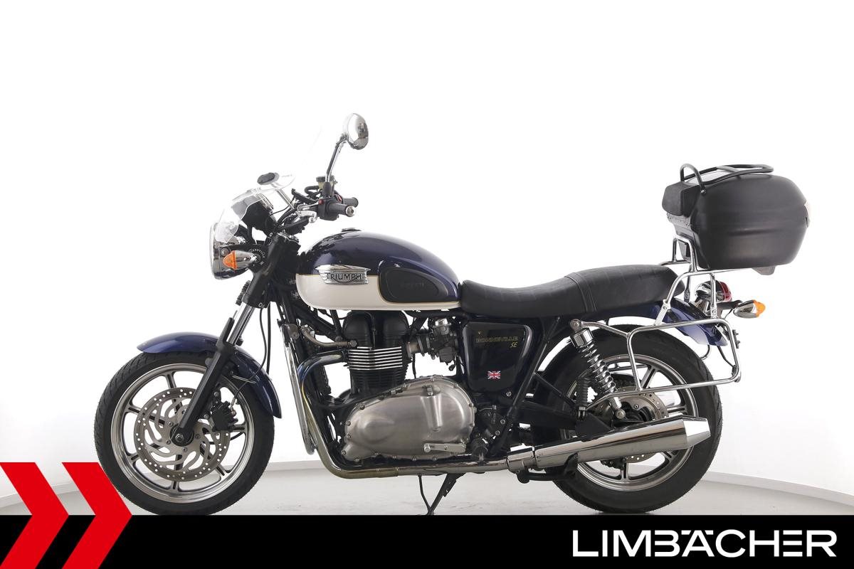 Eine Triumph Bonneville T100 SE aus zweiter Hand in gepflegtem Zustand u.a. mit Hepco & Becker-Sturzbügel und Hepco & Becker-Topcase.