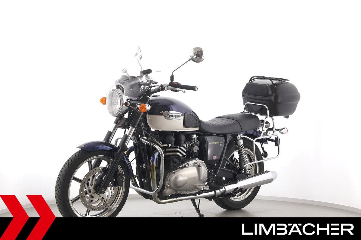 Eine Triumph Bonneville T100 SE aus zweiter Hand in gepflegtem Zustand u.a. mit Hepco & Becker-Sturzbügel und Hepco & Becker-Topcase.