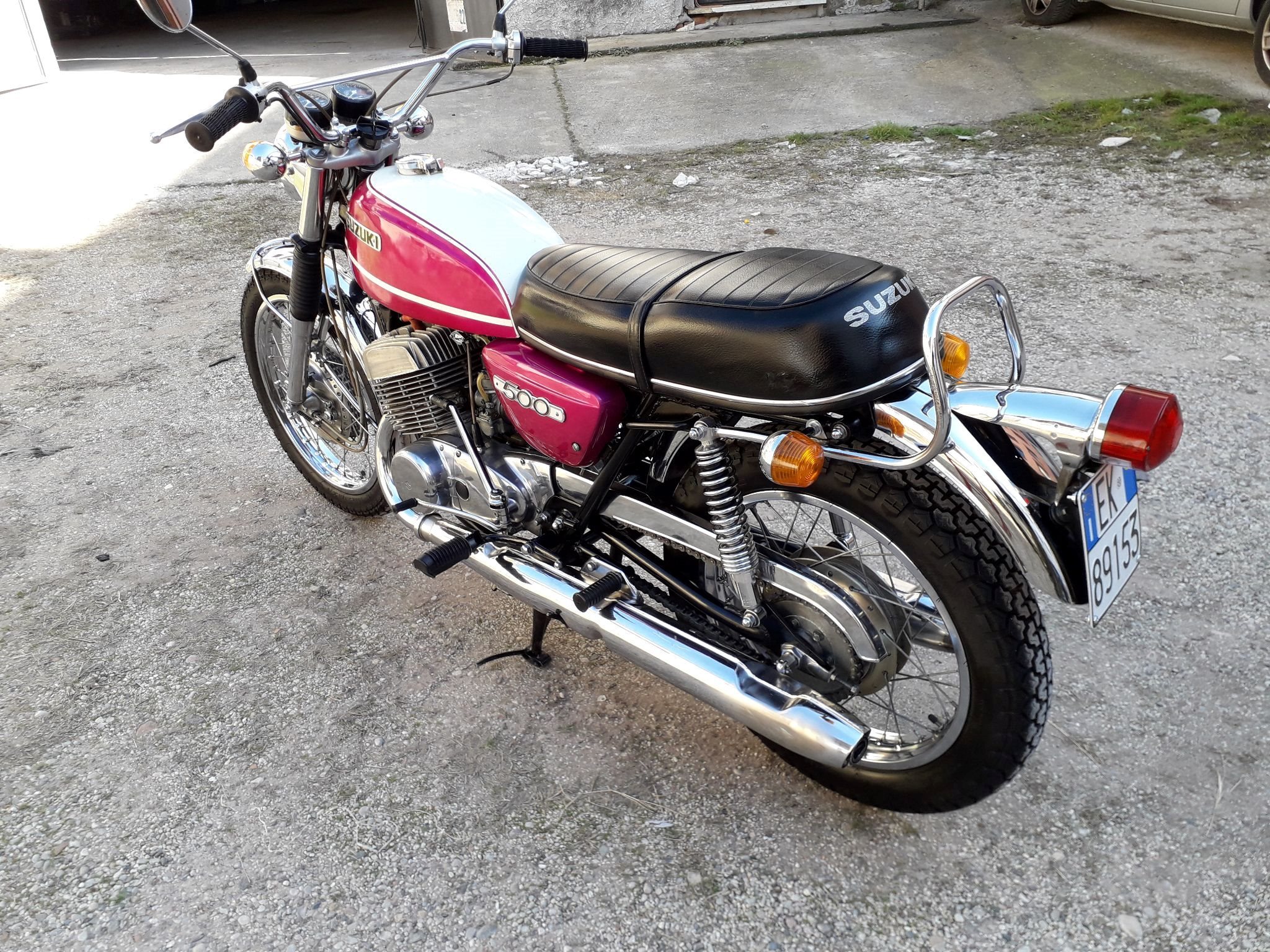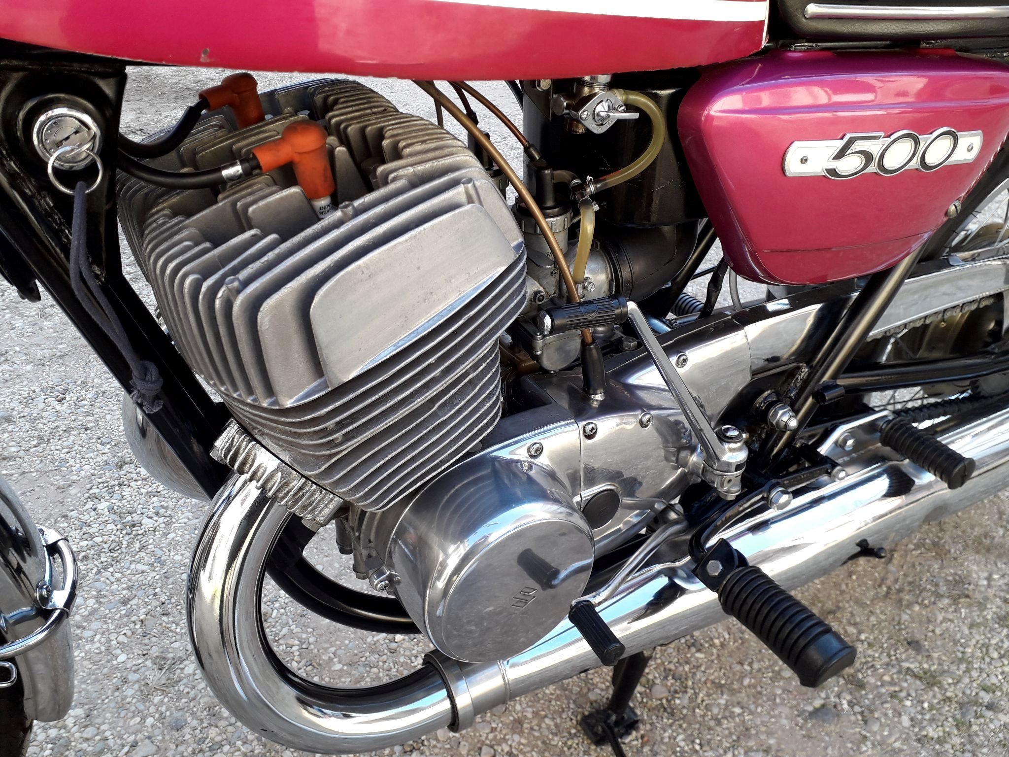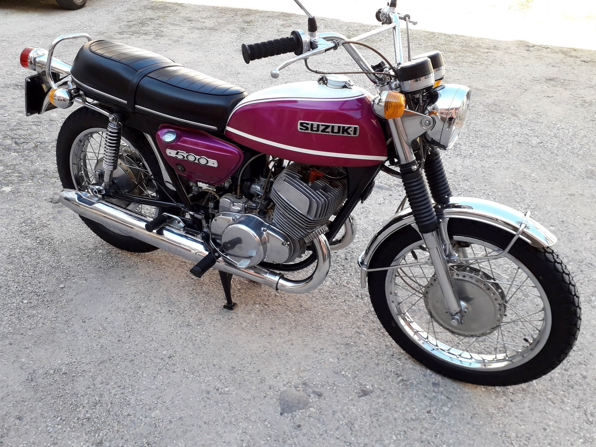 Suzki T 500 Titan Bj.1972, orig. unrestaurierter Zustand, O-Lack, tolle Farbe läuft-bremst-schaltet-Elektrik funktioniert usw., Abholung in Italien bei Verona.
