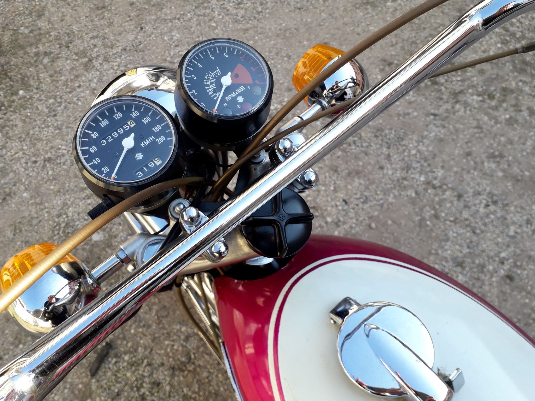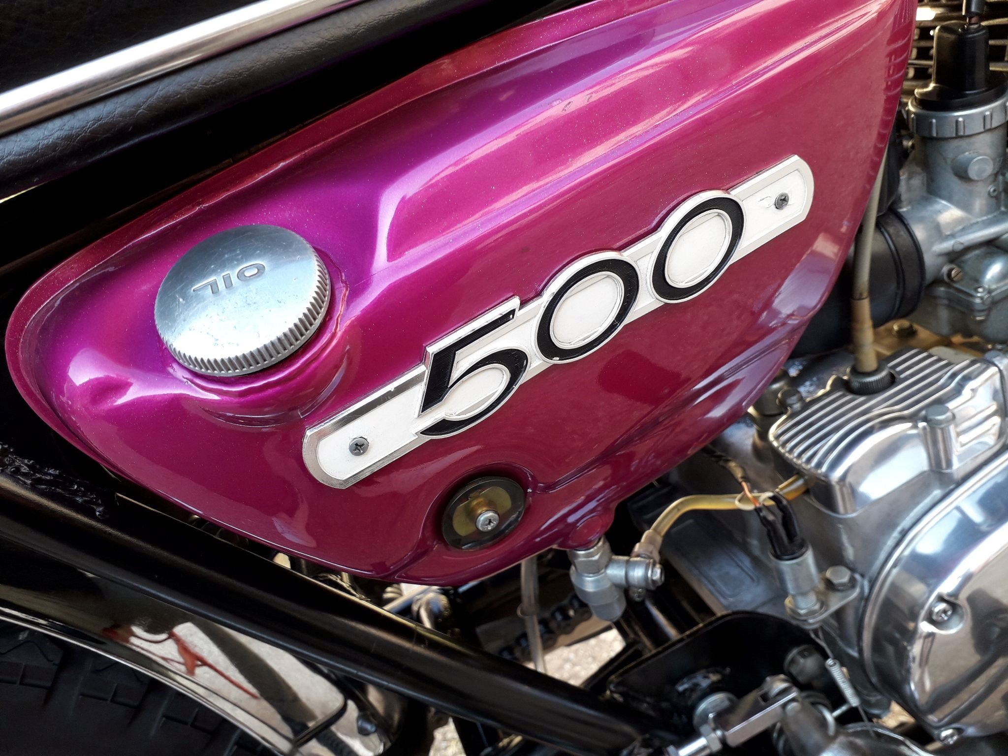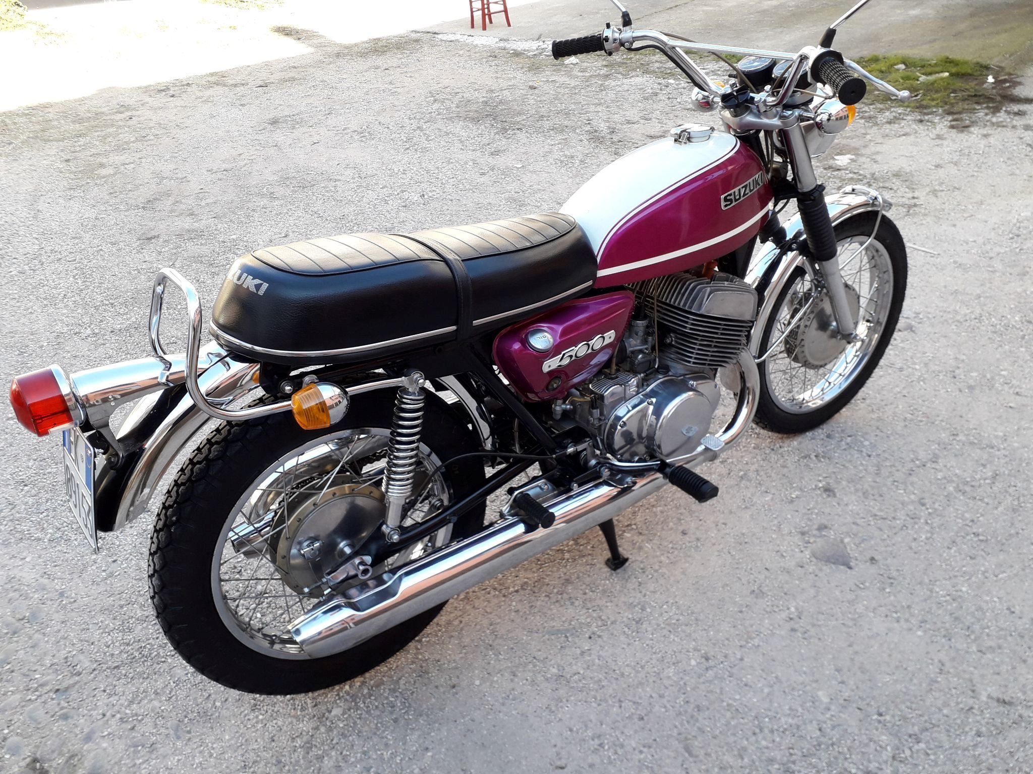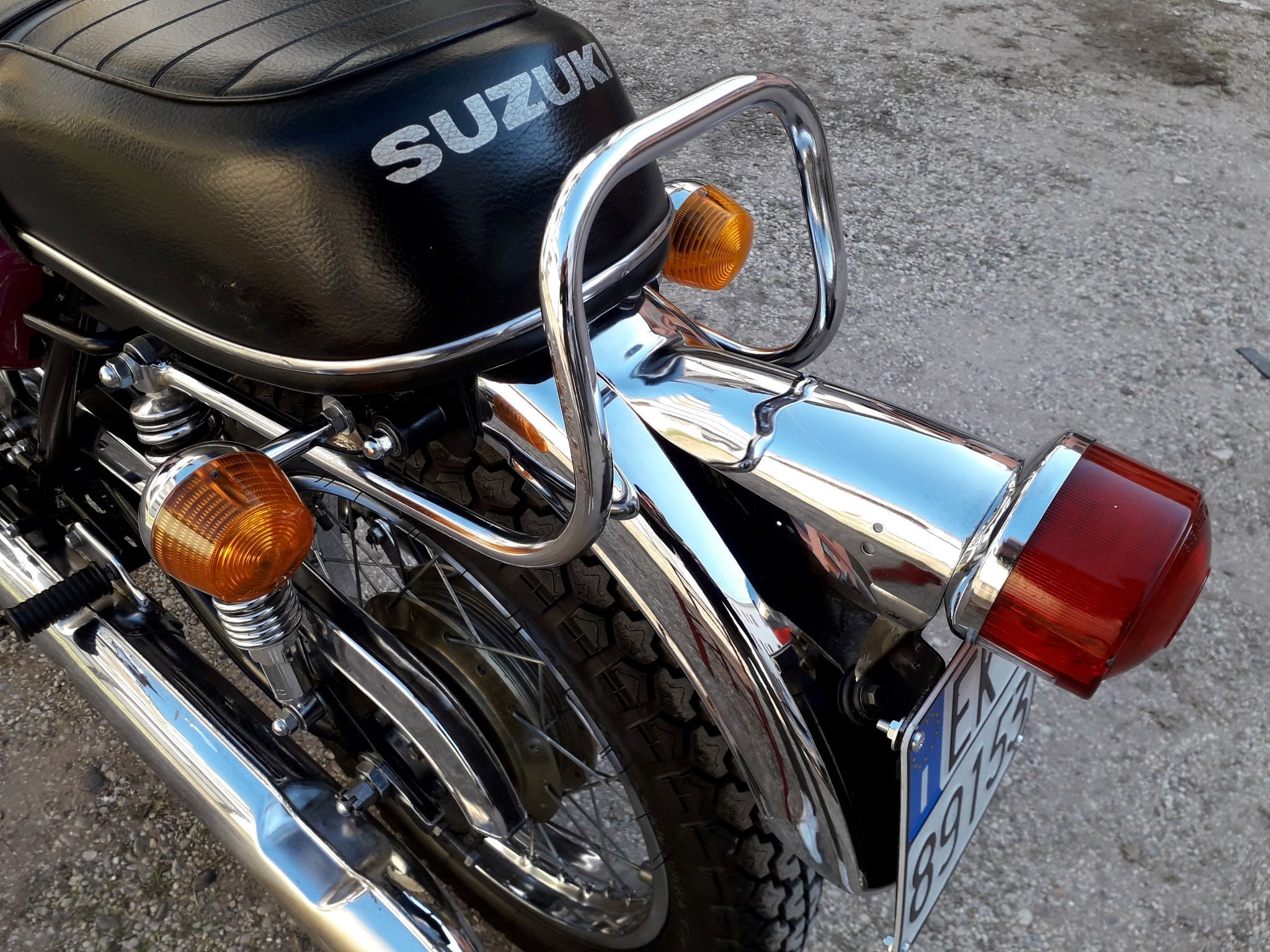 Suzki T 500 Titan Bj.1972, orig. unrestaurierter Zustand, O-Lack, tolle Farbe läuft-bremst-schaltet-Elektrik funktioniert usw., Abholung in Italien bei Verona.