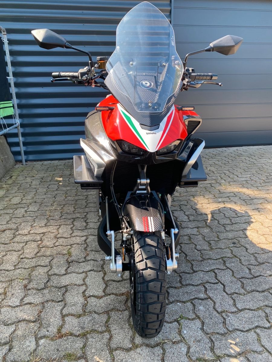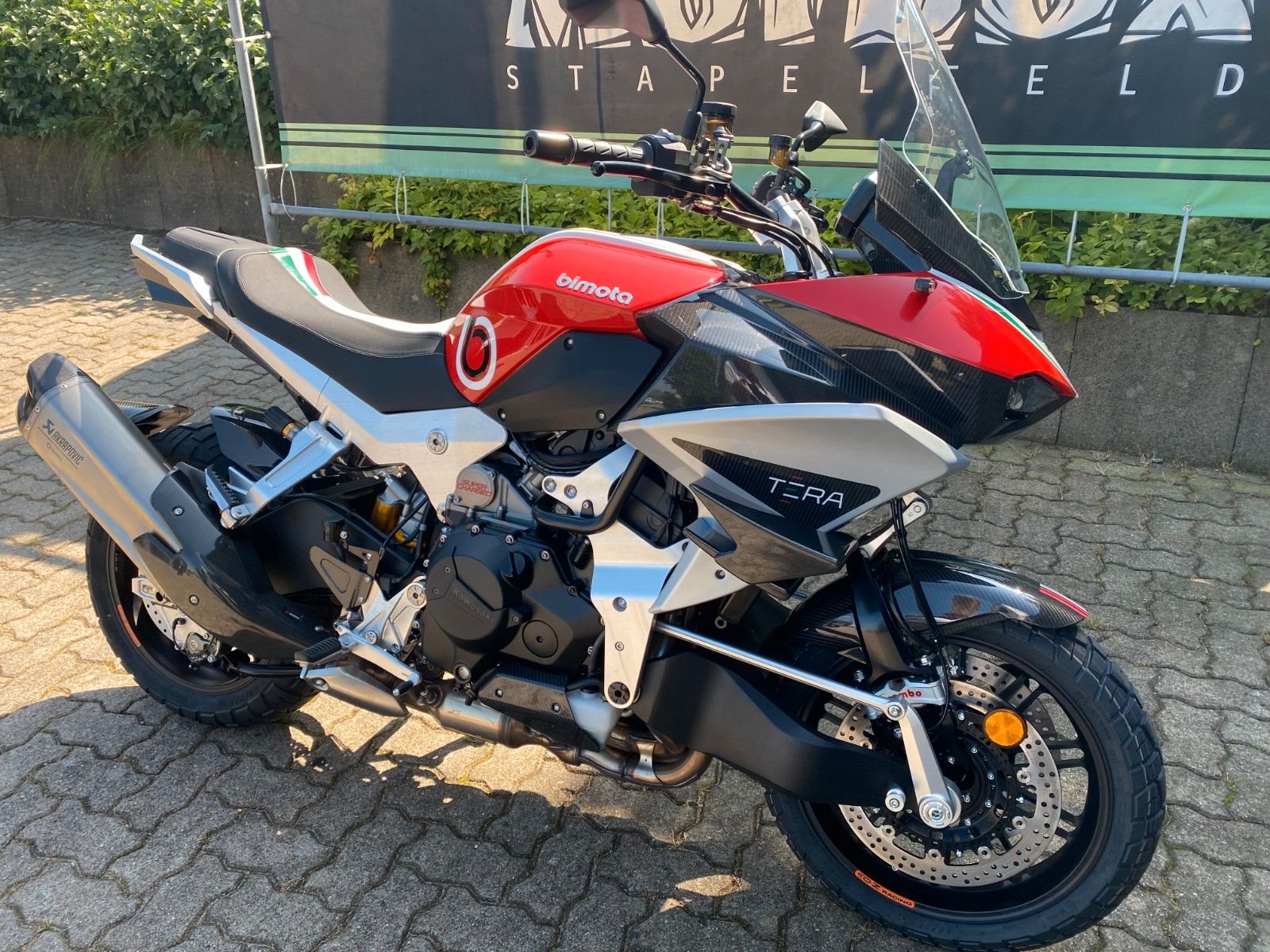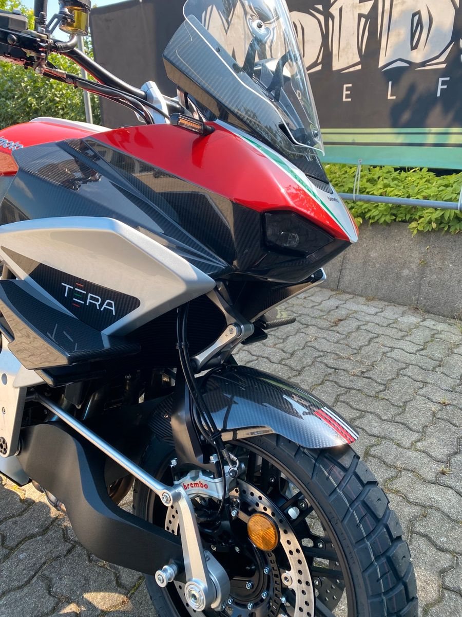 Mit der Tesi H2 TERA hat bimota ein Crossover-Motorrad geschaffen, das mit einer neuen patentierten Radnabenlenkung ausgestattet ist. Auch dadurch wird eine optimale Gewichtsverteilung von 52,5 % vorne zu 47,5 % hinten möglich. Aktuellste Assistenzsysteme sorgen dafür, dass die immensen Leistungswerte sicher und sinnvoll umgesetzt werden. Schließlich liefert das Einliter-Kompressortriebwerk der Tesi H2 TERA satte 147,1 kW (200 PS). Eine entsprechend hervorragende Verarbeitungsqualität darf bei bimota selbstverständlich erwartet werden.