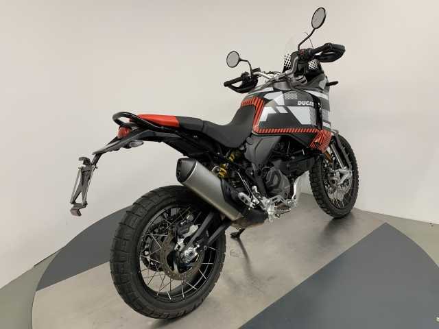Ducati DesertX aus scheckheftgepflegter erster Hand, ausgestattet mit Riding Modes, Power Modes, Ducati Wheelie Control, Engine Brake Control, Ducati Quick Shift Up/Down, Tempomat, Voll-LED-Beleuchtungssystem, Daytime Running Light, Ducati Brake Light, USB- und 12V-Steckdose, automatische Blinkerrückstellung, Lenkungsdämpfer und Lithium-Ionen-Batterie.