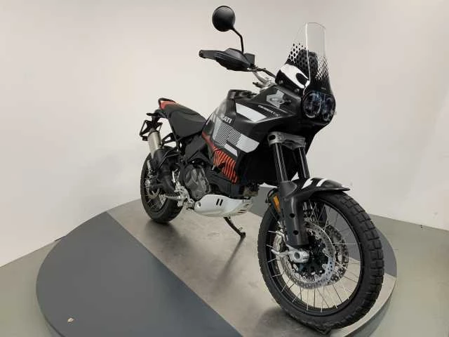 Ducati DesertX aus scheckheftgepflegter erster Hand, ausgestattet mit Riding Modes, Power Modes, Ducati Wheelie Control, Engine Brake Control, Ducati Quick Shift Up/Down, Tempomat, Voll-LED-Beleuchtungssystem, Daytime Running Light, Ducati Brake Light, USB- und 12V-Steckdose, automatische Blinkerrückstellung, Lenkungsdämpfer und Lithium-Ionen-Batterie.