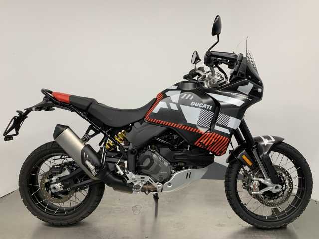 Ducati DesertX aus scheckheftgepflegter erster Hand, ausgestattet mit Riding Modes, Power Modes, Ducati Wheelie Control, Engine Brake Control, Ducati Quick Shift Up/Down, Tempomat, Voll-LED-Beleuchtungssystem, Daytime Running Light, Ducati Brake Light, USB- und 12V-Steckdose, automatische Blinkerrückstellung, Lenkungsdämpfer und Lithium-Ionen-Batterie.