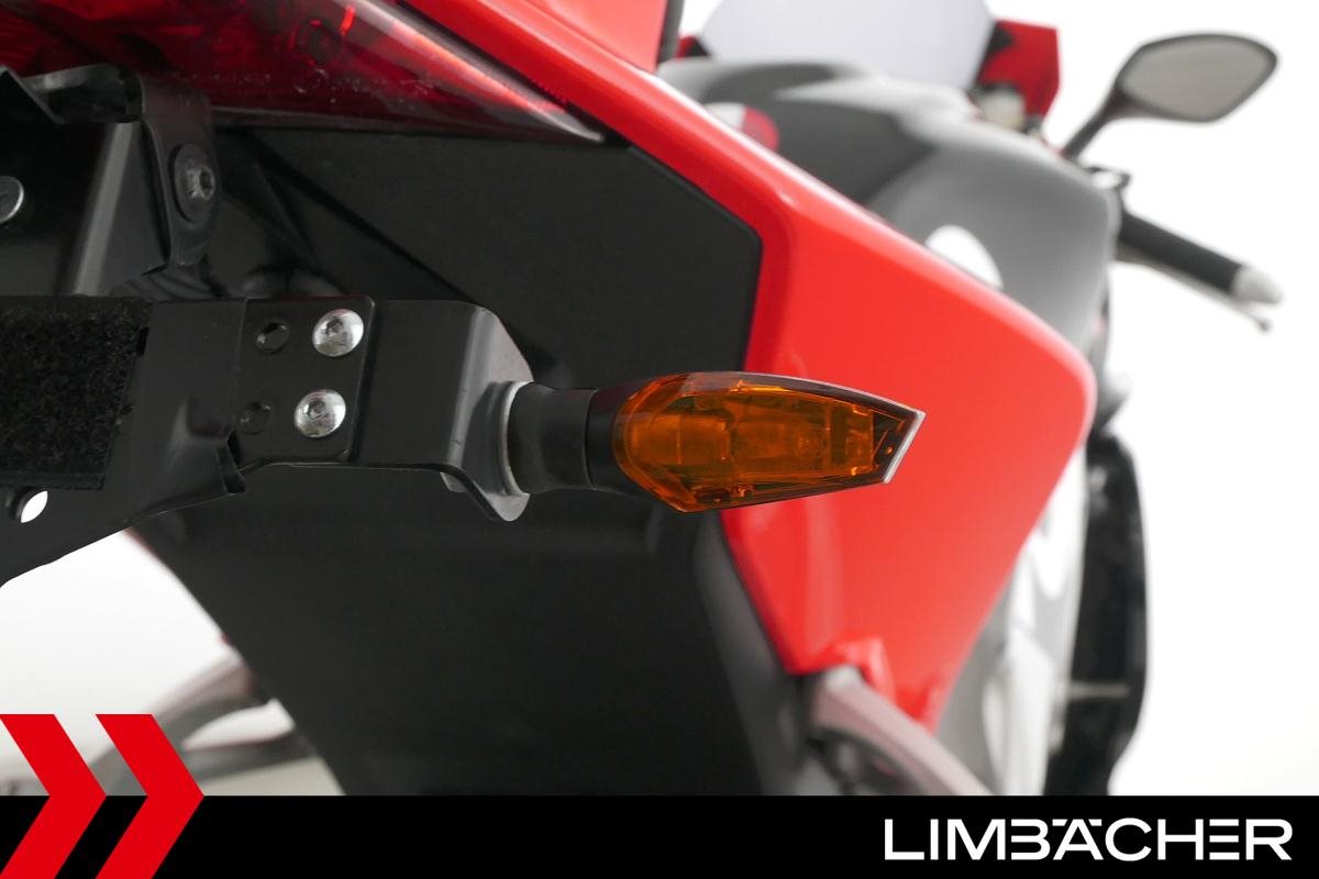 Eine Aprilia RSV 4 Factory in gepflegtem Zustand u.a. mit HP-Corse-Auspuff mit Carbon und e-Nr sowie Öhlins-Fahrwerk.