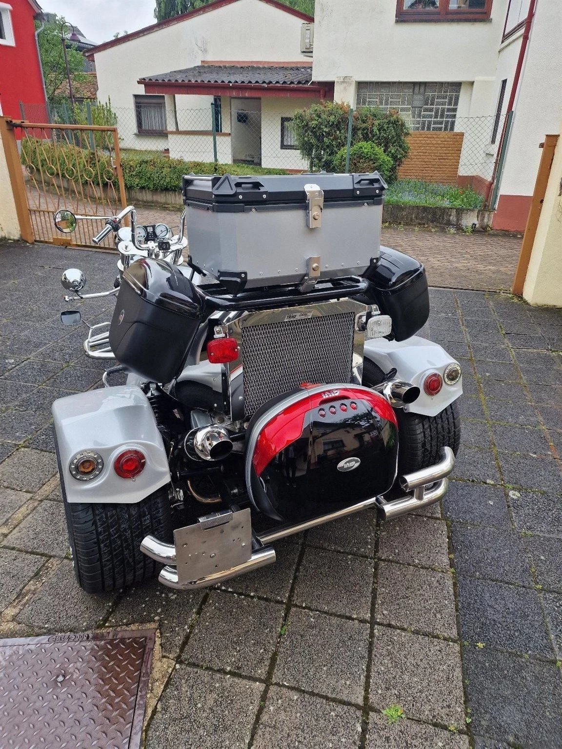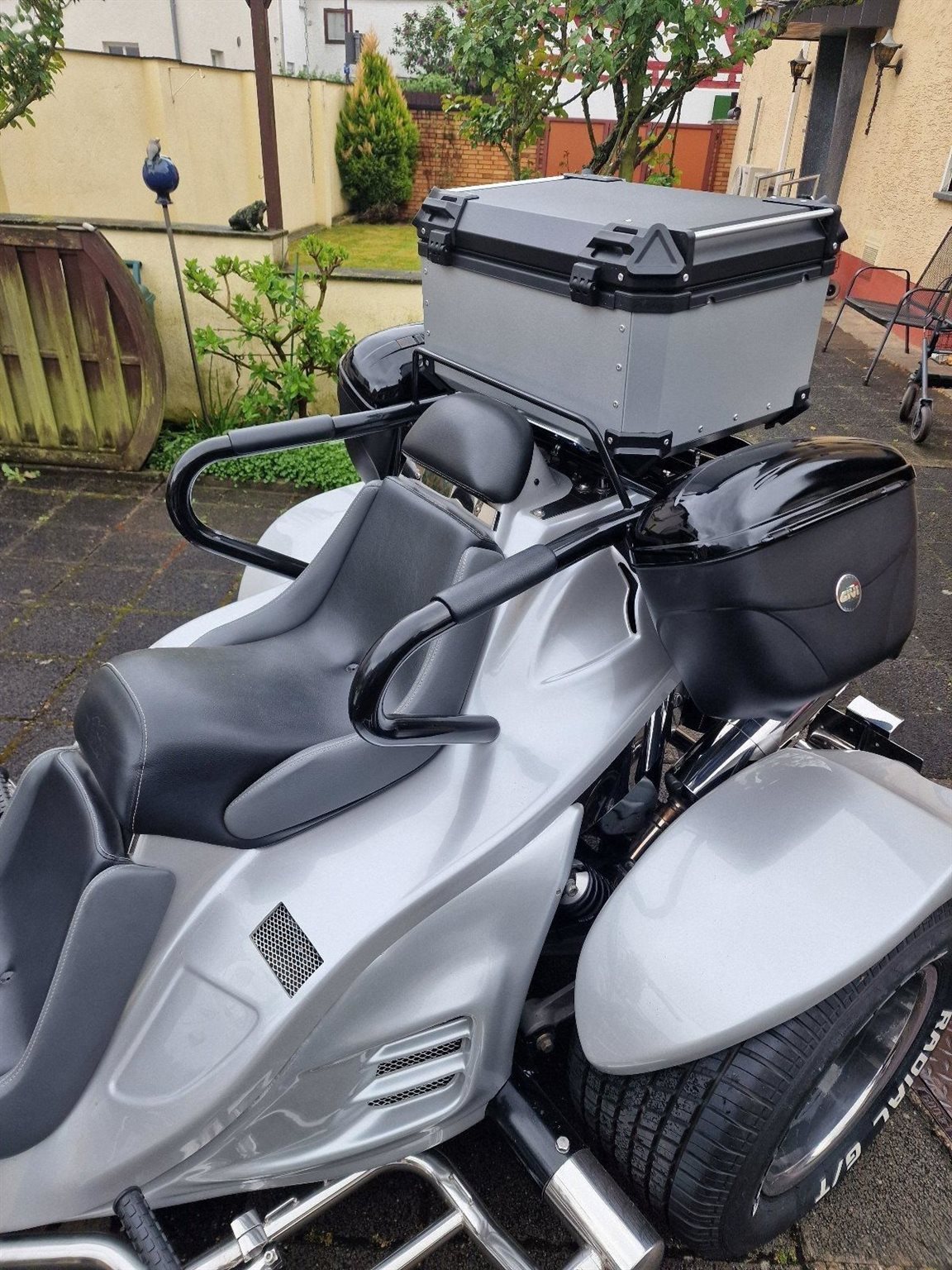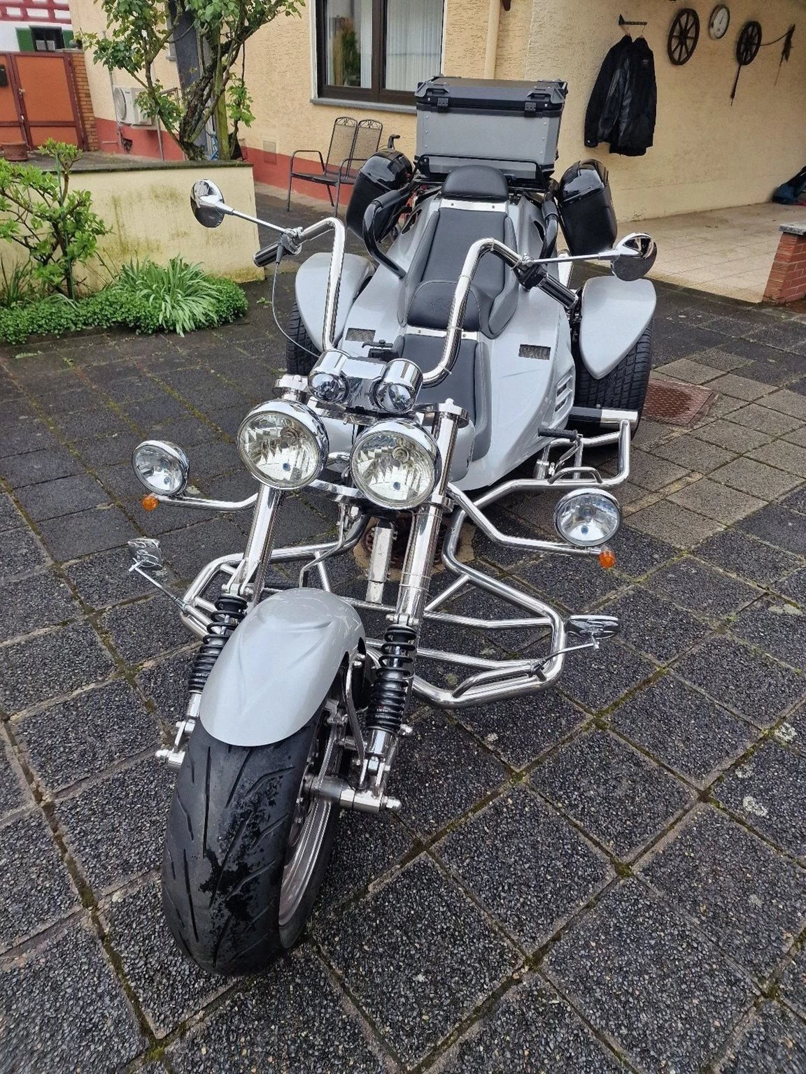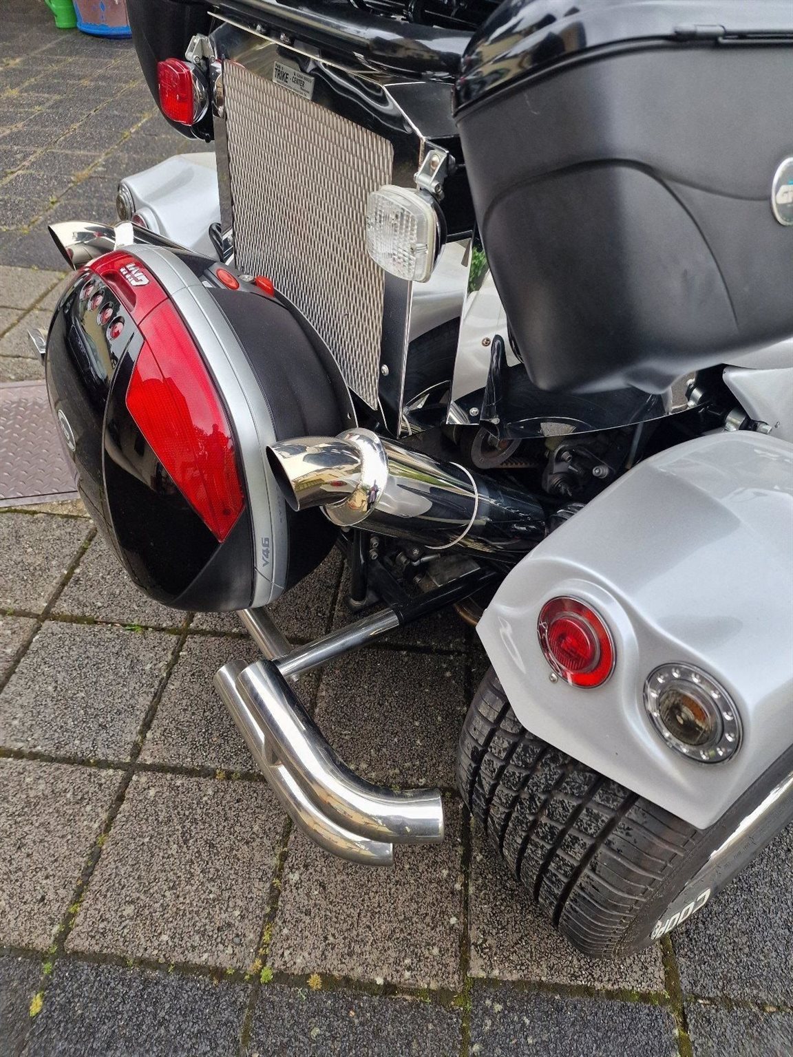 Ein sehr gepflegtes Boom Trike V 2 Automatik, Top Zustand, Vorderreifen 200/50 ZR17 von 08.2023, Hinterreifen 295/50ZR17 von 06.2024. Vorderradbremse neu 04.2024. Batterie neu 2024, Ölfilter-Ölwechsel und Zündkerzen 09.2023, 4xTopcase, Motor: Aprilia NA 850 Mana GT, super Sound, 2019 umgebaut auf Zahnriemen, Benziner, Farbe: Silber, Antriebsart: Riemen, Bremspedal verstellbar.