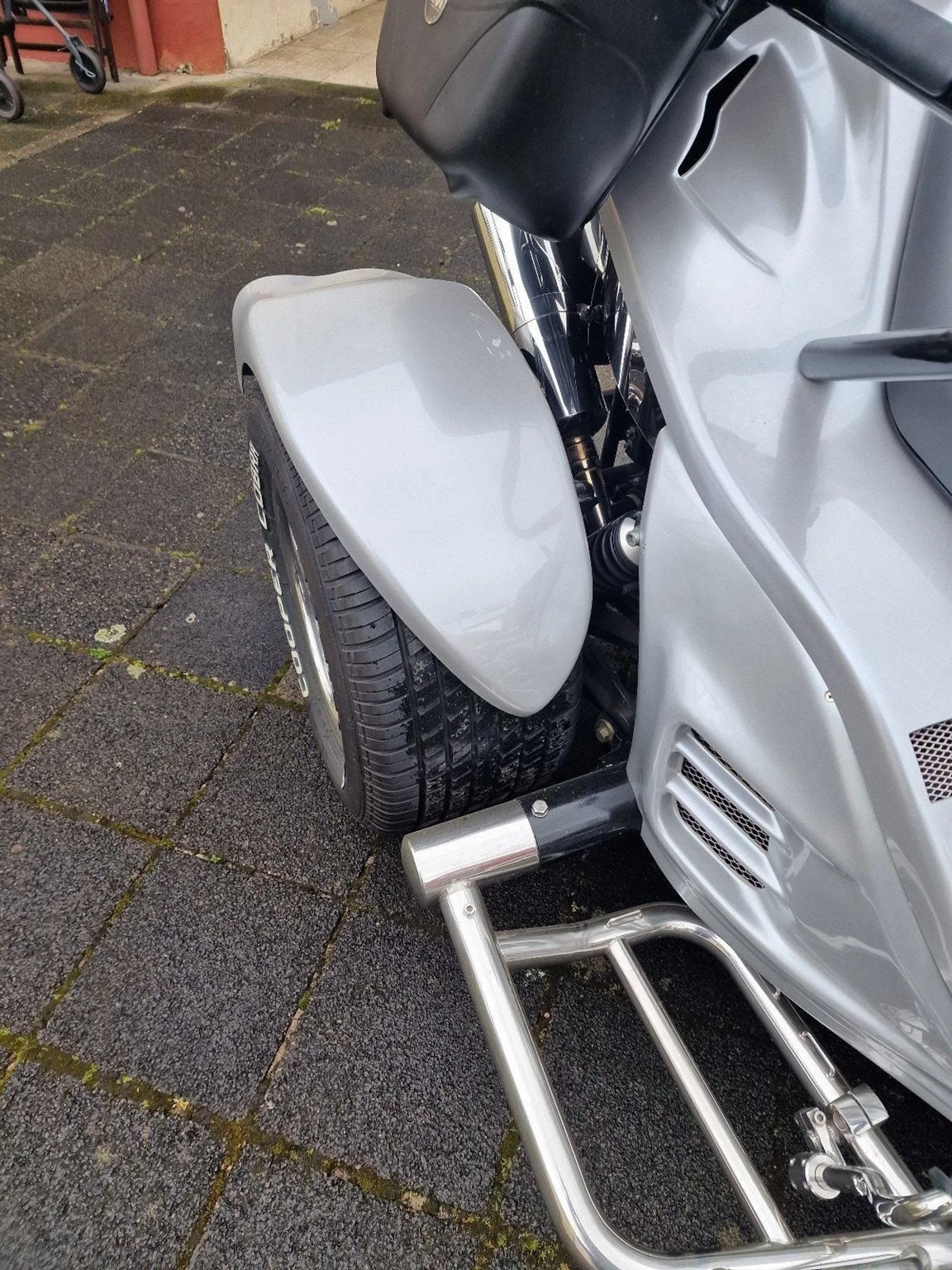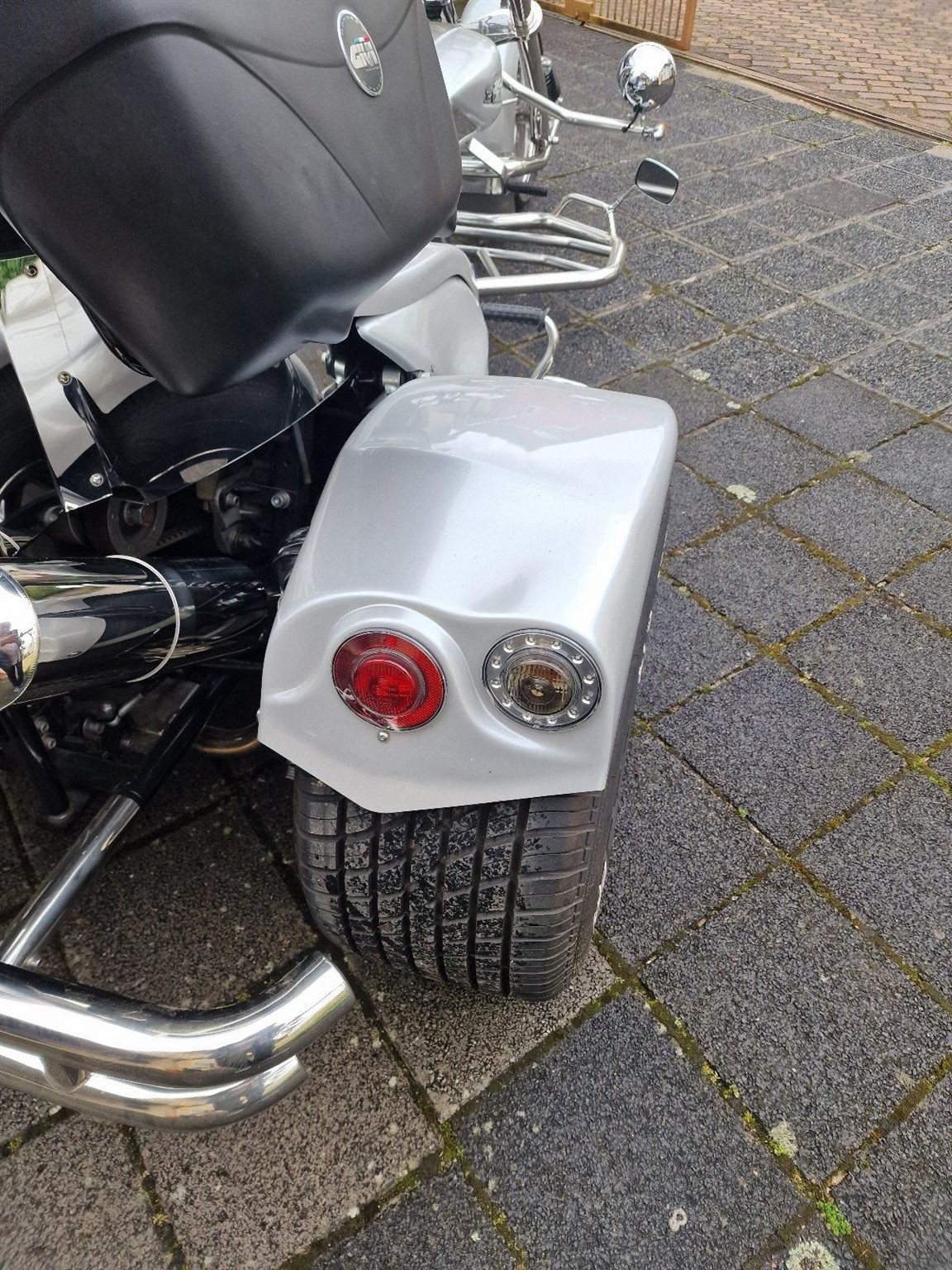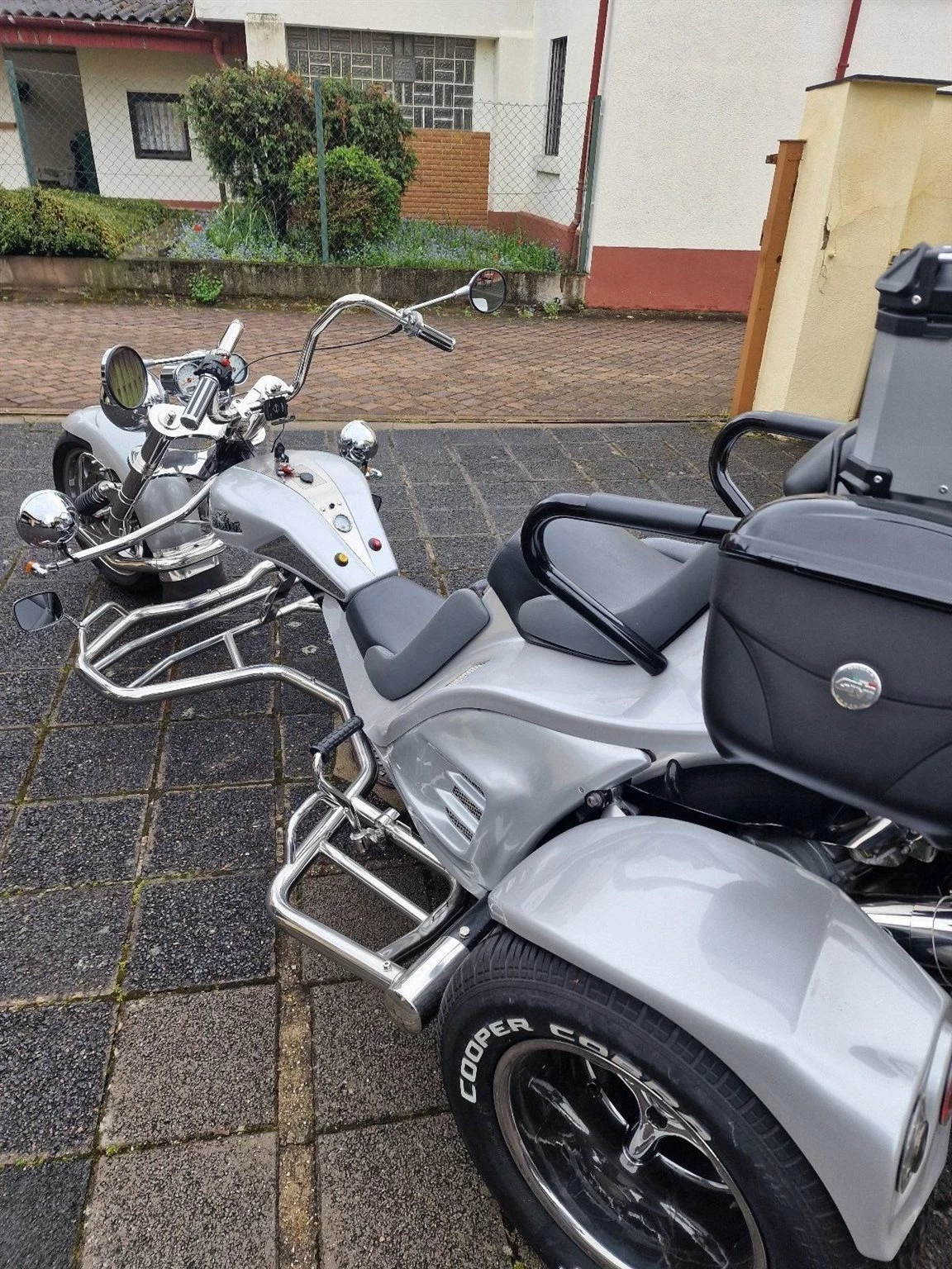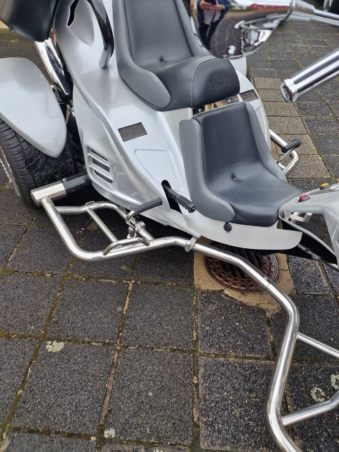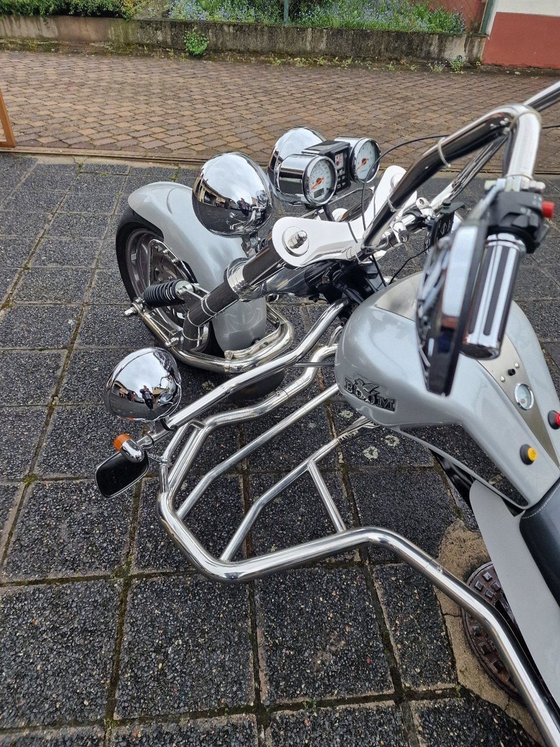Ein sehr gepflegtes Boom Trike V 2 Automatik, Top Zustand, Vorderreifen 200/50 ZR17 von 08.2023, Hinterreifen 295/50ZR17 von 06.2024. Vorderradbremse neu 04.2024. Batterie neu 2024, Ölfilter-Ölwechsel und Zündkerzen 09.2023, 4xTopcase, Motor: Aprilia NA 850 Mana GT, super Sound, 2019 umgebaut auf Zahnriemen, Benziner, Farbe: Silber, Antriebsart: Riemen, Bremspedal verstellbar.