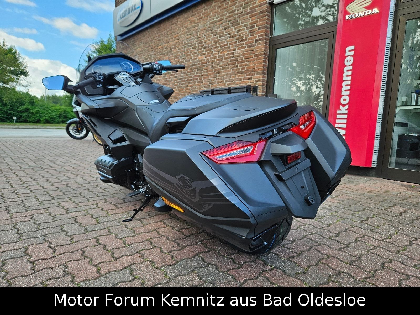 Gold Wing 50th Anniversary Seit der Einführung der ursprünglichen Gold Wing GL1000 im Jahr 1975 sind jetzt 50 Jahre vergangen - Grund zu feiern. Unser legendäres Touring-Flaggschiff hat die Motorradwelt nachhaltig verändert. 2025 stellen wir ein exklusives Modell zum 50-jährigen Jubiläum vor. Die Lackierung in Matt Ballistic Black und die besonderen Zierelemente feiern 50 Jahre dieses Kultmodells. Um diesen Anlass zu feiern, werden die ersten 1.833 Gold Wing 50th Anniversary Modelle, die in Europa verkauft werden, ein exklusives, limitiertes Miniaturmodell erhalten. Dieses hochwertige Sammlerstück, das 28 cm lang und 15 cm hoch ist, zeigt auf eindrucksvoll Weise die Entwicklung der Gold Wing, indem auf einer Seite das ursprüngliche Design und auf der anderen das aktuelle Modell dargestellt wird. Es ist ein einzigartiges Stück Geschichte, das man mit Stolz sowohl in der Garage als auch auf dem Tisch präsentieren kann.