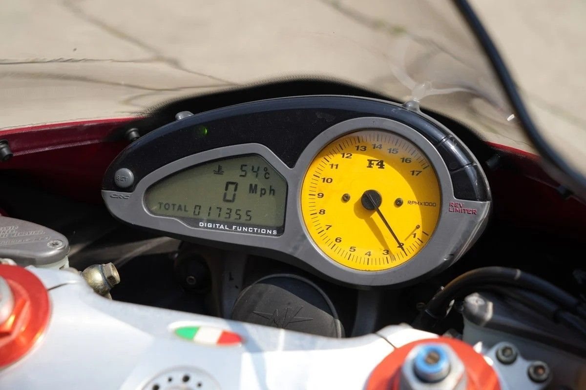 MV Agusta 750 F4 S zu verkaufen 27.930 km. Sehr ordentliches, sauberes Motorrad, das gut läuft und fabelhaft aussieht. Spiegelkappen Kohlefaser getaucht und schöne Wildleder-Sitzbezug, etwas Kohlenstoff, aber Standard und unversehrt anders als das.