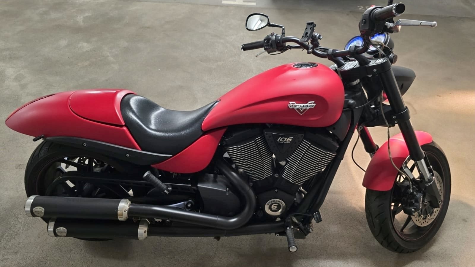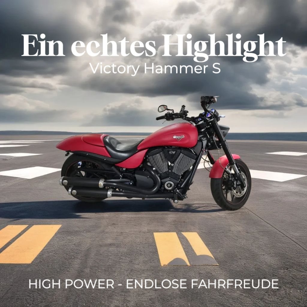 Wer das Besondere sucht, wird hier fündig: Diese Victory Hammer S in matt-roter Sonderlackierung ist kein Bike von der Stange sie ist ein echtes Statement! Mit ihrem kraftvollen Auftritt, dem bärenstarken V2-Motor und exklusivem Design zieht sie garantiert alle Blicke auf sich. Hier bekommst du einen Charakter-Boliden, der nicht nur auf der Straße, sondern auch im Herzen Eindruck hinterlässt.