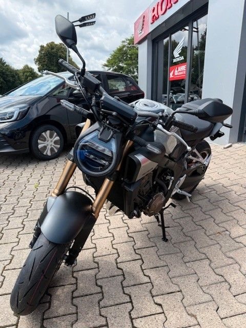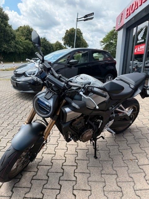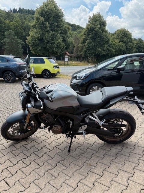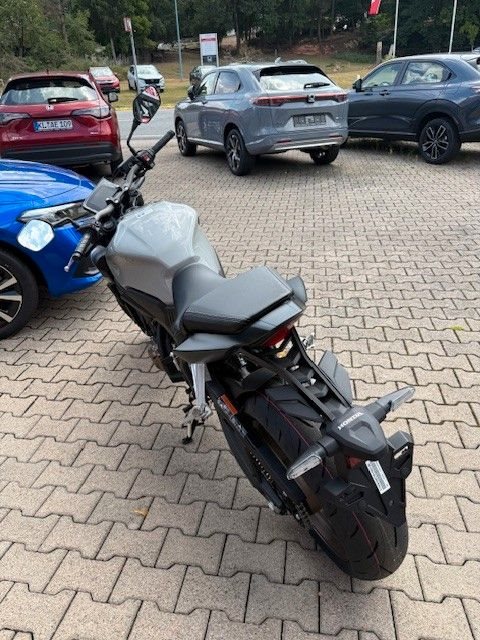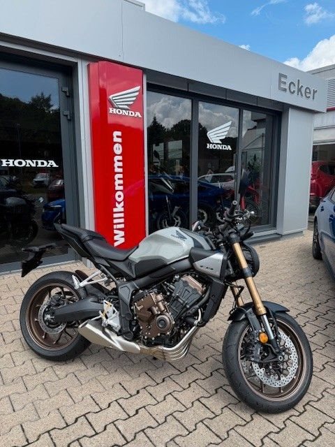 Die CB650R gefällt mit schlankem, stromlinienförmigem Design. Der ultrakompakte, kraft- volle Style zitiert den Retro-Minimalismus der CB1000R Neo Sports Café: geschwungene Linien mit klar definierten Kanten, markanten Seitenverkleidungen und einer eleganten Kenn- zeichenhalterung.Gebaut, um gefahren zu werden. Der DOHC-Vierzylinder-Reihenmotor mit 16 Ventilen, das kurz übersetzte Getriebe und die gleichmäßige Leistungsentfaltung begeistern mit überra- gender Beschleunigung - dazu der charakteristische Sound im hohen Drehzahlbereich, der süchtig macht. Als dezente Reminiszenz an die Vierzylinder-Geschichte von Honda verlaufen die vier Auspuffrohre parallel um die Vorderseite des Motors herum. Eine Anti-Hopping-Kupp- lung erleichtert kontrolliertes Hochschalten und auch harte Gangwechsel. Die Honda Selec- table Torque Control (HSTC) gewährleistet perfekte Traktion am Hinterrad. Honda Händler können den Motor gemäß Anforderungen für den A2-Führerschein problemlos auf 35 kW (48 PS) drosseln. Die Rückrüstung auf die volle Leistung ist ebenso einfach.Die einstellbare 41-mm-USD-Gabel von SHOWA in SFF-BP-Ausführung (Big Piston mit Separate Fork Function) spricht sanft an und vermittelt ein hervorragendes Gefühl für das Vorderrad. Das Fahrwerk ist perfekt mit dem steifen Rahmen und der agilen Geometrie der CB650R ausbalanciert. Reifen mit den Abmessungen 120/70-17 vorn und 180/55-17 hinten bieten Grip auf Superbike-Niveau. Die Voll-LED-Beleuchtung unterstreicht das hochwertige, zeitlose Styling. Markante Doppelscheinwerfer leuchten jede Kurve perfekt aus. Die leicht ablesbare LCD-Instrumententafel informiert über gewählten Gang und Schaltpunkt. Zusätzli- che Sichtbarkeit bringt die Notstopp-Signalfunktion ESS: Abrupte Bremsmanöver aktivieren automatisch die Warnblinkanlage vorn und hinten, um andere Verkehrsteilnehmer zu warnen.