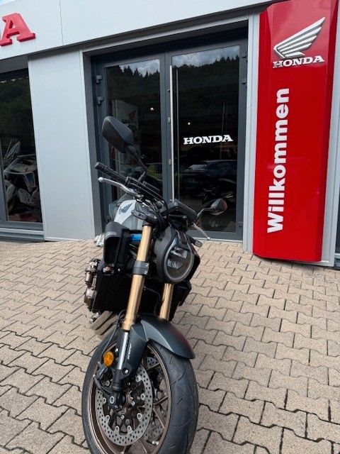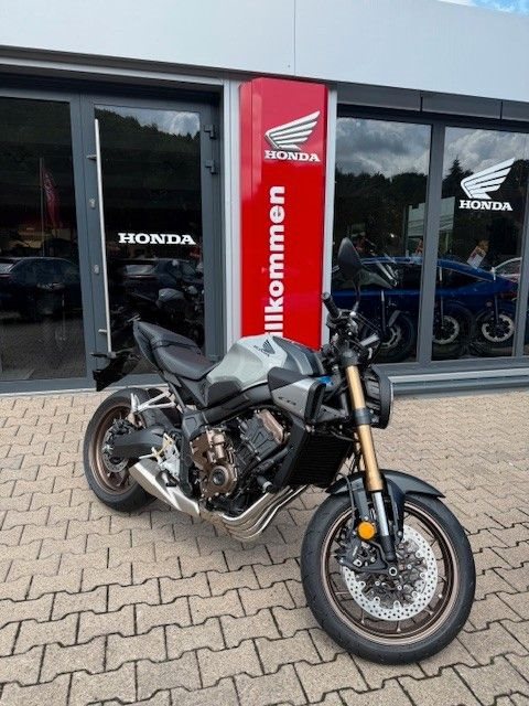 Die CB650R gefällt mit schlankem, stromlinienförmigem Design. Der ultrakompakte, kraft- volle Style zitiert den Retro-Minimalismus der CB1000R Neo Sports Café: geschwungene Linien mit klar definierten Kanten, markanten Seitenverkleidungen und einer eleganten Kenn- zeichenhalterung.Gebaut, um gefahren zu werden. Der DOHC-Vierzylinder-Reihenmotor mit 16 Ventilen, das kurz übersetzte Getriebe und die gleichmäßige Leistungsentfaltung begeistern mit überra- gender Beschleunigung - dazu der charakteristische Sound im hohen Drehzahlbereich, der süchtig macht. Als dezente Reminiszenz an die Vierzylinder-Geschichte von Honda verlaufen die vier Auspuffrohre parallel um die Vorderseite des Motors herum. Eine Anti-Hopping-Kupp- lung erleichtert kontrolliertes Hochschalten und auch harte Gangwechsel. Die Honda Selec- table Torque Control (HSTC) gewährleistet perfekte Traktion am Hinterrad. Honda Händler können den Motor gemäß Anforderungen für den A2-Führerschein problemlos auf 35 kW (48 PS) drosseln. Die Rückrüstung auf die volle Leistung ist ebenso einfach.Die einstellbare 41-mm-USD-Gabel von SHOWA in SFF-BP-Ausführung (Big Piston mit Separate Fork Function) spricht sanft an und vermittelt ein hervorragendes Gefühl für das Vorderrad. Das Fahrwerk ist perfekt mit dem steifen Rahmen und der agilen Geometrie der CB650R ausbalanciert. Reifen mit den Abmessungen 120/70-17 vorn und 180/55-17 hinten bieten Grip auf Superbike-Niveau. Die Voll-LED-Beleuchtung unterstreicht das hochwertige, zeitlose Styling. Markante Doppelscheinwerfer leuchten jede Kurve perfekt aus. Die leicht ablesbare LCD-Instrumententafel informiert über gewählten Gang und Schaltpunkt. Zusätzli- che Sichtbarkeit bringt die Notstopp-Signalfunktion ESS: Abrupte Bremsmanöver aktivieren automatisch die Warnblinkanlage vorn und hinten, um andere Verkehrsteilnehmer zu warnen.