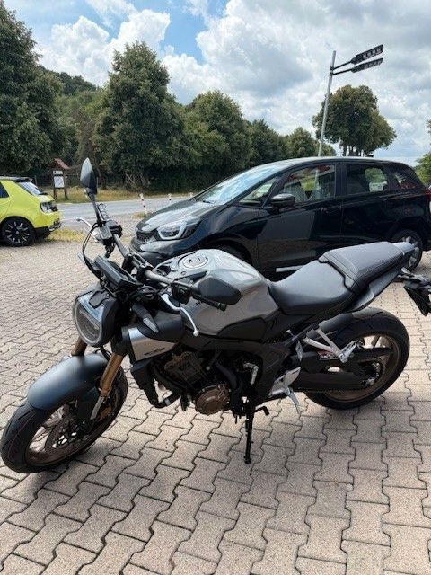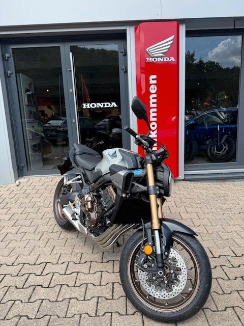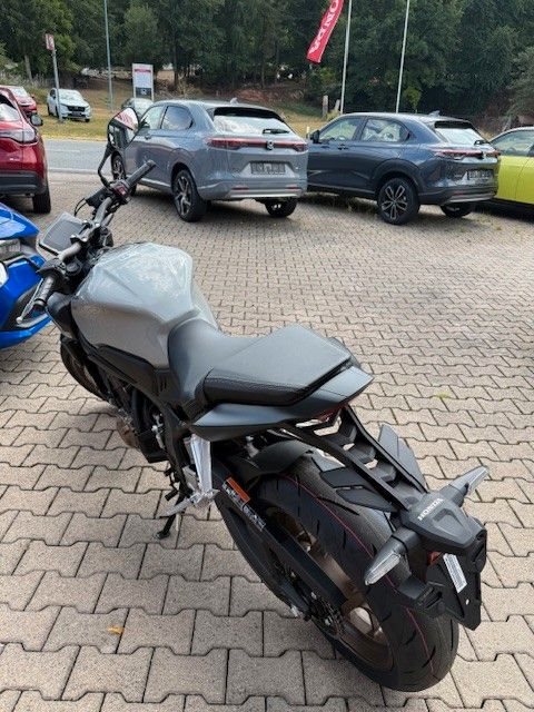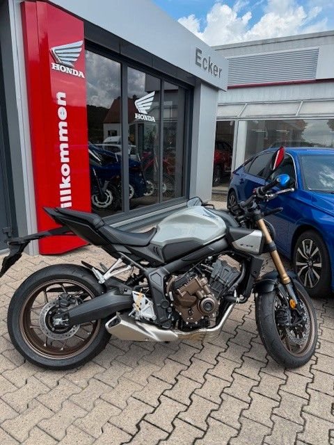 Die CB650R gefällt mit schlankem, stromlinienförmigem Design. Der ultrakompakte, kraft- volle Style zitiert den Retro-Minimalismus der CB1000R Neo Sports Café: geschwungene Linien mit klar definierten Kanten, markanten Seitenverkleidungen und einer eleganten Kenn- zeichenhalterung.Gebaut, um gefahren zu werden. Der DOHC-Vierzylinder-Reihenmotor mit 16 Ventilen, das kurz übersetzte Getriebe und die gleichmäßige Leistungsentfaltung begeistern mit überra- gender Beschleunigung - dazu der charakteristische Sound im hohen Drehzahlbereich, der süchtig macht. Als dezente Reminiszenz an die Vierzylinder-Geschichte von Honda verlaufen die vier Auspuffrohre parallel um die Vorderseite des Motors herum. Eine Anti-Hopping-Kupp- lung erleichtert kontrolliertes Hochschalten und auch harte Gangwechsel. Die Honda Selec- table Torque Control (HSTC) gewährleistet perfekte Traktion am Hinterrad. Honda Händler können den Motor gemäß Anforderungen für den A2-Führerschein problemlos auf 35 kW (48 PS) drosseln. Die Rückrüstung auf die volle Leistung ist ebenso einfach.Die einstellbare 41-mm-USD-Gabel von SHOWA in SFF-BP-Ausführung (Big Piston mit Separate Fork Function) spricht sanft an und vermittelt ein hervorragendes Gefühl für das Vorderrad. Das Fahrwerk ist perfekt mit dem steifen Rahmen und der agilen Geometrie der CB650R ausbalanciert. Reifen mit den Abmessungen 120/70-17 vorn und 180/55-17 hinten bieten Grip auf Superbike-Niveau. Die Voll-LED-Beleuchtung unterstreicht das hochwertige, zeitlose Styling. Markante Doppelscheinwerfer leuchten jede Kurve perfekt aus. Die leicht ablesbare LCD-Instrumententafel informiert über gewählten Gang und Schaltpunkt. Zusätzli- che Sichtbarkeit bringt die Notstopp-Signalfunktion ESS: Abrupte Bremsmanöver aktivieren automatisch die Warnblinkanlage vorn und hinten, um andere Verkehrsteilnehmer zu warnen.
