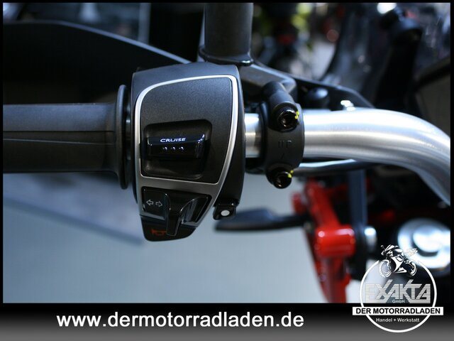 Funktionalität und Stil in Hightech auf höchstem Niveau, die Motorradfahren wirklich leicht machen und Sicherheitsstandards groß schreiben: ABS und Traktionskontrolle, Cruise Control, das ausgeklügelte TFT-Display Nicht zu vergessen die Fahrzeugelektronik mit Ride-by-Wire und Multi-Mapping und natürlich der neue 90°-V2-Motor mit seinen satten 80 PS. Ein Motor, der sowohl bei beschaulichem Dahingleiten als auch bei sportlicher Gangart durchs Kurvenlabyrinth mit Kraft und Leistung begeistert.