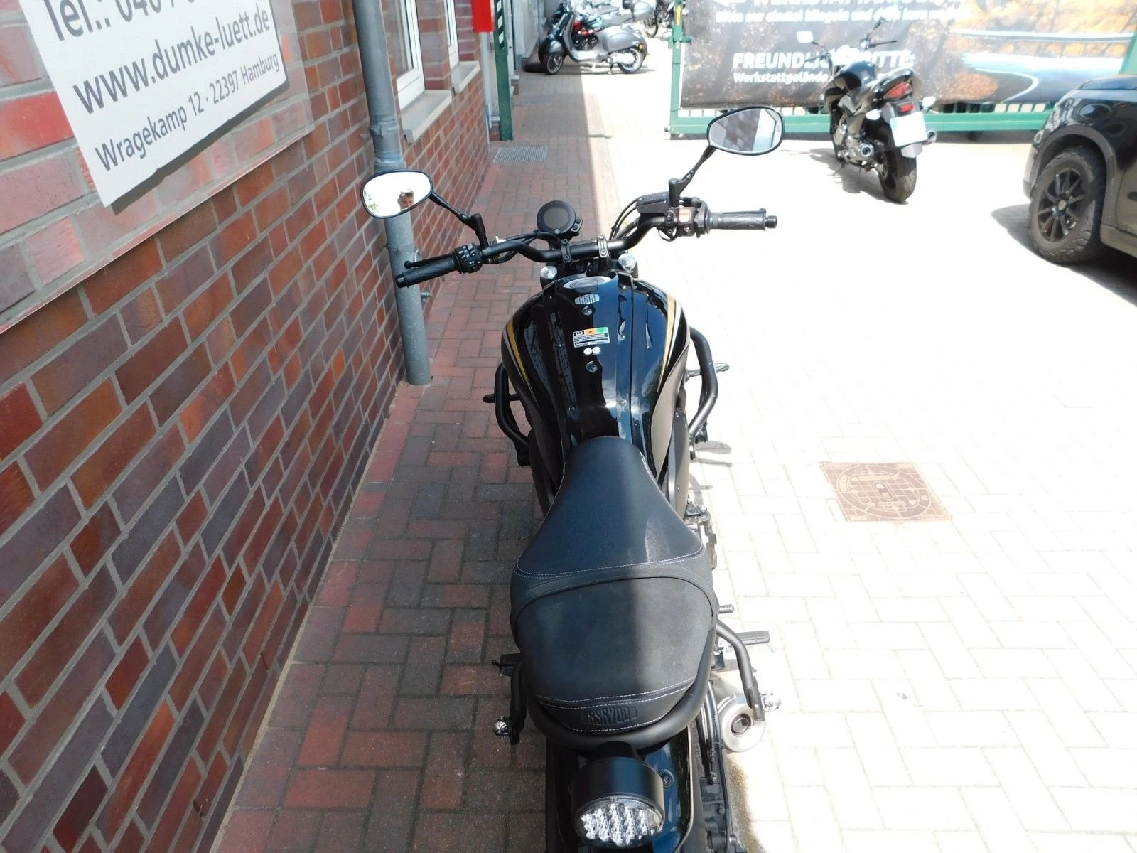 Moin! Wir sind Dumke u. Lütt, Euer offizieller Hamburger Vertragshändler für Suzuki und Yamaha. Seit über 45 Jahren (seit 1976) sind wir auf den Straßen Hamburgs zuhause. Wir teilen gerne unsere Lebensfreude und Begeisterung für Motorräder und Roller mit Euch. Daher laden wir Euch in unsere rund 1.000m große Welt bei uns in Hamburg (Duvenstedt) ein. Von Montag bis Samstag stehen Euch unsere Türen offen. Mehr über uns und die Community findet Ihr unter www.dumke-luett.de. Ihr wollt mit uns schnacken? Dann ruft an unter 040/607697-0 oder schreibt eine E-mail an info@dumke-luett.de