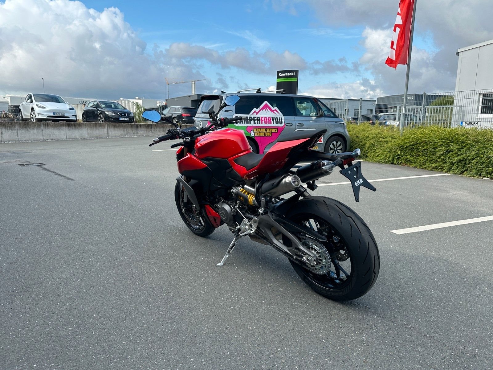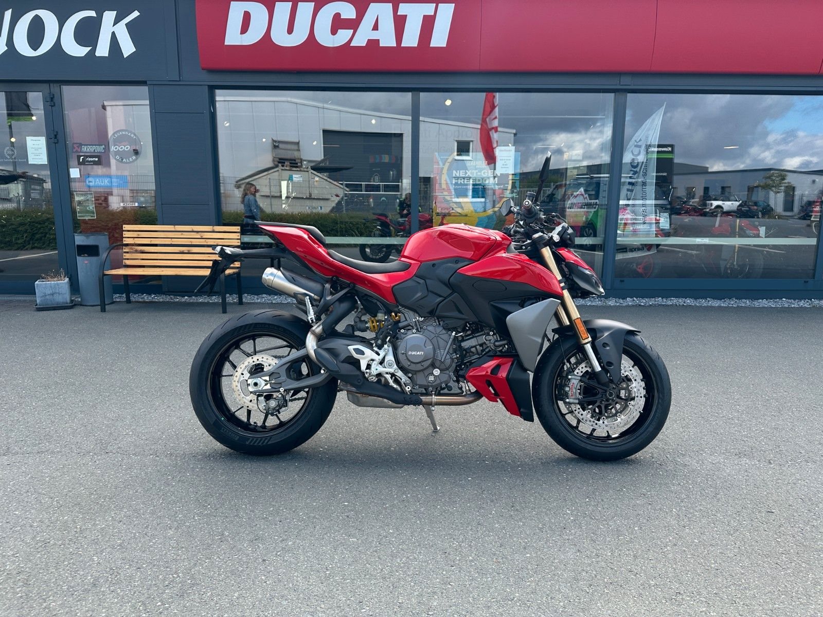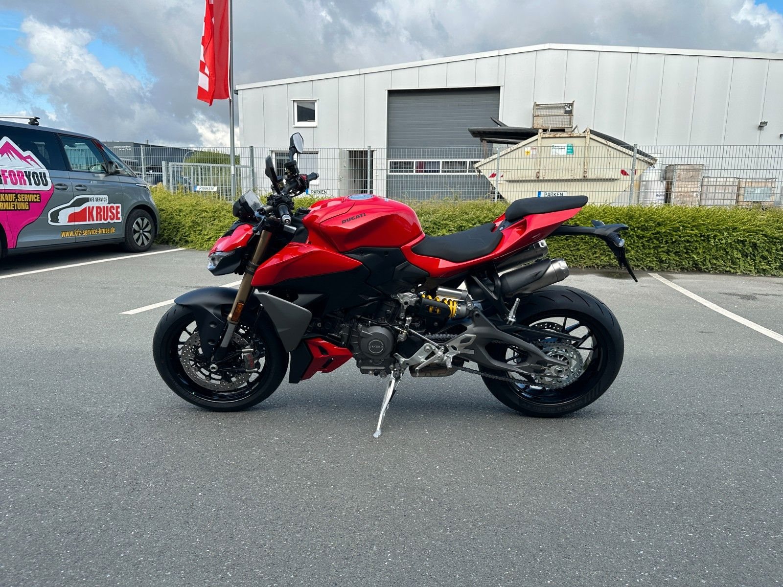 Ducati Quick Shift (DQS) Up/Down 2.0, Voll-LED-Scheinwerfer mit Daytime Running Light (DRL), automatische Blinkerrückstellung, Coming-Home-Funktion, Soziussitz und -fußrasten, Sachs-Lenkungsdämpfer