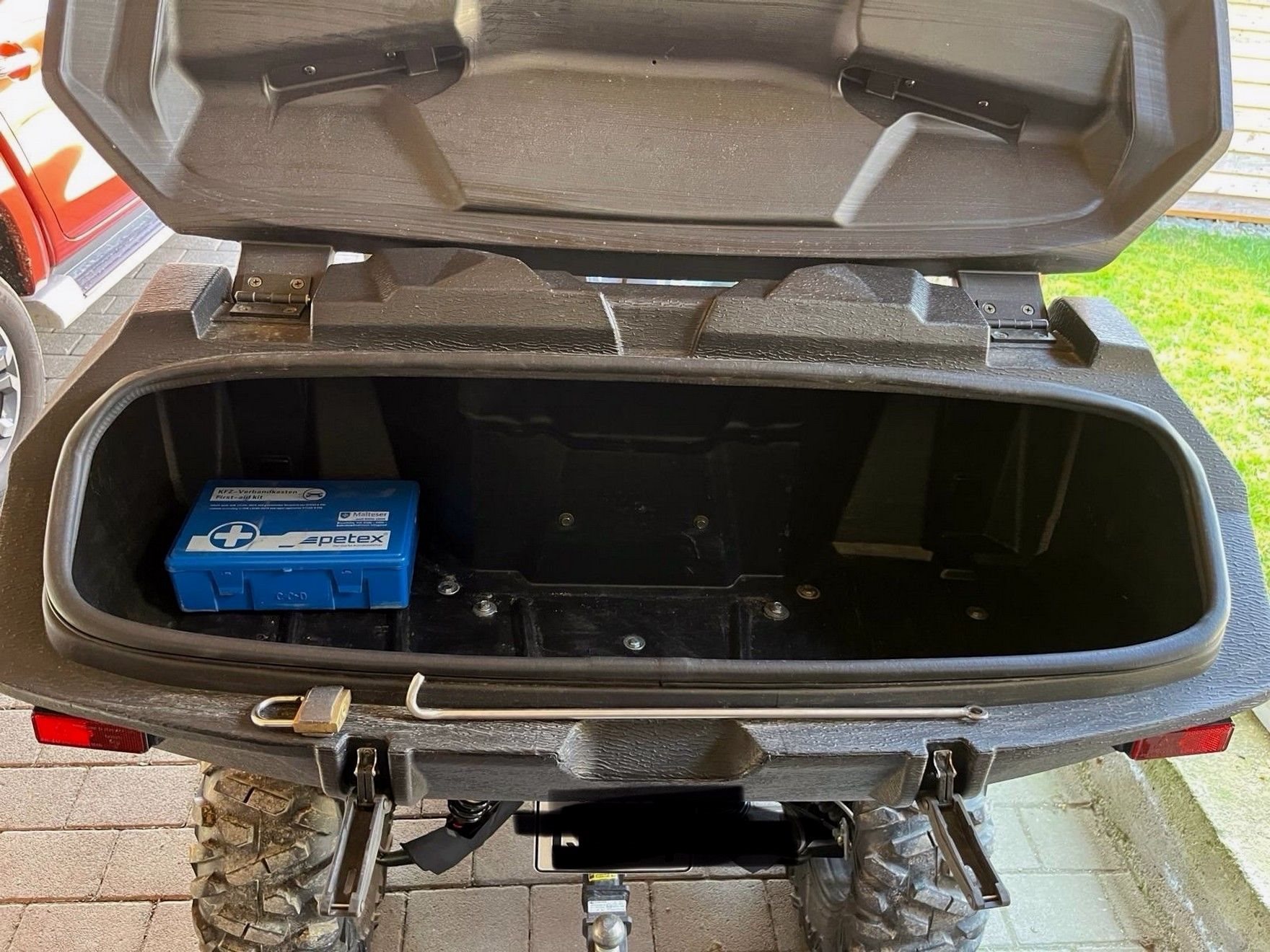 Der Lack geht an manchen stellen ab, ist ein bekanntes Problem und kann beim Hersteller als Garantiefall beantragt werden. Das Quad besitzt eine Anhängerkupplung