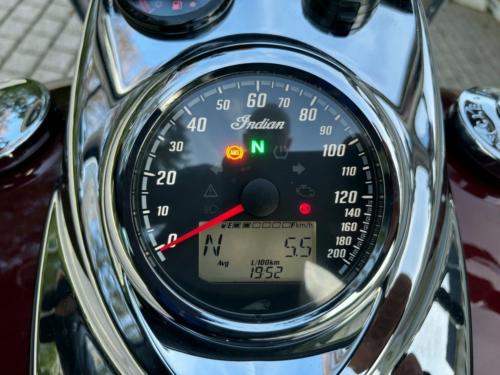- Tacho in Tankanzeige mit schwarzem Hintergrund (Orginal Indian)